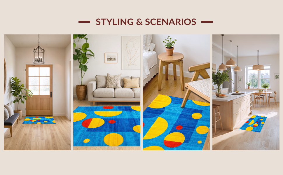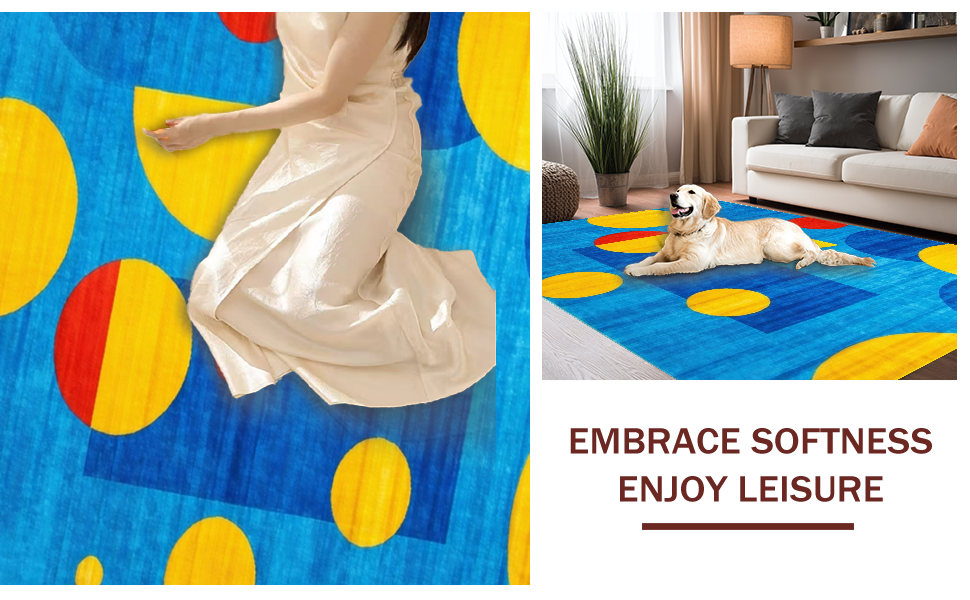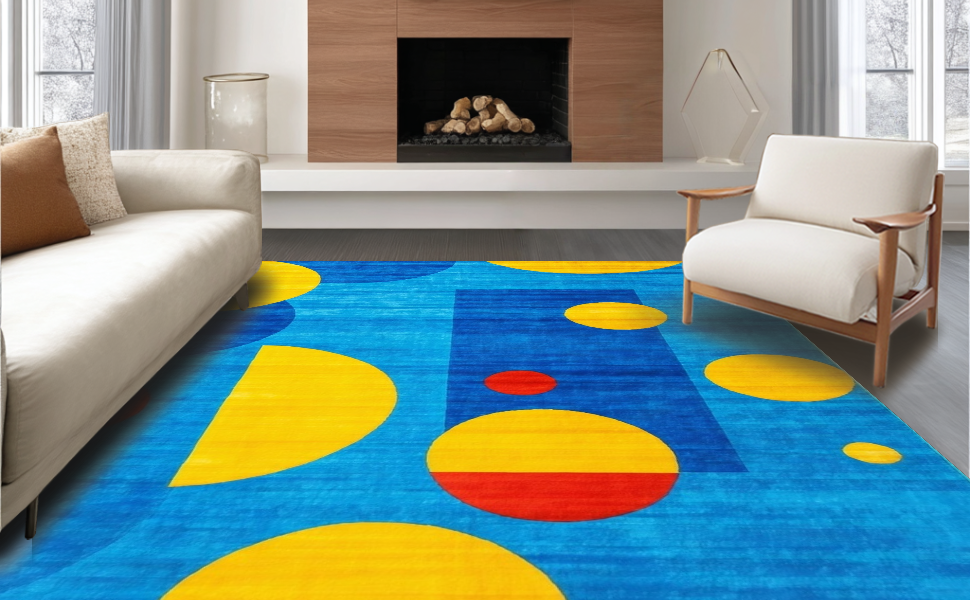 Ultra Soft Area Rug, Non Slip, Stain Resistant, Washable Area Rugs for Living Room, Bedroom, Joyful Playmat with Bold Patterns(Blue) Overview: