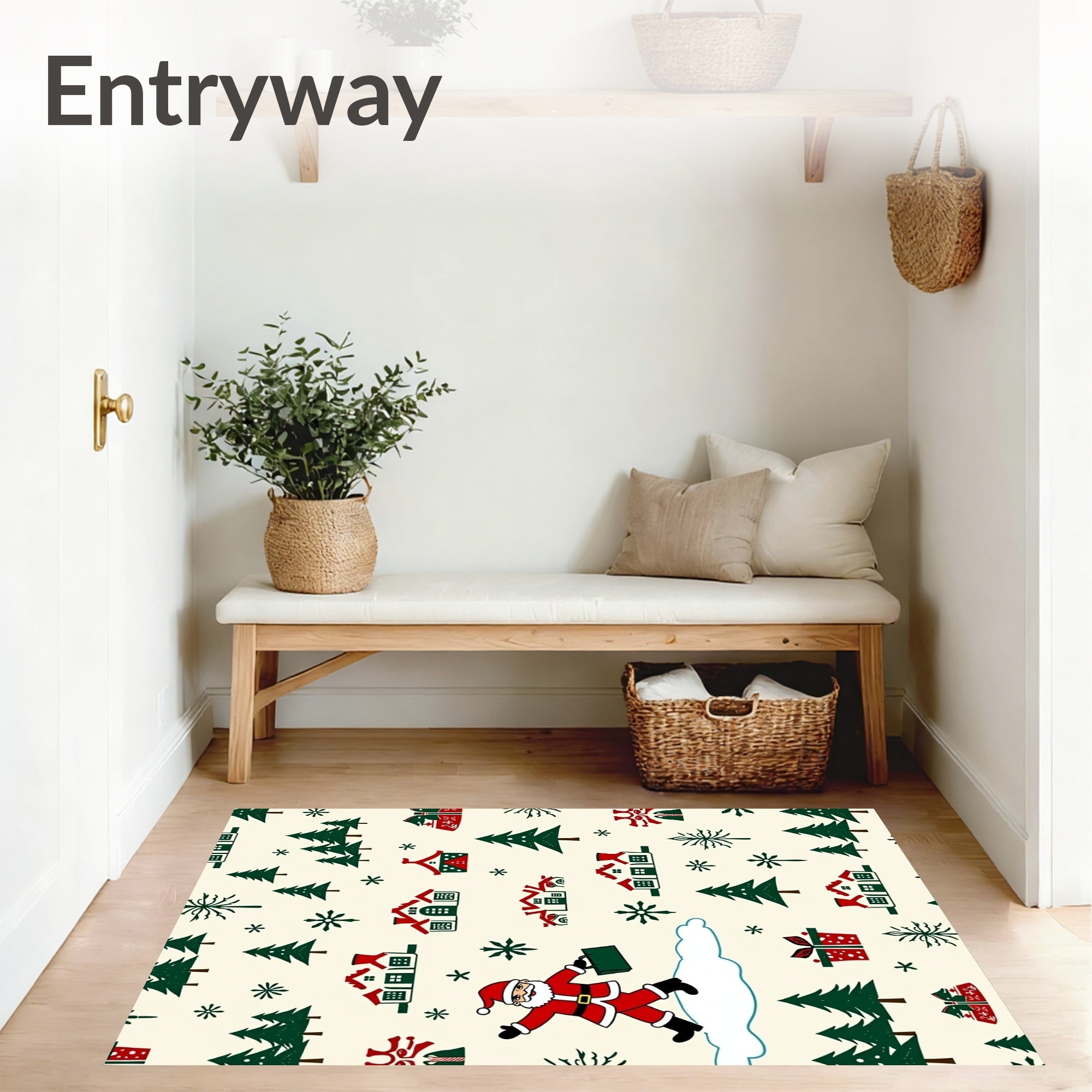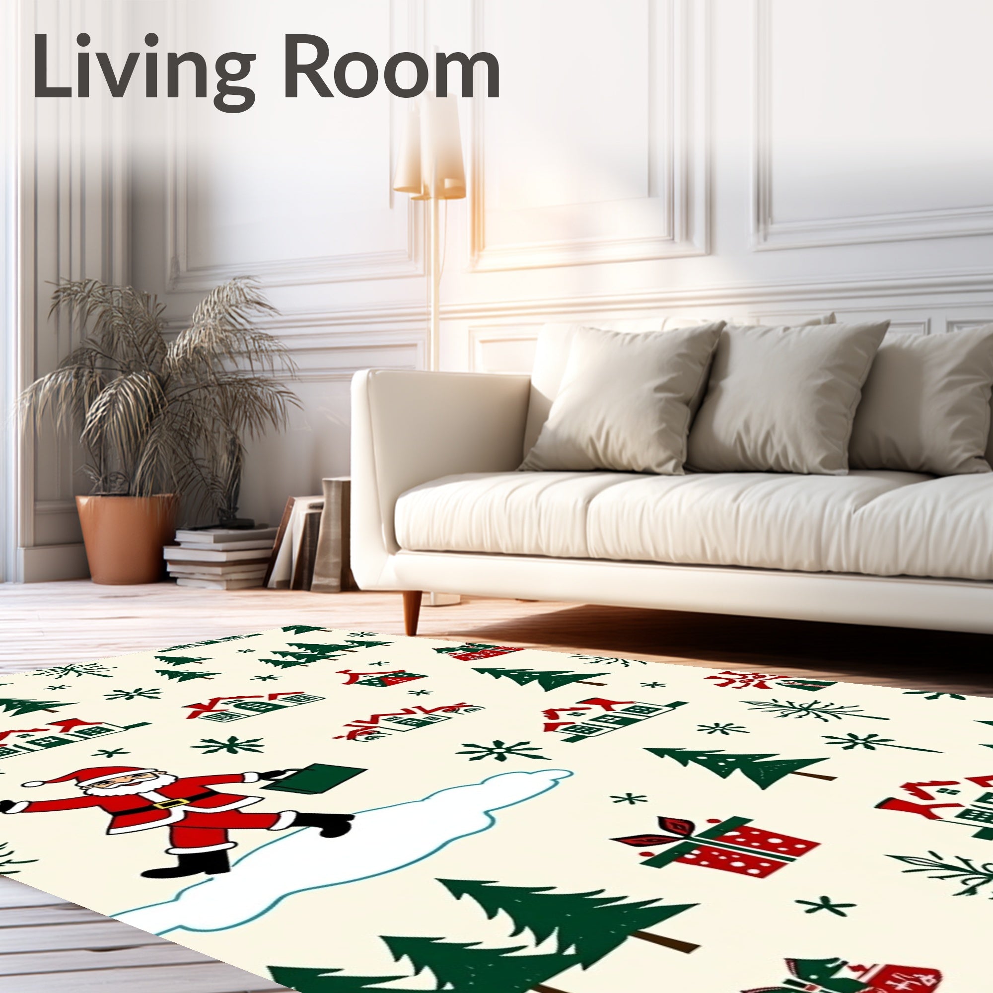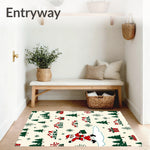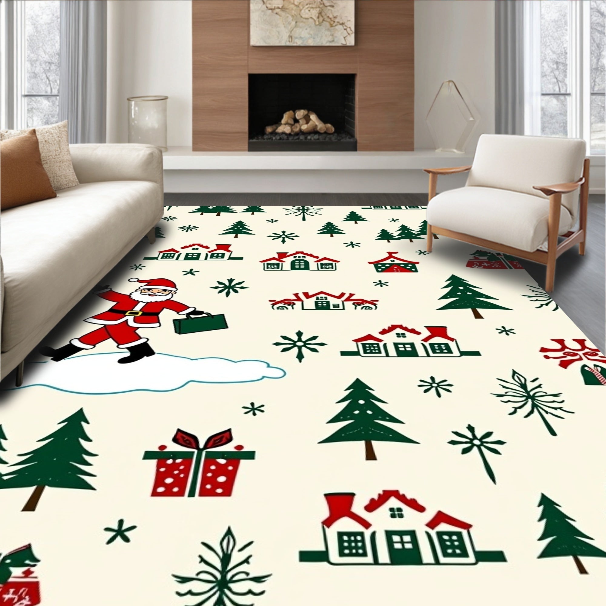 Ultra Soft Area Rug, Non Slip, Stain Resistant, Washable Area Rugs for Living Room, Bedroom, Joyful Santa Expedition Snowy Mountain Adventure(Red) Overview: