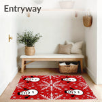 Ultra Soft Area Rug, Non Slip, Stain Resistant, Washable Area Rugs for Living Room, Bedroom, Joyful Snowman Portraits with Interlocking Frostflake(Red) Overview: