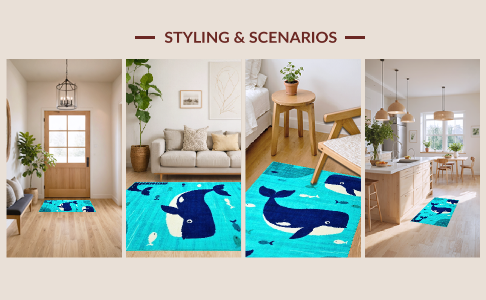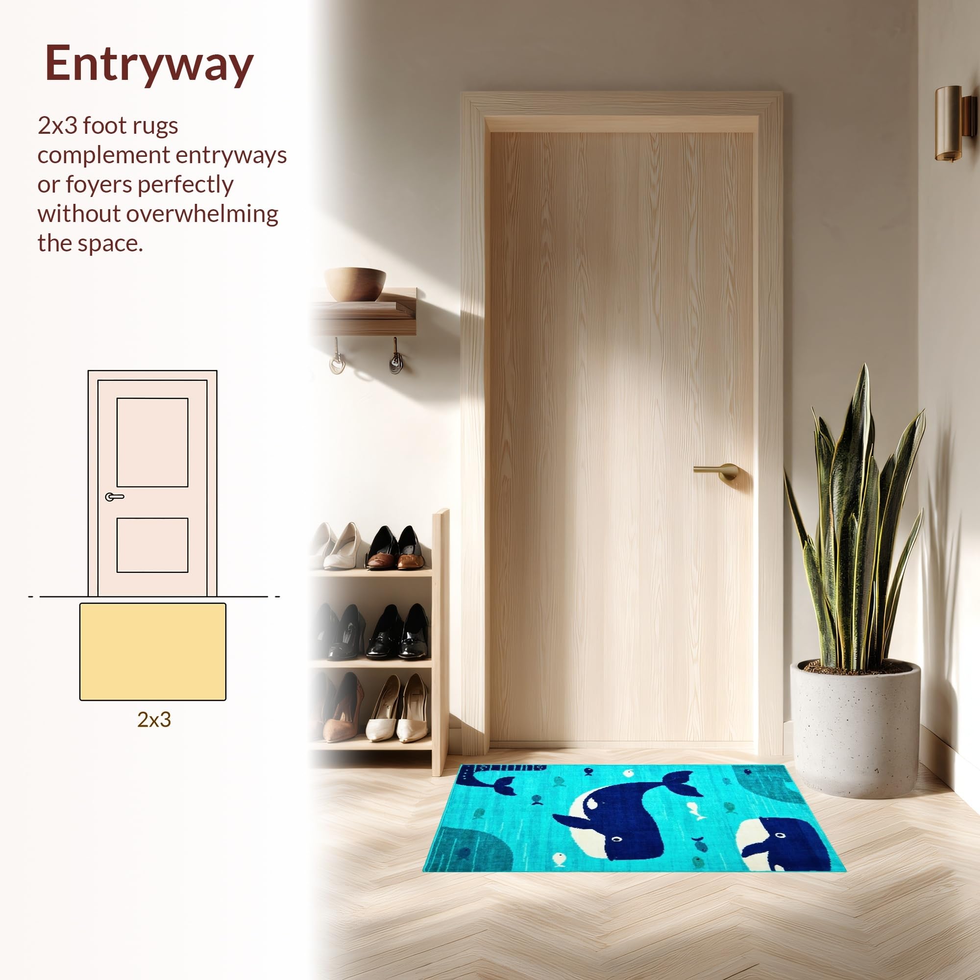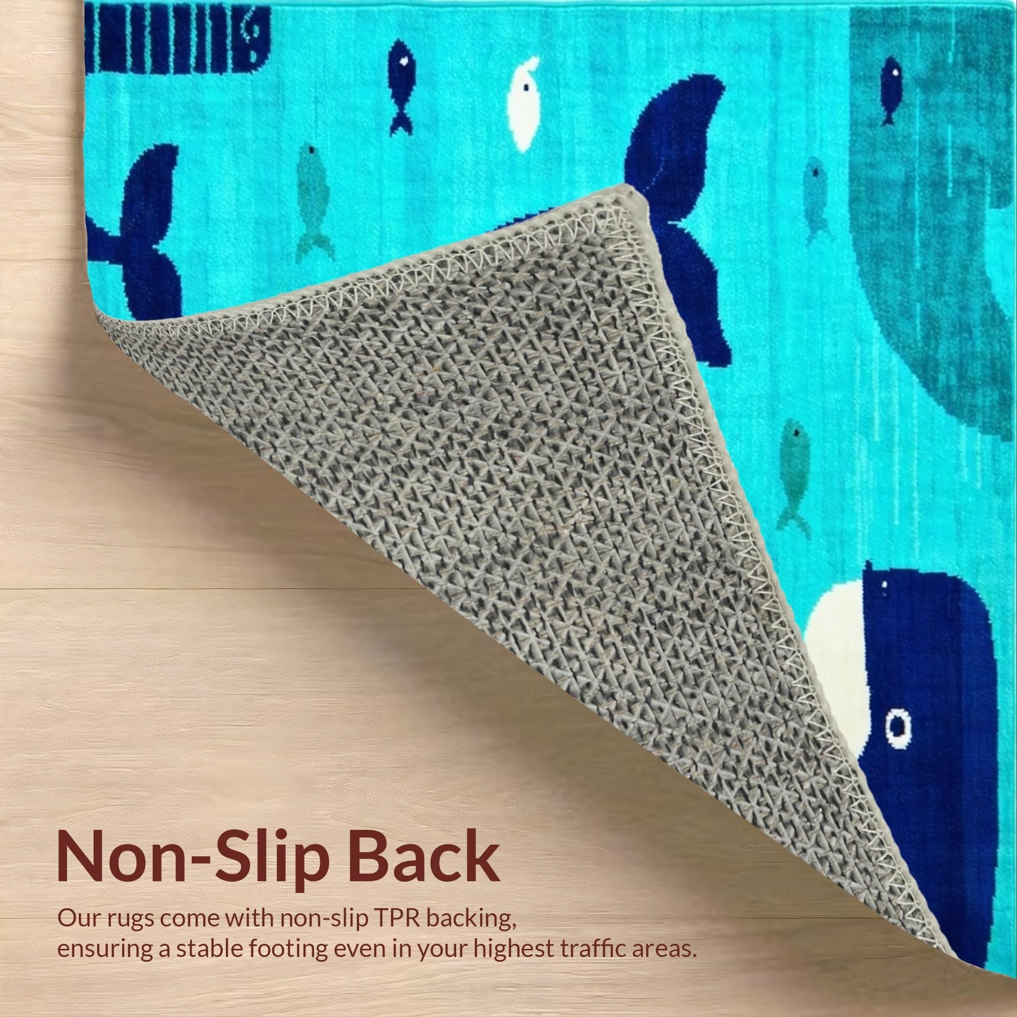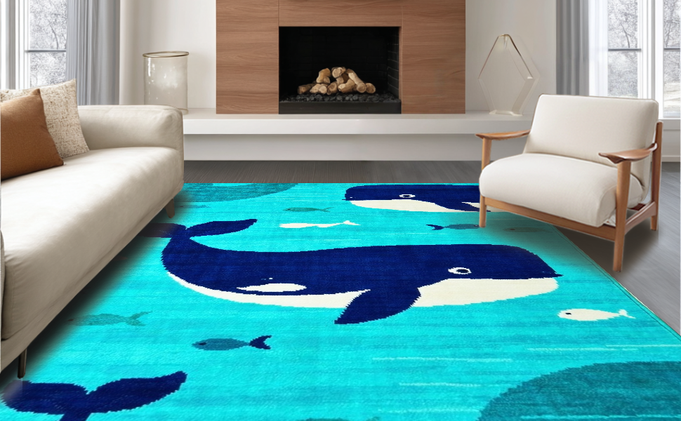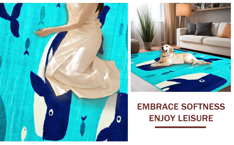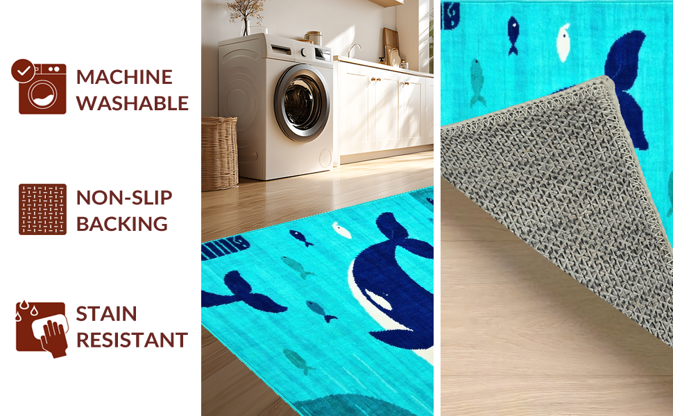 Ultra Soft Area Rug, Non Slip, Stain Resistant, Washable Area Rugs for Living Room, Bedroom, Joyful Underwater Adventure Scene(Blue) Overview: