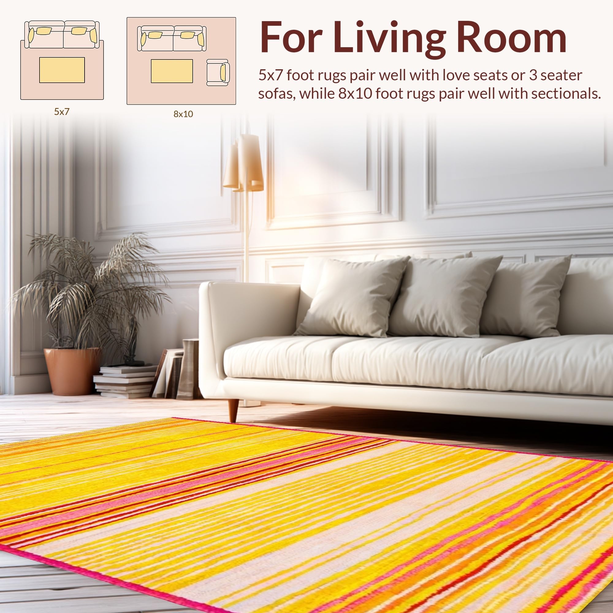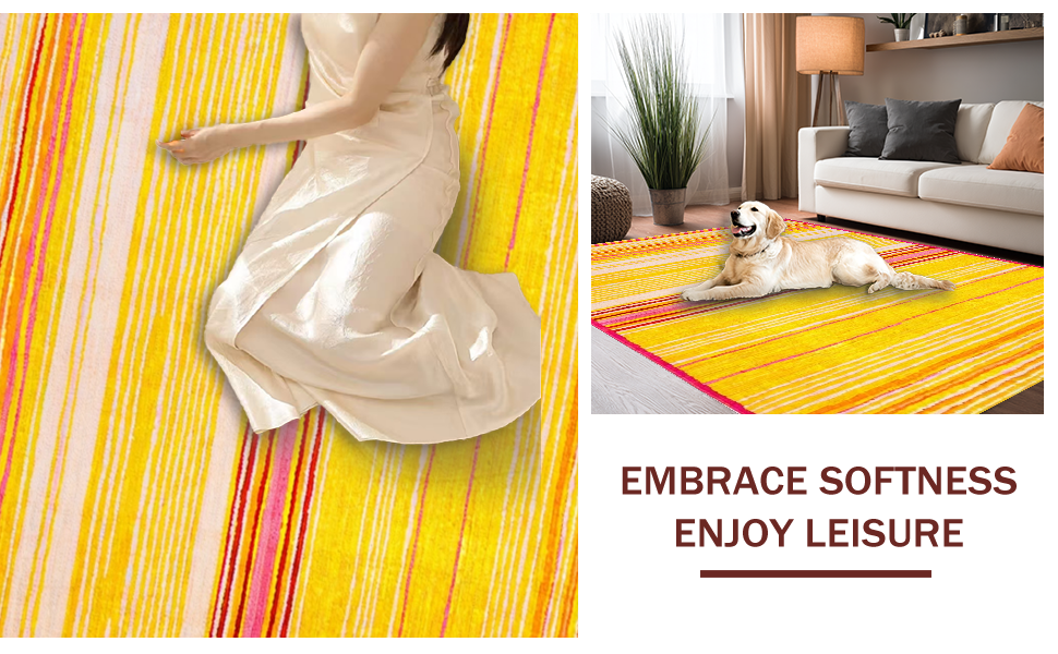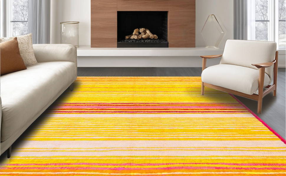 Ultra Soft Area Rug, Non Slip, Stain Resistant, Washable Area Rugs for Living Room, Bedroom, Joyful Whimsical Rainbow Design(Yellow) Overview: