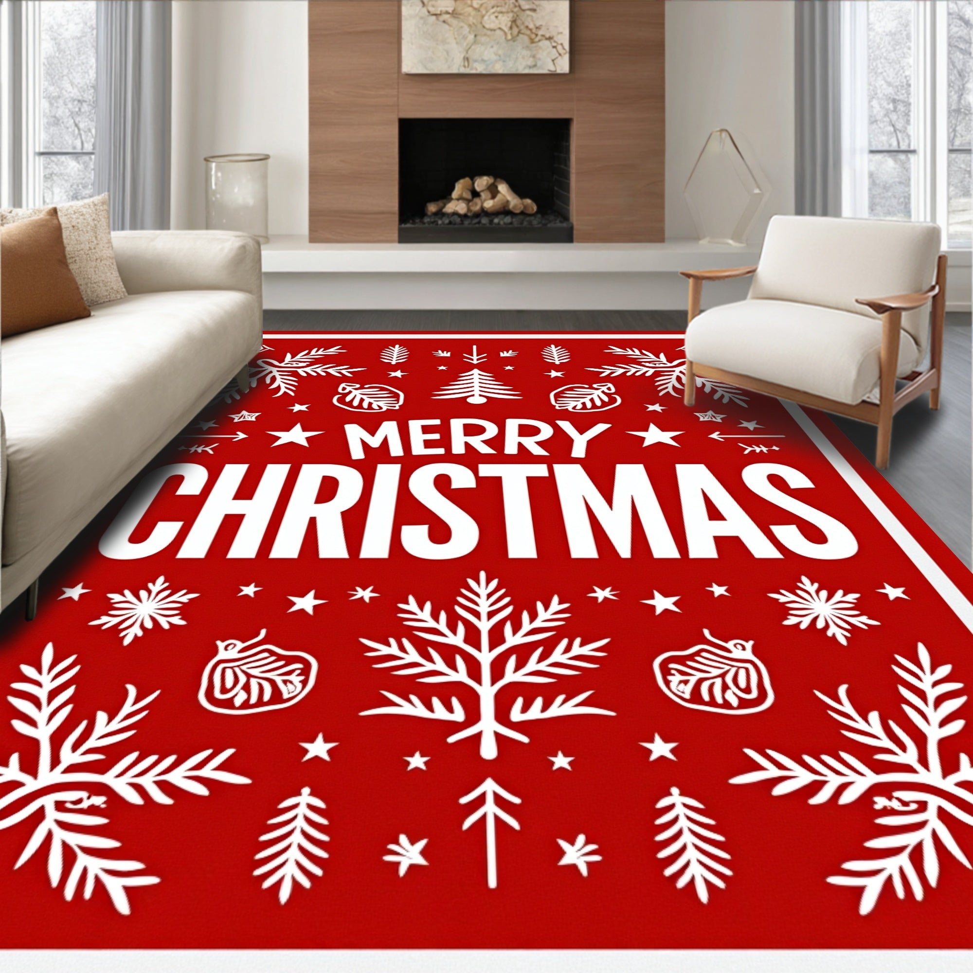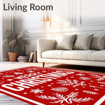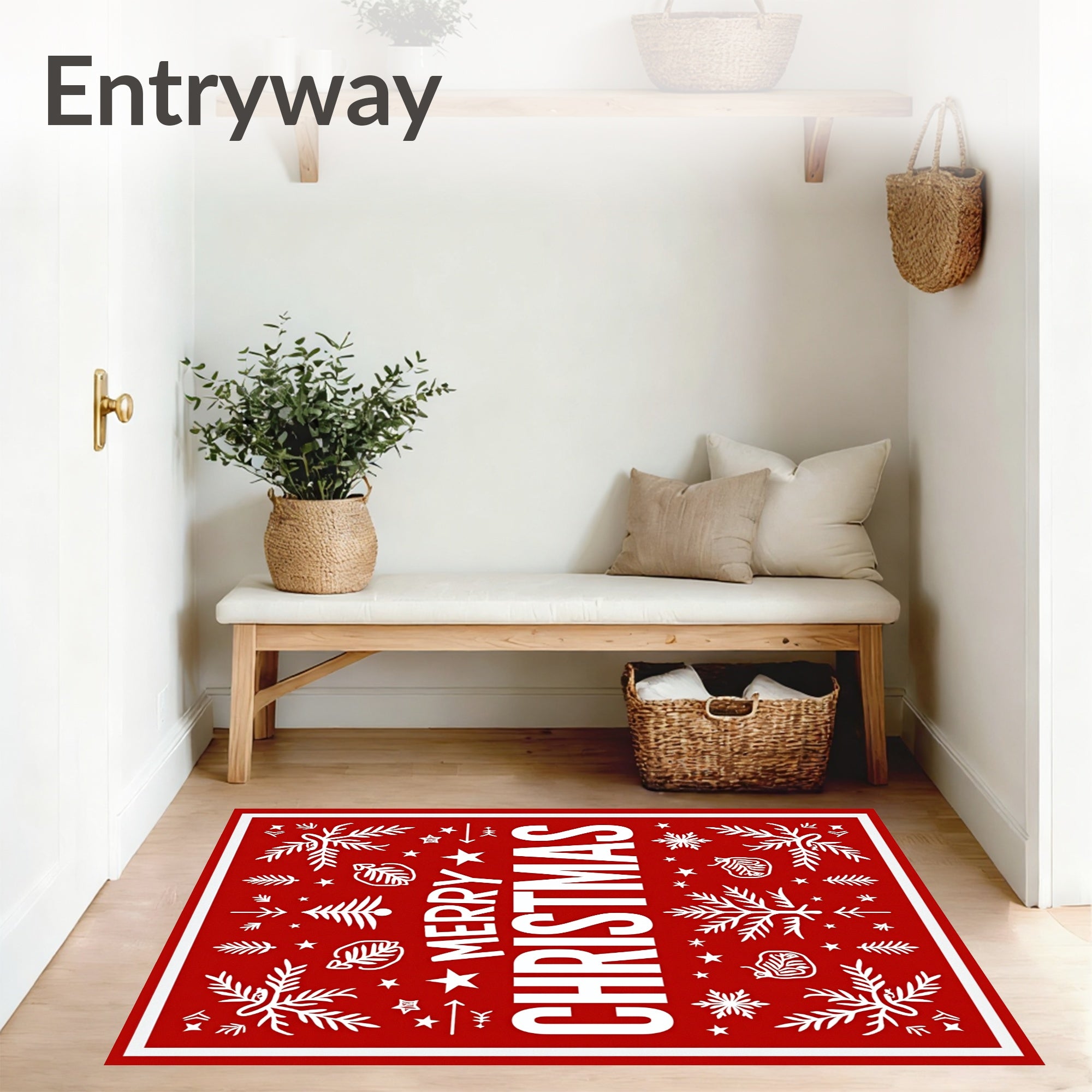 Ultra Soft Area Rug, Non Slip, Stain Resistant, Washable Area Rugs for Living Room, Bedroom, Joyful Winter Greeting Entryway Layered Seasonal(Red) Overview: