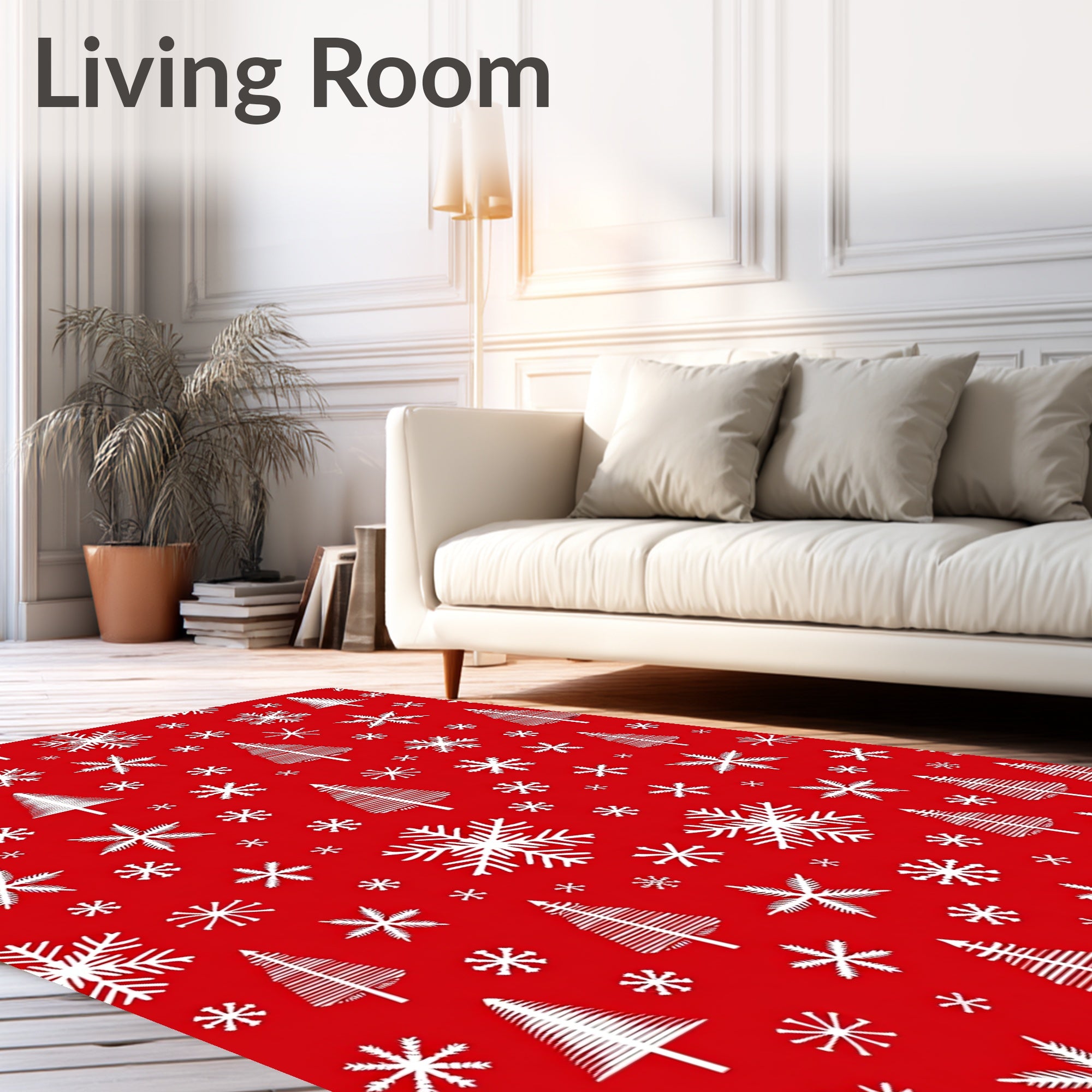 Ultra Soft Area Rug, Non Slip, Stain Resistant, Washable Area Rugs for Living Room, Bedroom, Joyful Yuletide Decorative Floor Covering(Red) Overview: