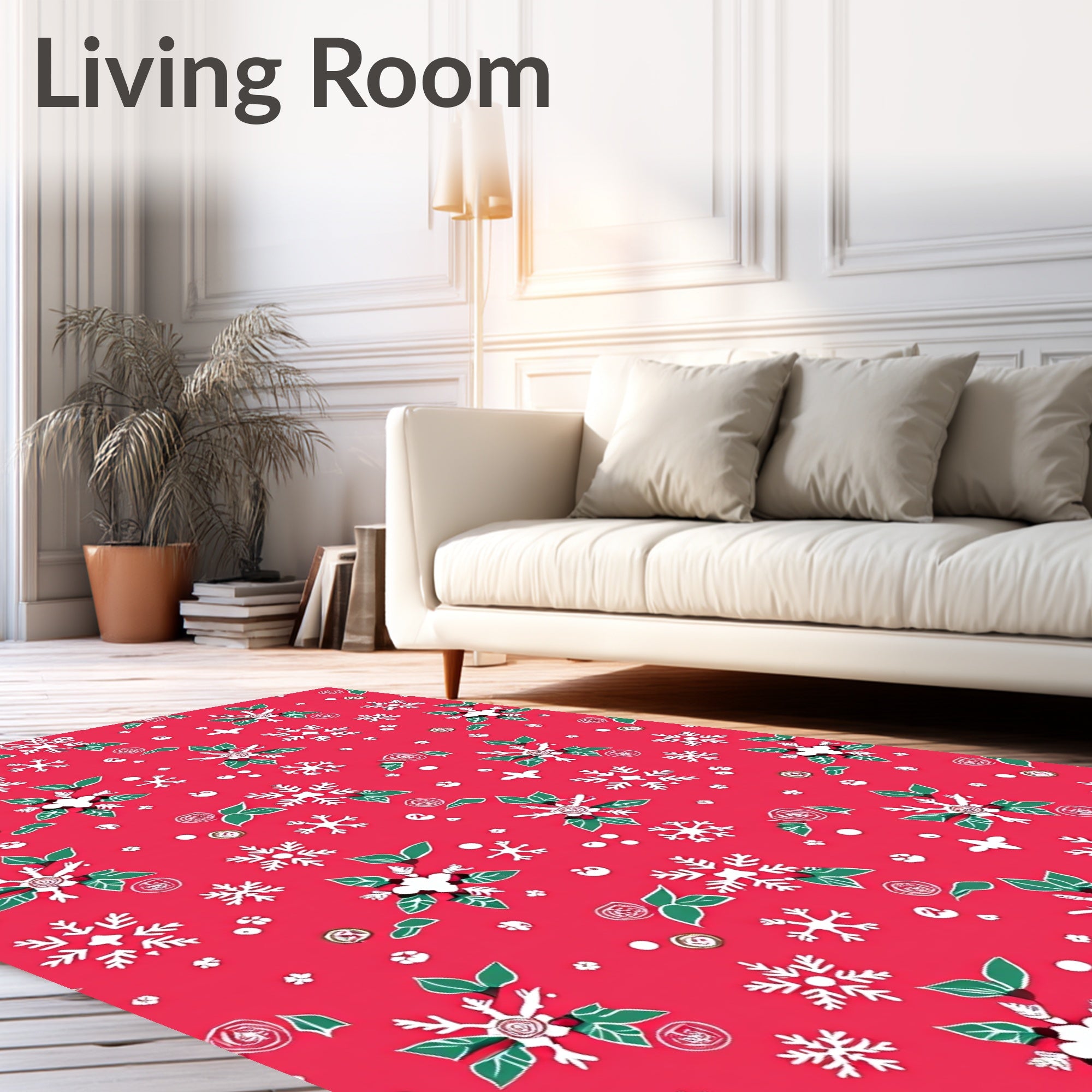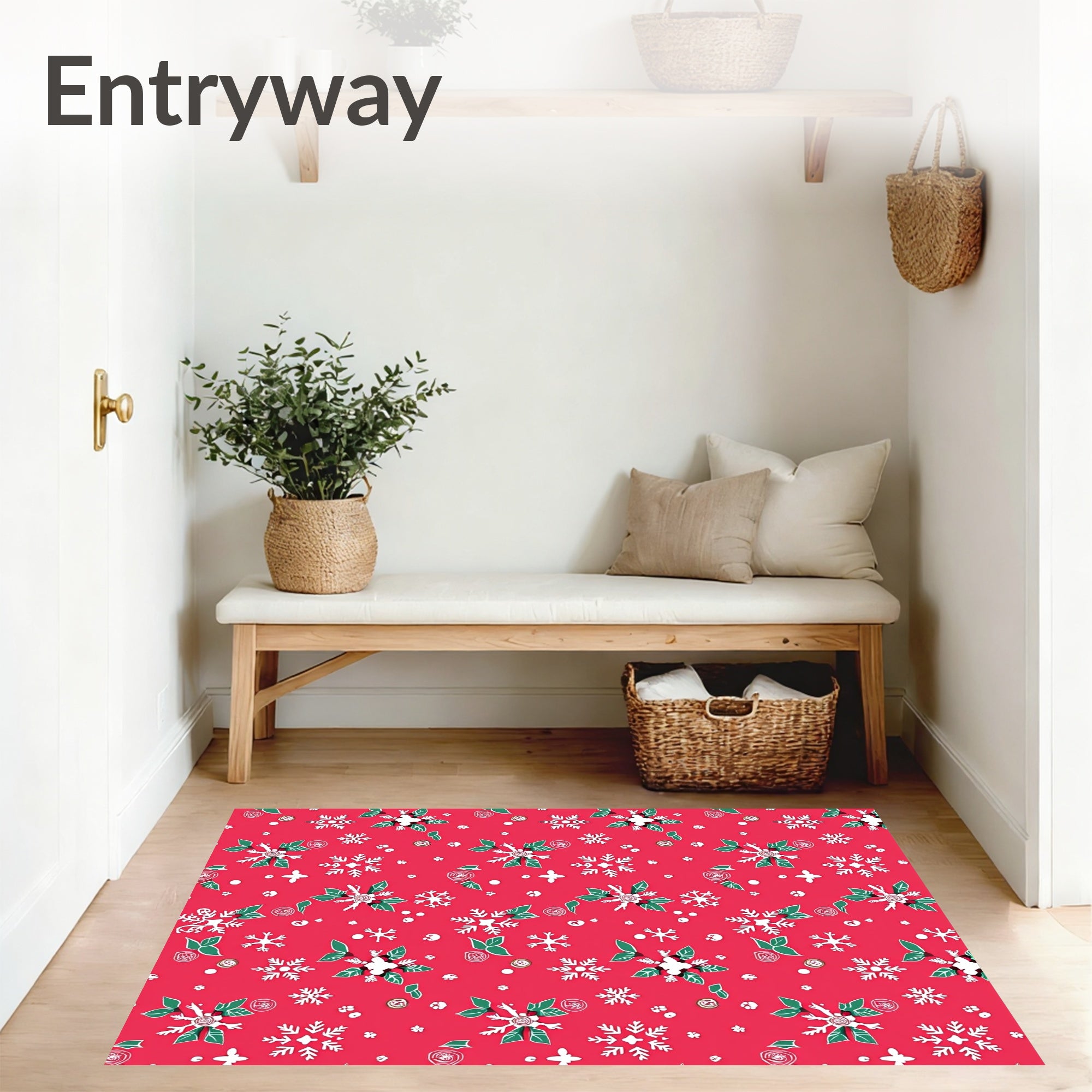 Ultra Soft Area Rug, Non Slip, Stain Resistant, Washable Area Rugs for Living Room, Bedroom, Jubilant Winter Celebration Snowflake Wonderland Magic(Red) Overview: