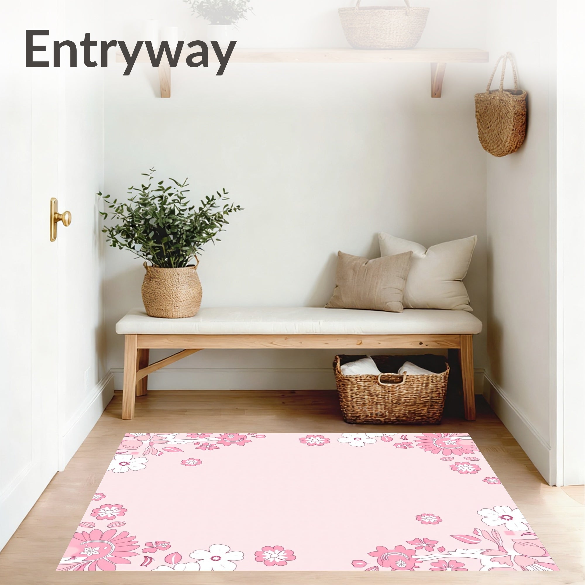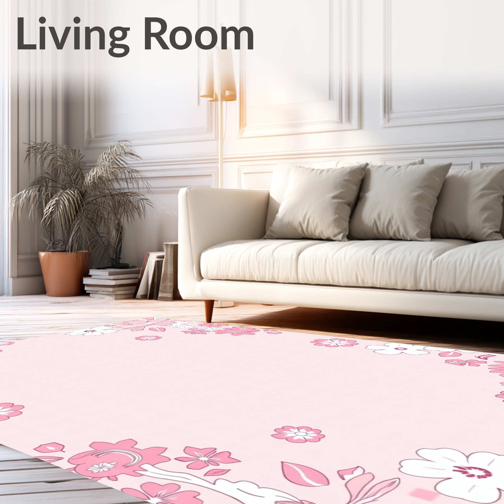 Ultra Soft Area Rug, Non Slip, Stain Resistant, Washable Area Rugs for Living Room, Bedroom, Kawaii Cherry Blossom Petal Scatter Design Accent(Pink) Overview:
