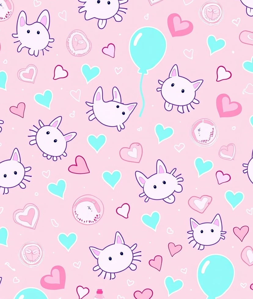 Kawaii Kitten Collage Featuring Balloons and Doodles(Pink)