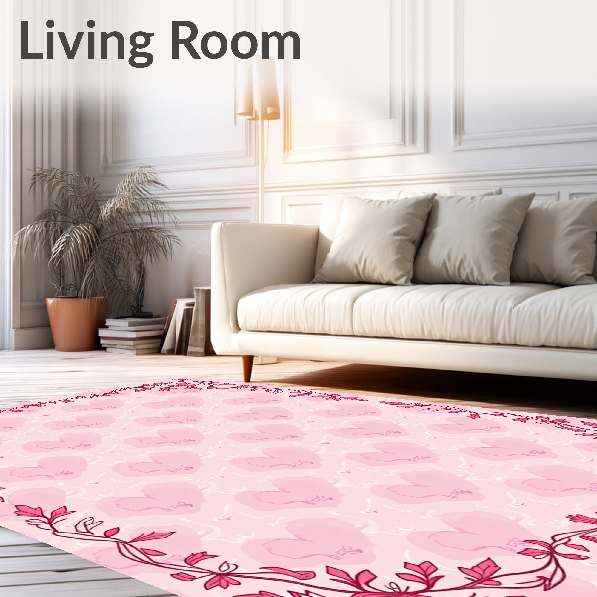 Flatwoven High Traffic Area Rug, Kawaii Motif with Festive Accents, Non Slip, Stain Resistant, Washable Area Rugs for Living Room, Bedroom (Pink) Overview:
