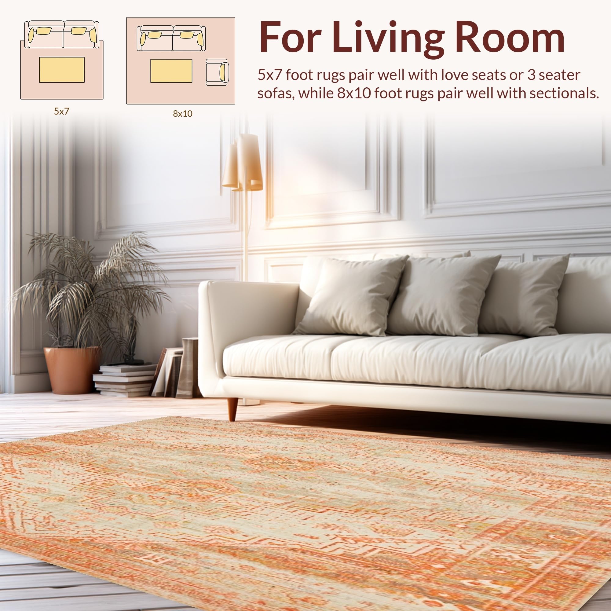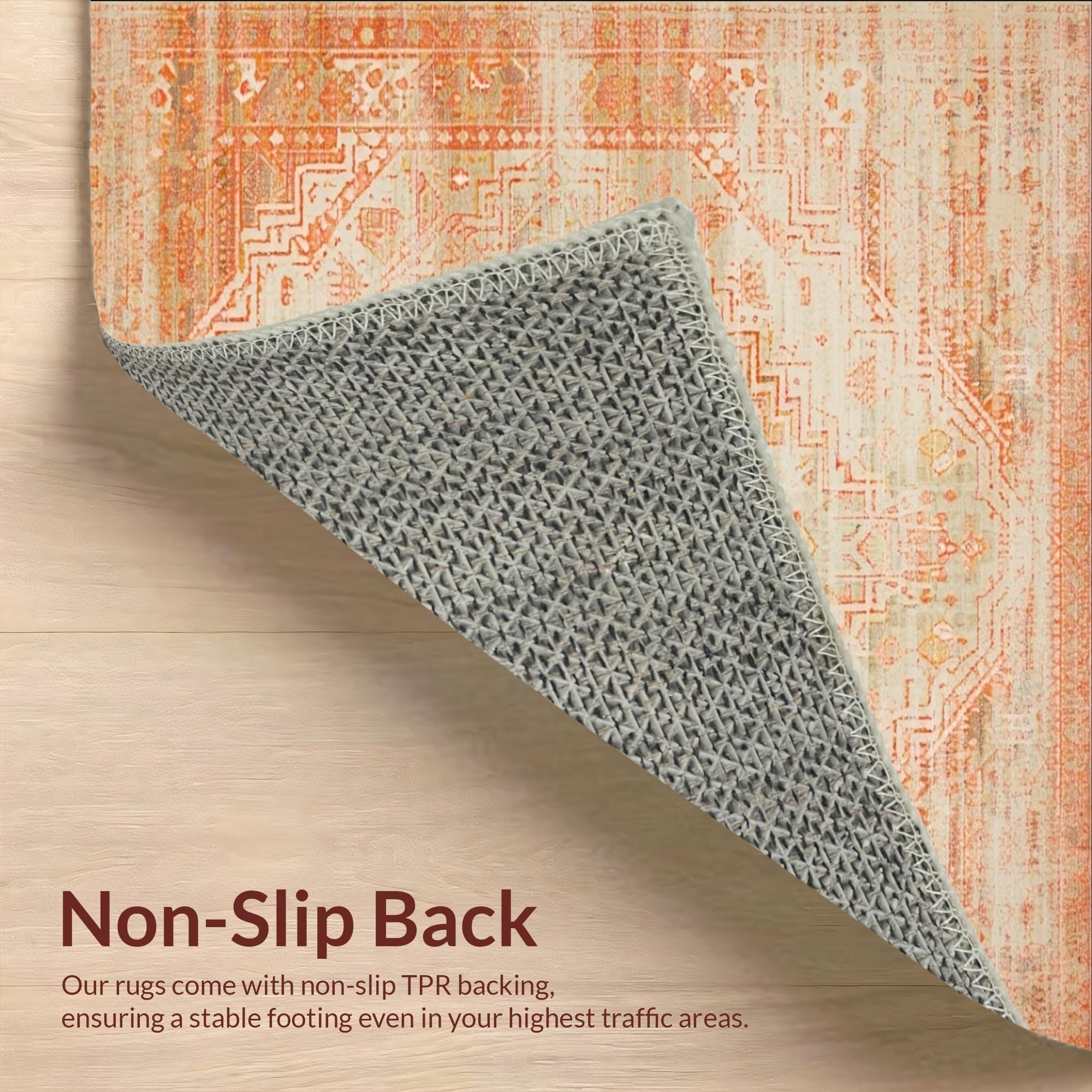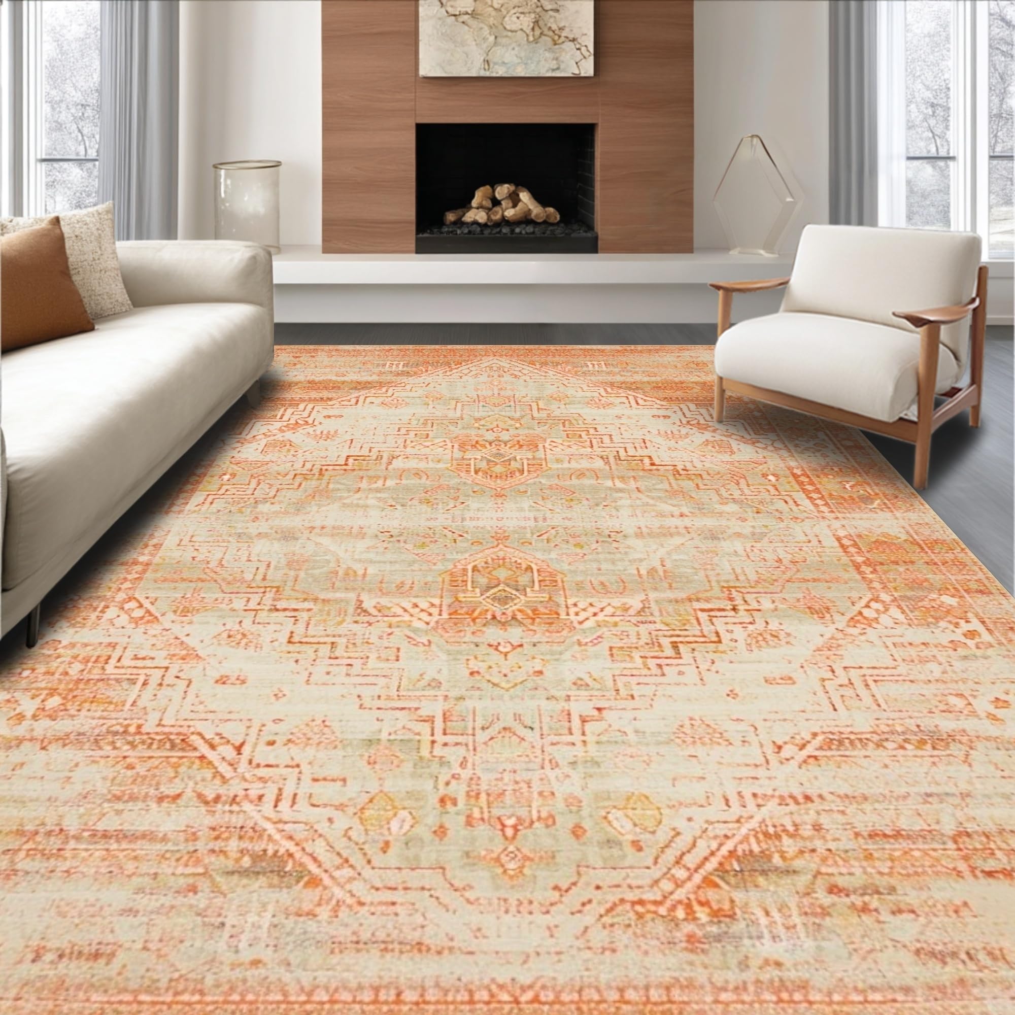 Ultra Soft Area Rug, Non Slip, Stain Resistant, Washable Area Rugs for Living Room, Bedroom, Kitchen Runner with Boho Retro Vintage Style(Orange) Overview: