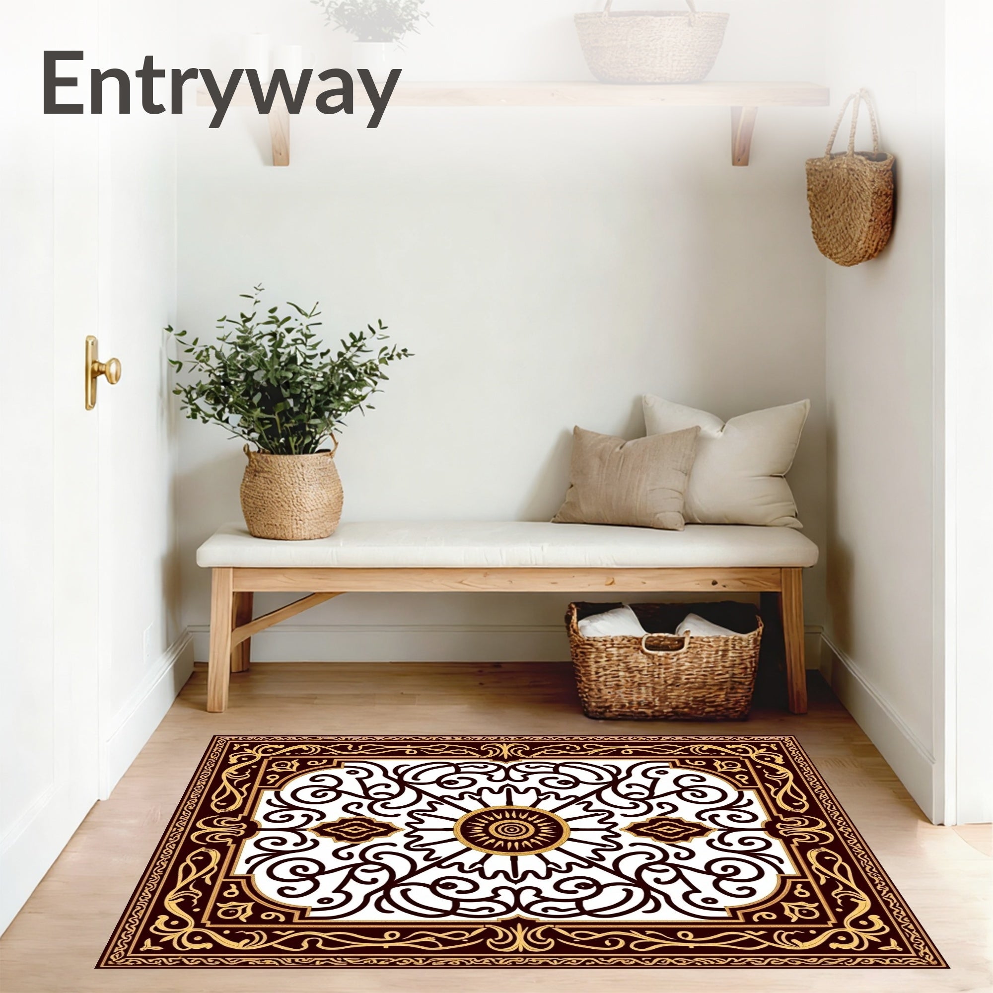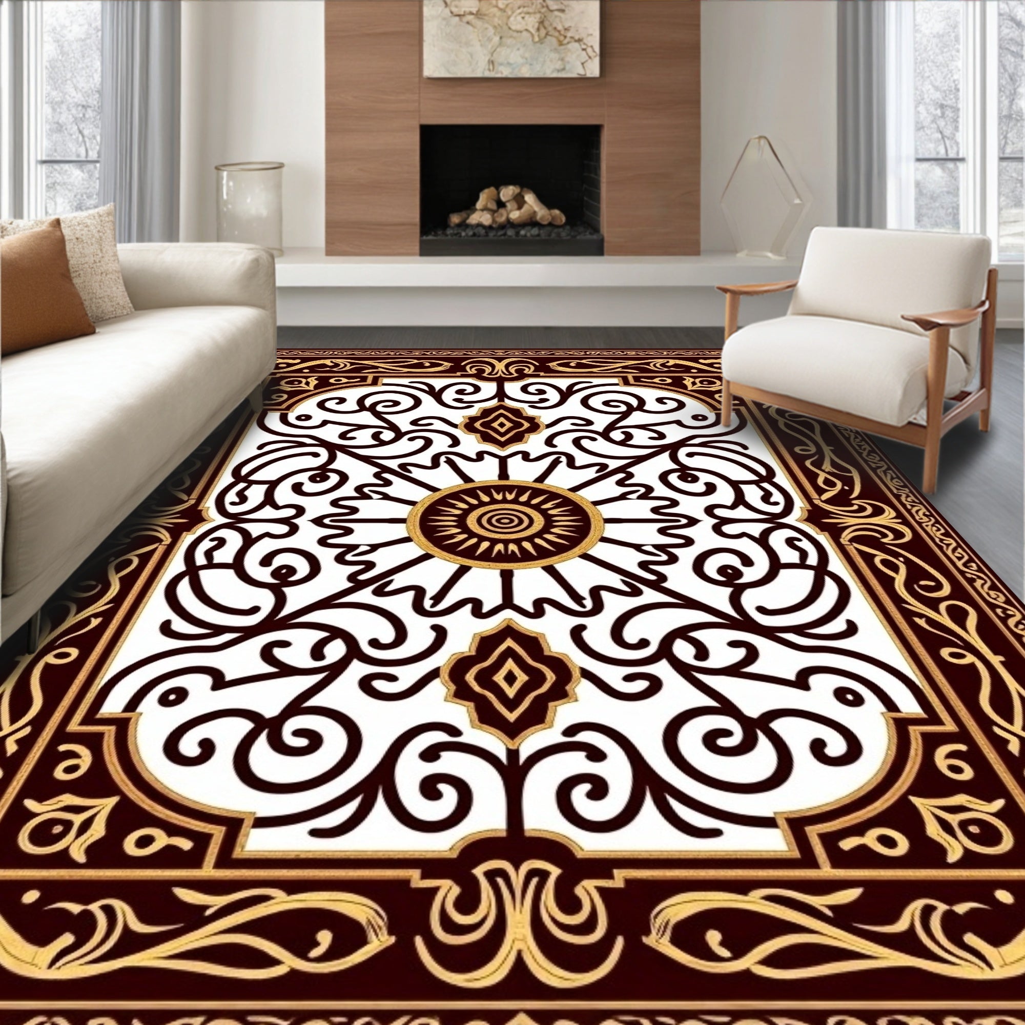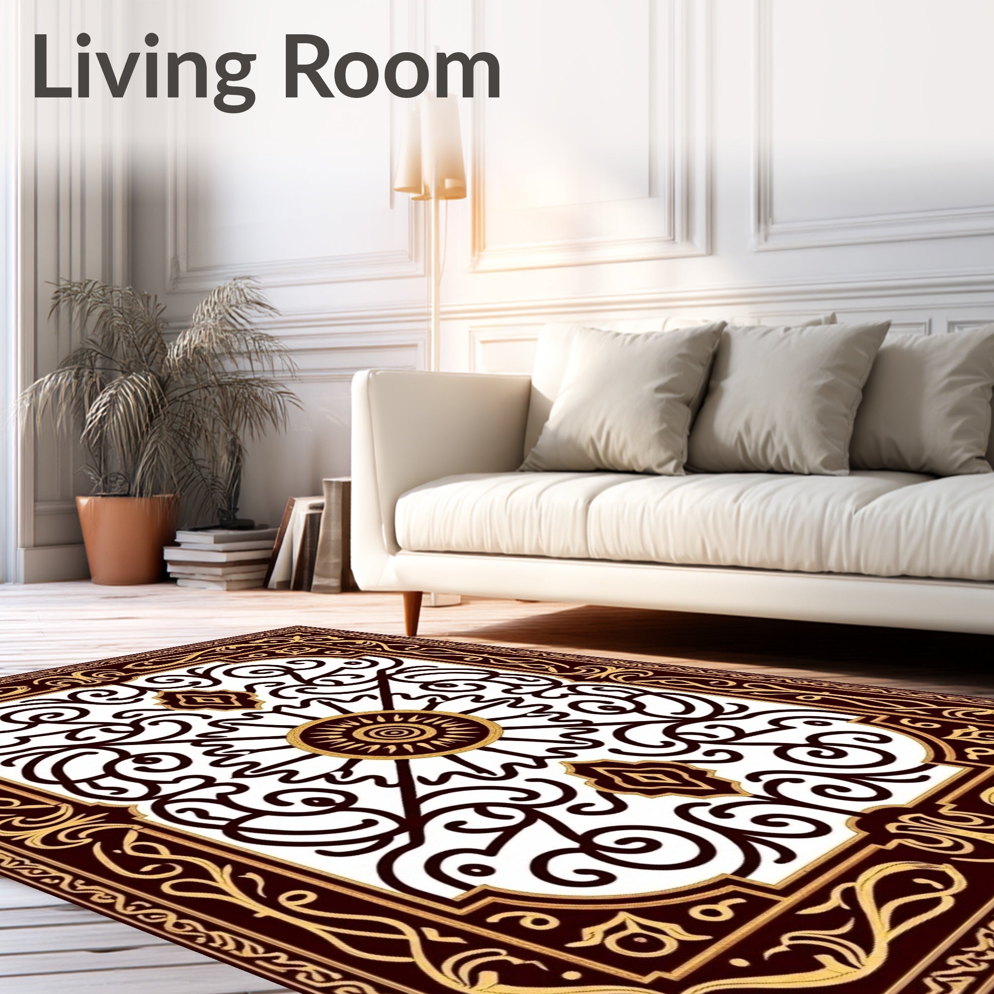 Flatwoven High Traffic Area Rug, Labyrinth Scrollwork Dynasty Heirloom Craftsmanship, Non Slip, Stain Resistant, Washable Area Rugs for Living Room, Bedroom (Brown) Overview: