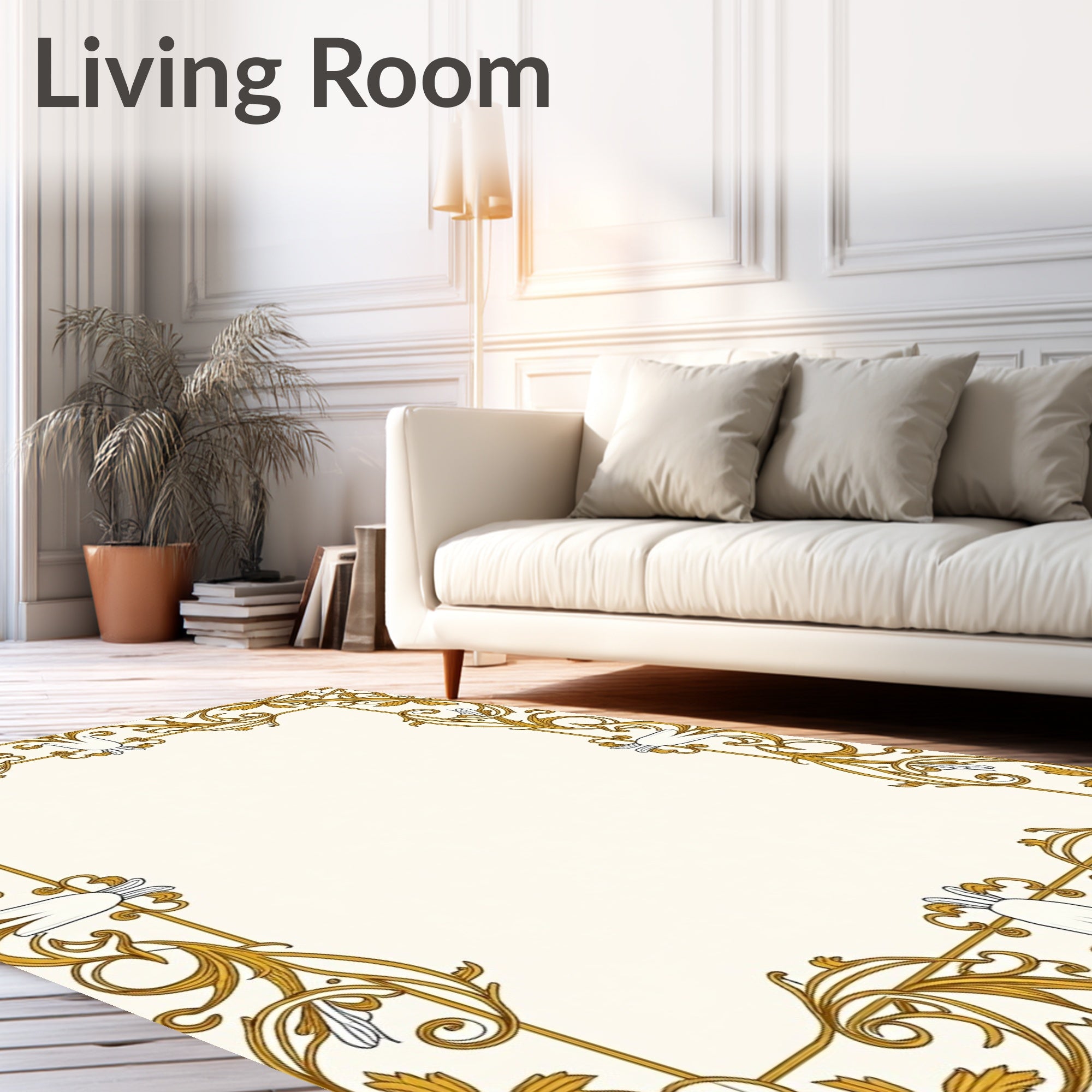 Flatwoven High Traffic Area Rug, Lagomorph Dynasty Palace Exquisite Accent, Non Slip, Stain Resistant, Washable Area Rugs for Living Room, Bedroom (Gold) Overview: