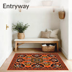 Ultra Soft Area Rug, Non Slip, Stain Resistant, Washable Area Rugs for Living Room, Bedroom, Lattice with Ornate Scrollwork and Abstract Floral Highlights(Orange) Overview: