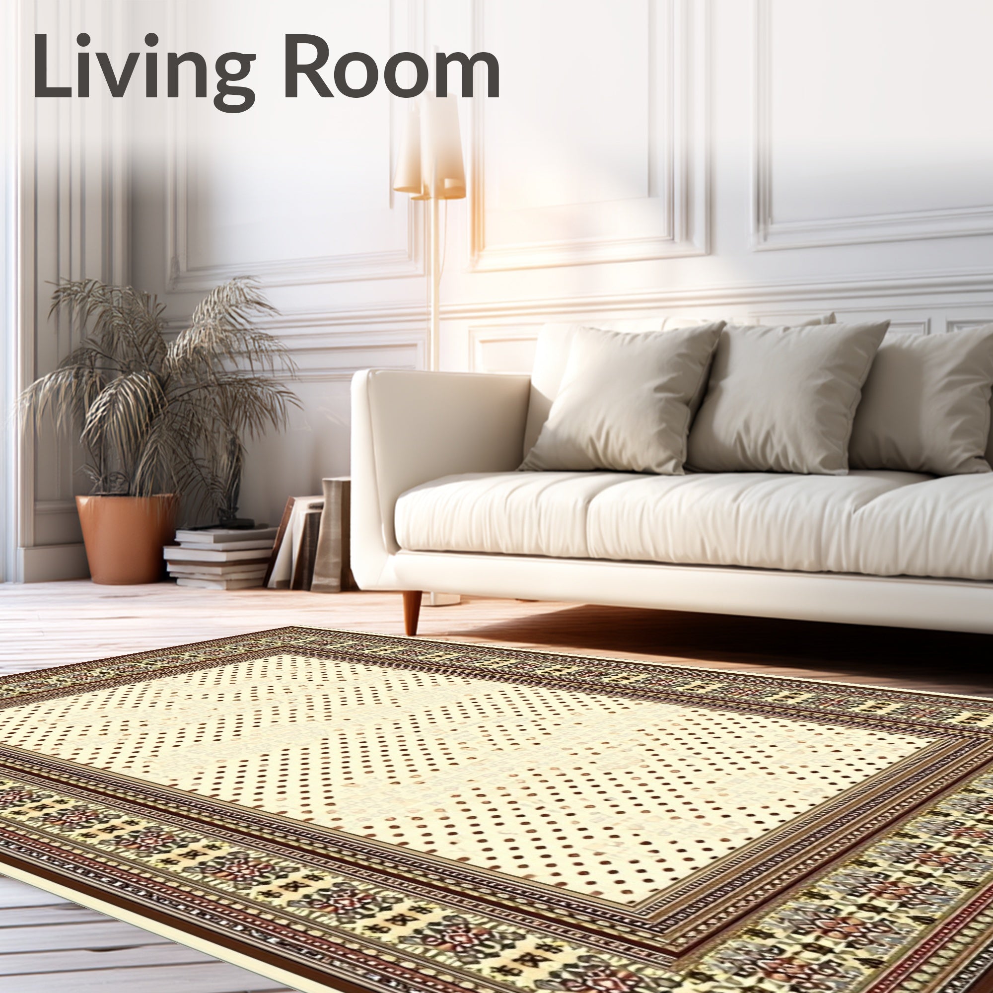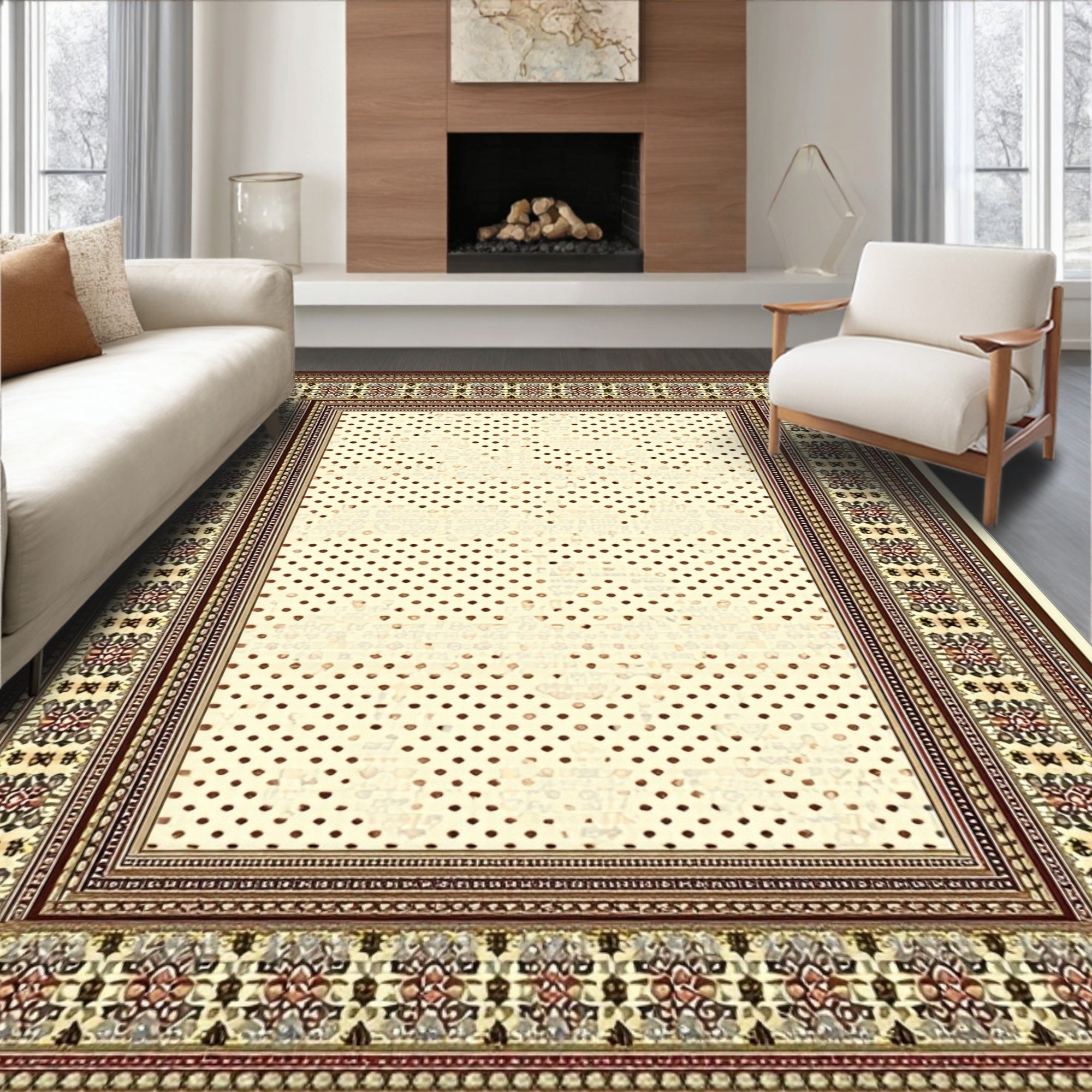 Ultra Soft Area Rug, Non Slip, Stain Resistant, Washable Area Rugs for Living Room, Bedroom, Legacy Line Traditional Border with Dotted Inlay(Beige) Overview: