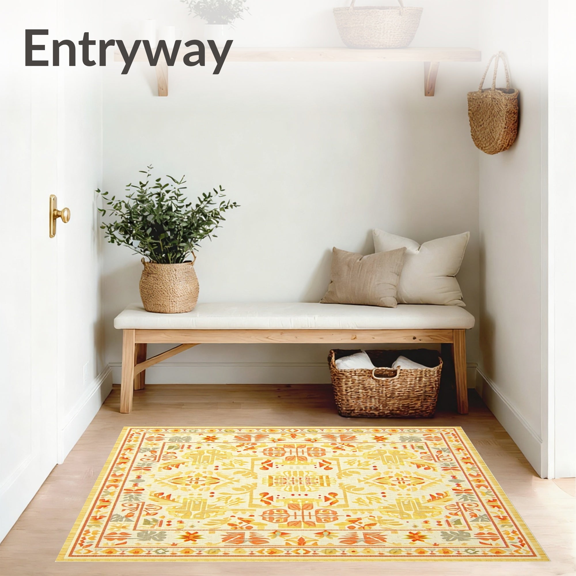 Ultra Soft Area Rug, Non Slip, Stain Resistant, Washable Area Rugs for Living Room, Bedroom, Lemon and Beige Casual(Yellow) Overview: