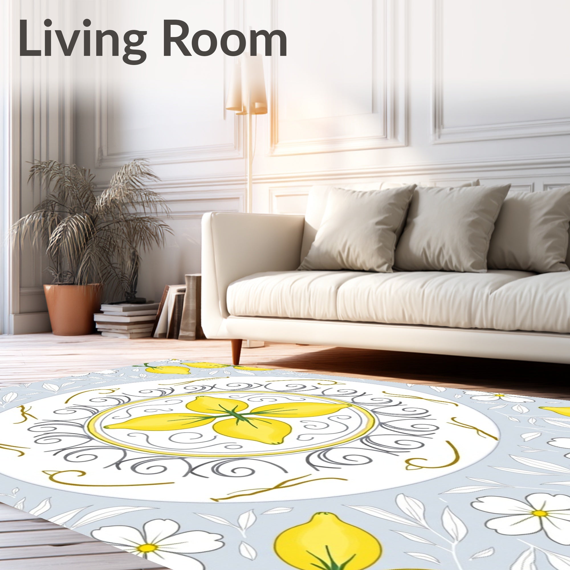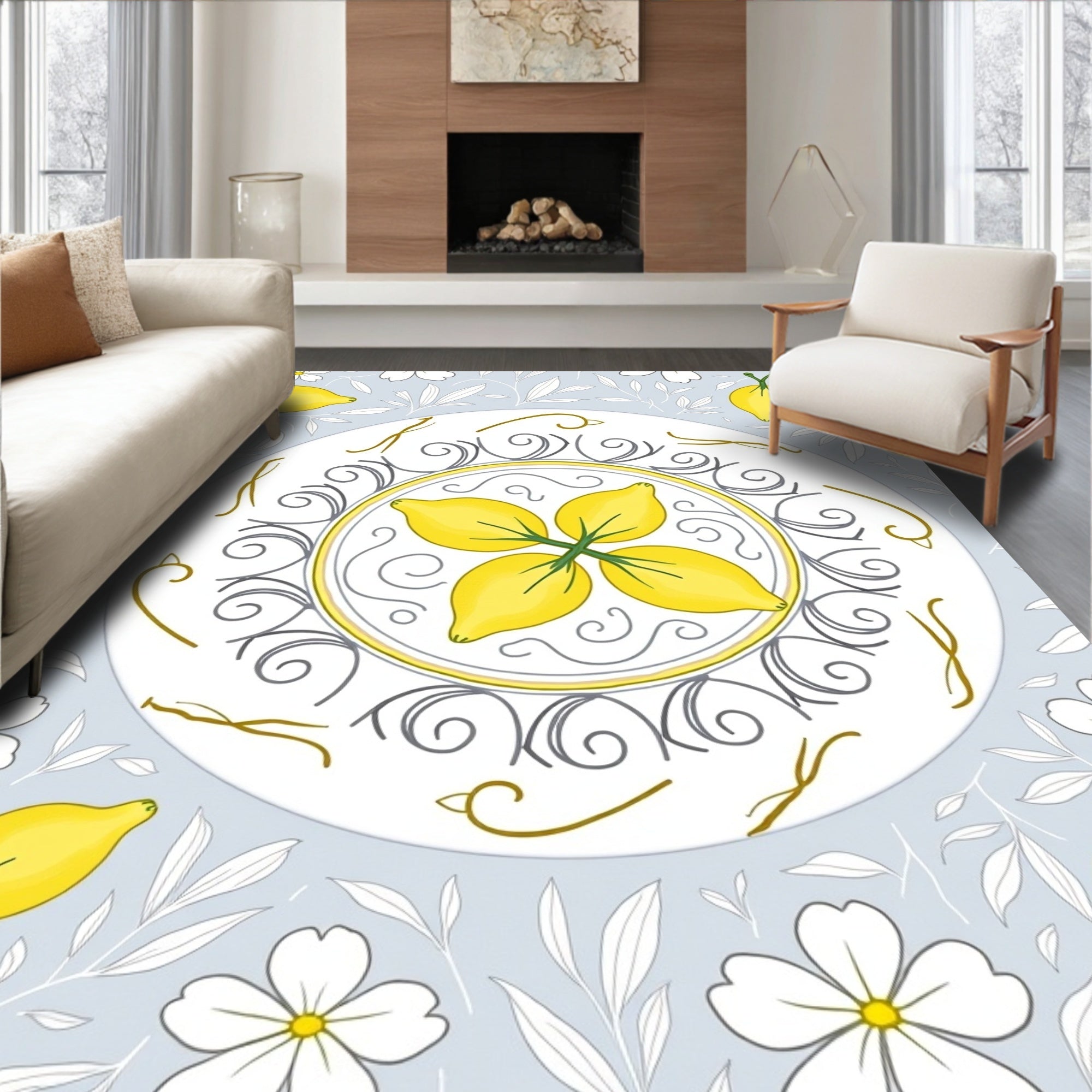 Flatwoven High Traffic Area Rug, Lemon Blossom Medallion Interlocking Floral, Non Slip, Stain Resistant, Washable Area Rugs for Living Room, Bedroom (Yellow) Overview: