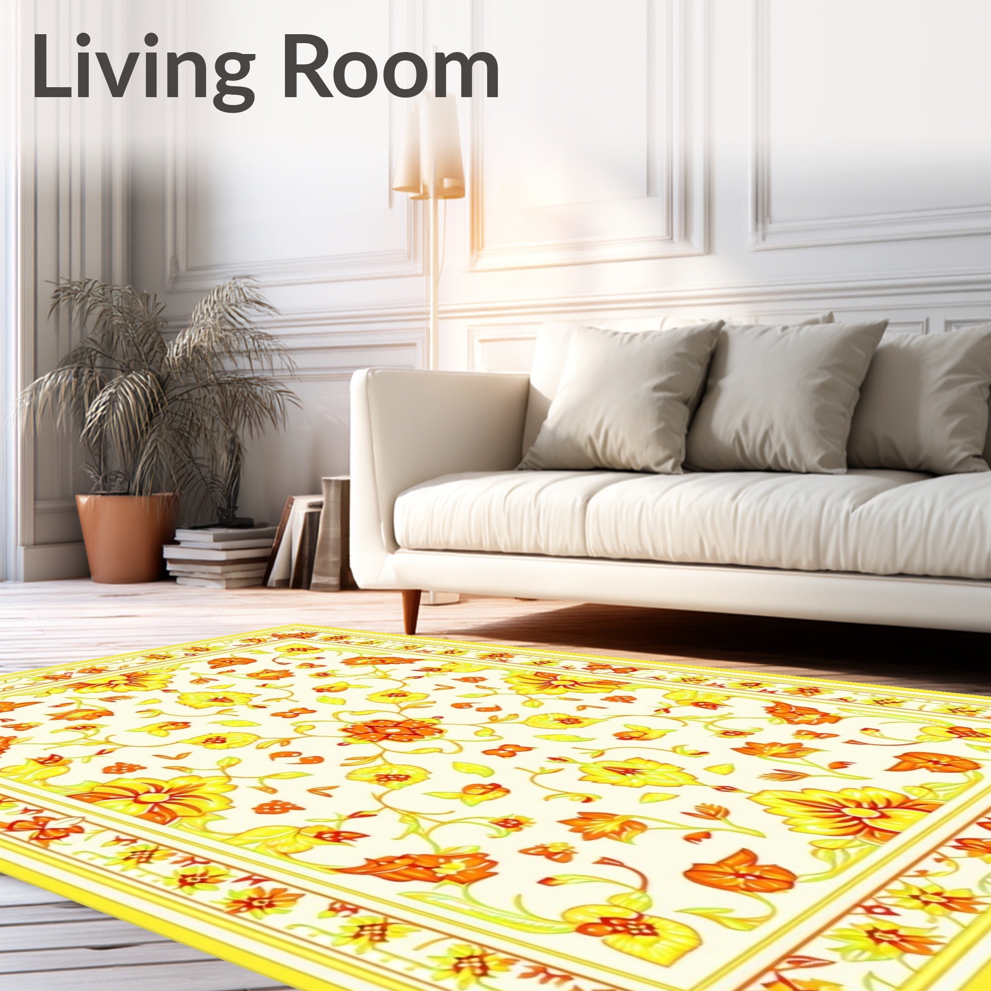 Ultra Soft Area Rug, Non Slip, Stain Resistant, Washable Area Rugs for Living Room, Bedroom, Lemon Yellow and Cream Coastal(Yellow) Overview: