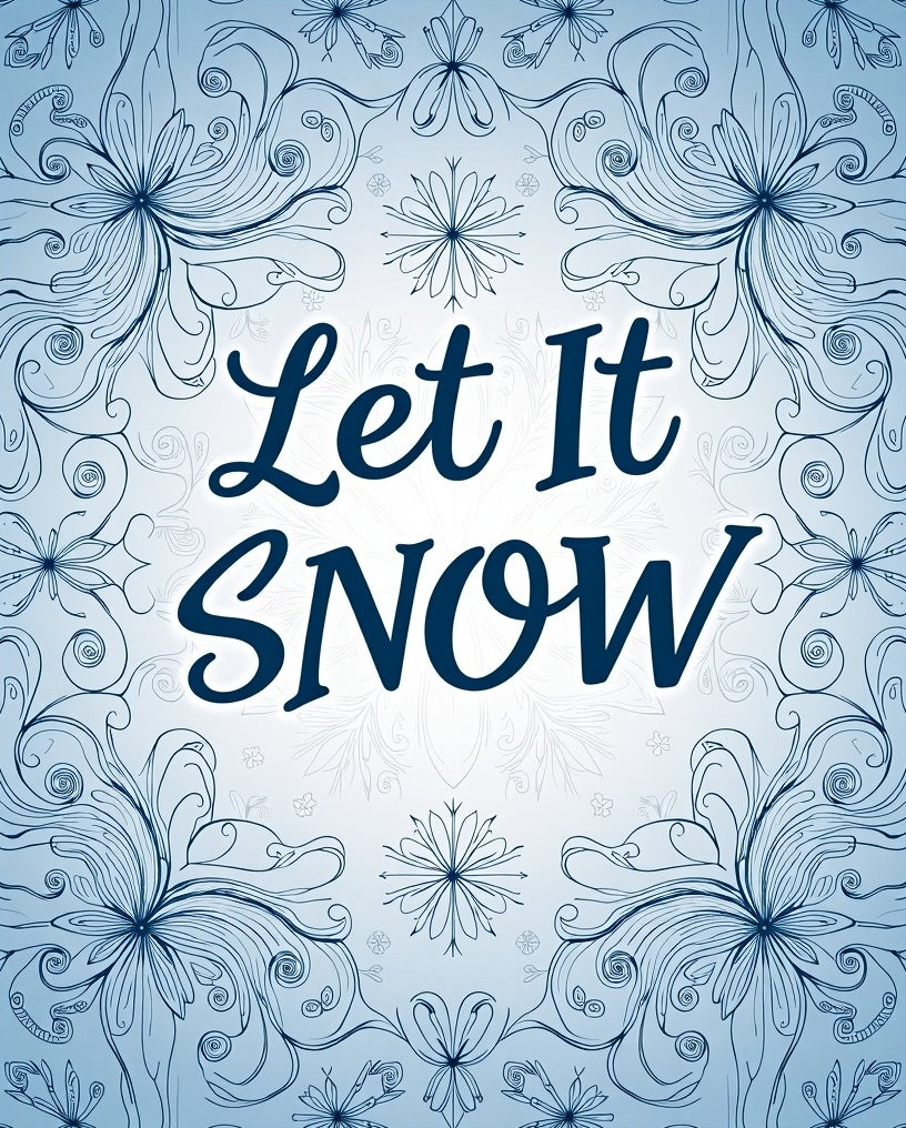 Let It Snow Script with Whimsical Swirl Design(Blue)