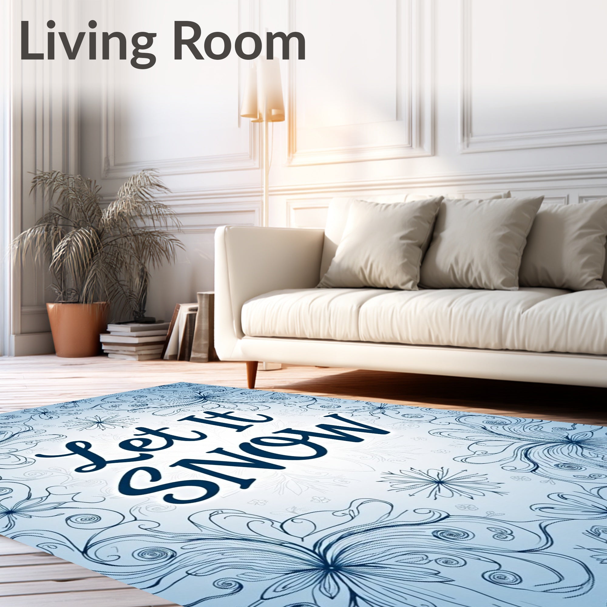 Ultra Soft Area Rug, Non Slip, Stain Resistant, Washable Area Rugs for Living Room, Bedroom, Let It Snow Script with Whimsical Swirl Design(Blue) Overview: