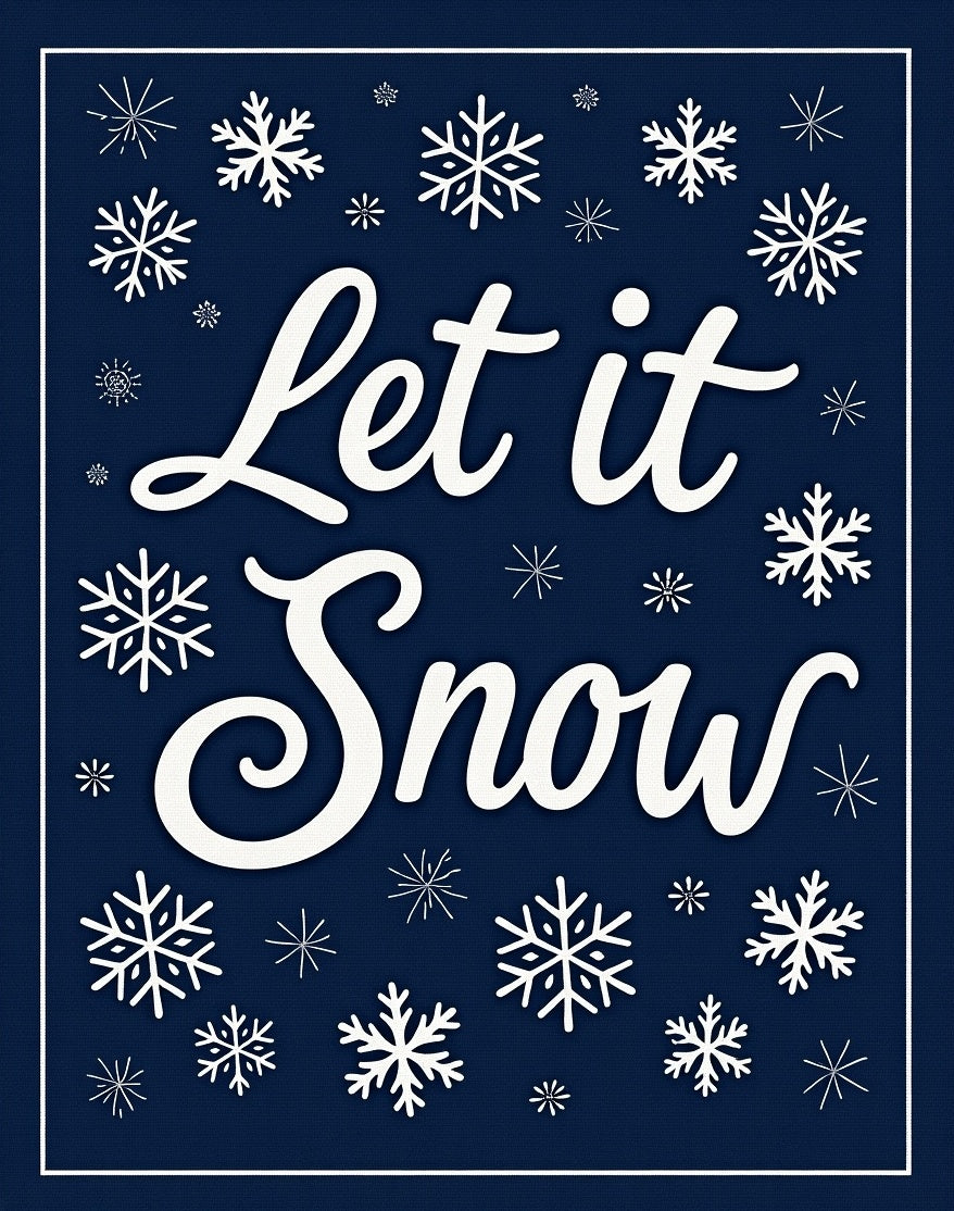 Let It Snow Typography Doormat Elegant Script Lettering Winter Theme(Blue)