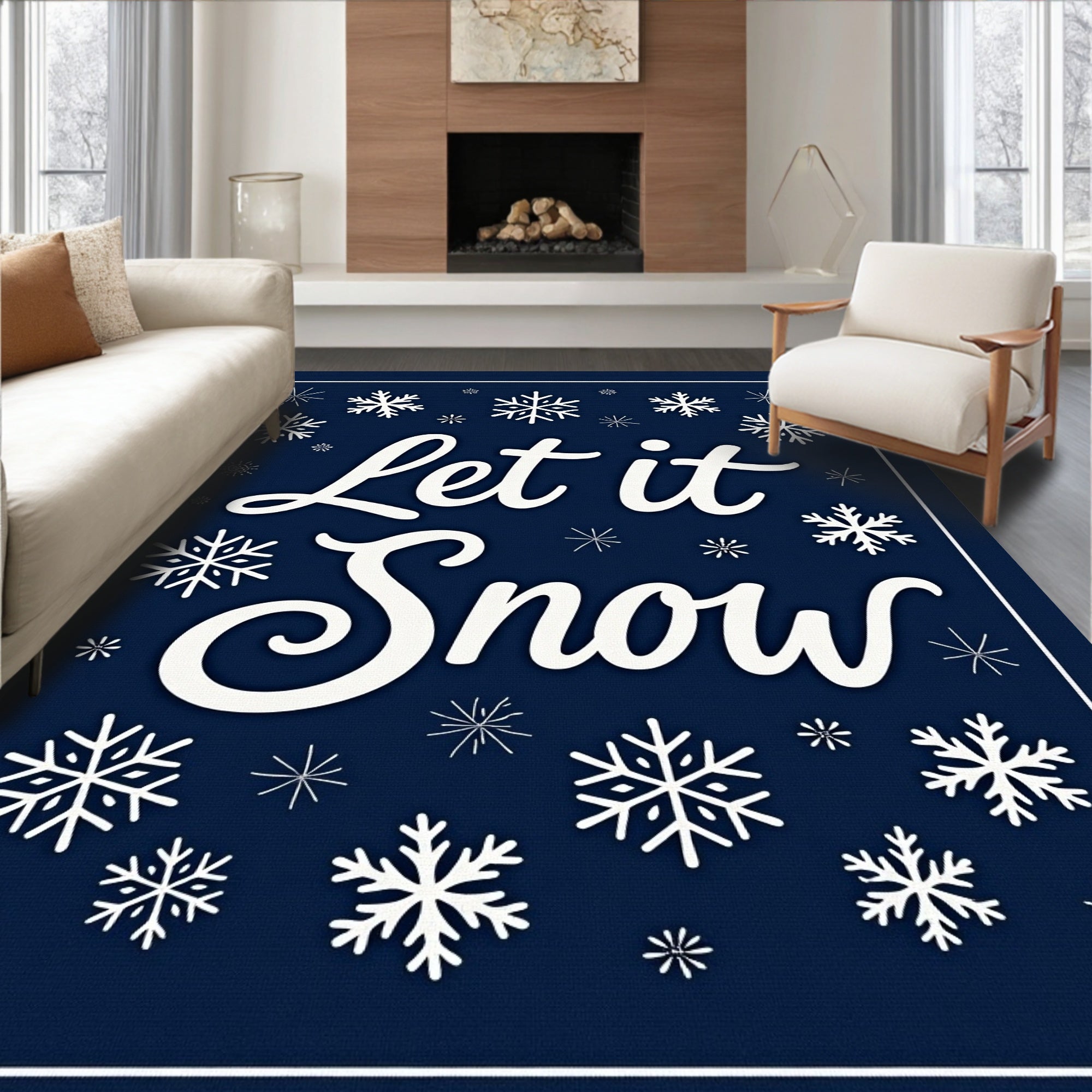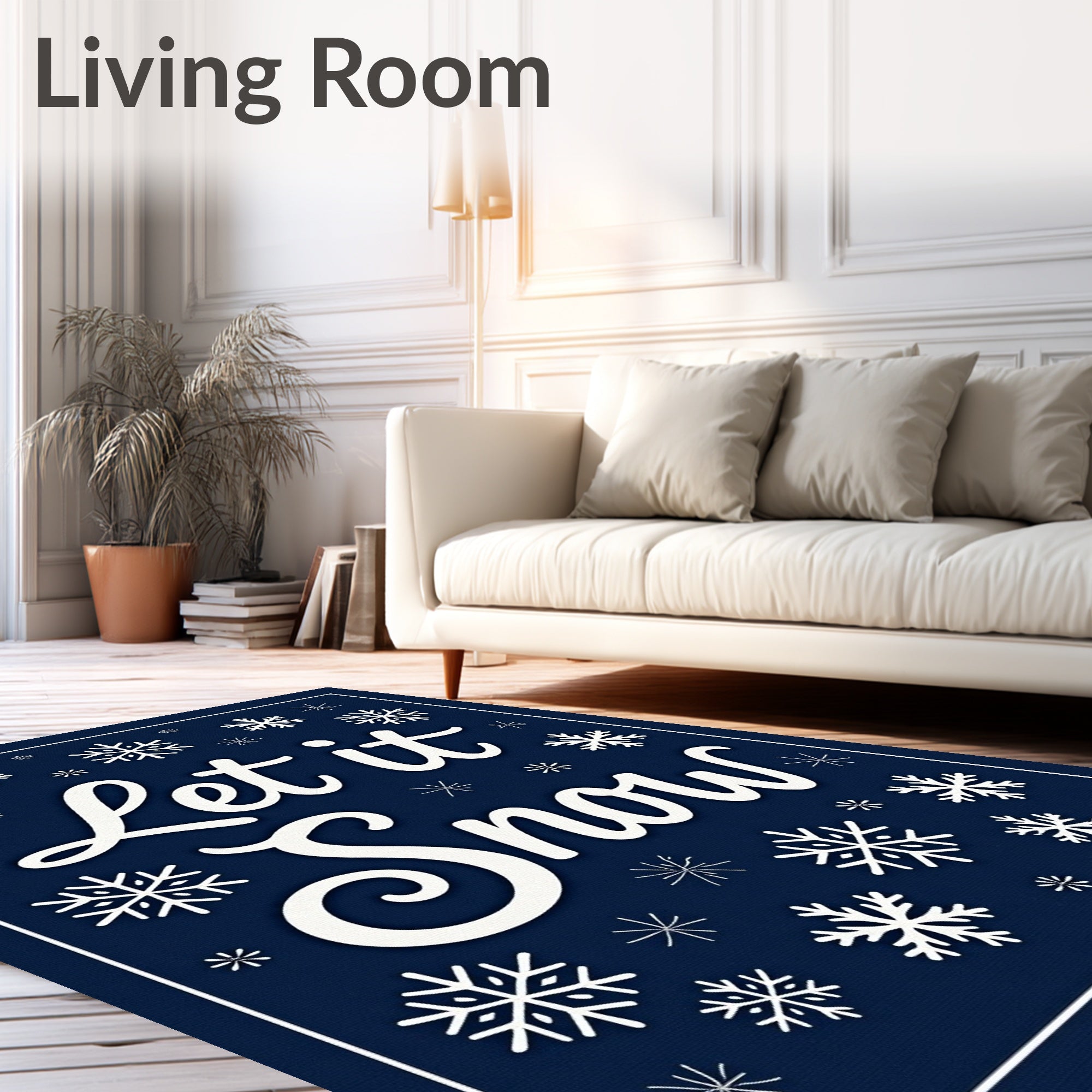 Ultra Soft Area Rug, Non Slip, Stain Resistant, Washable Area Rugs for Living Room, Bedroom, Let It Snow Typography Doormat Elegant Script Lettering Winter Theme(Blue) Overview:
