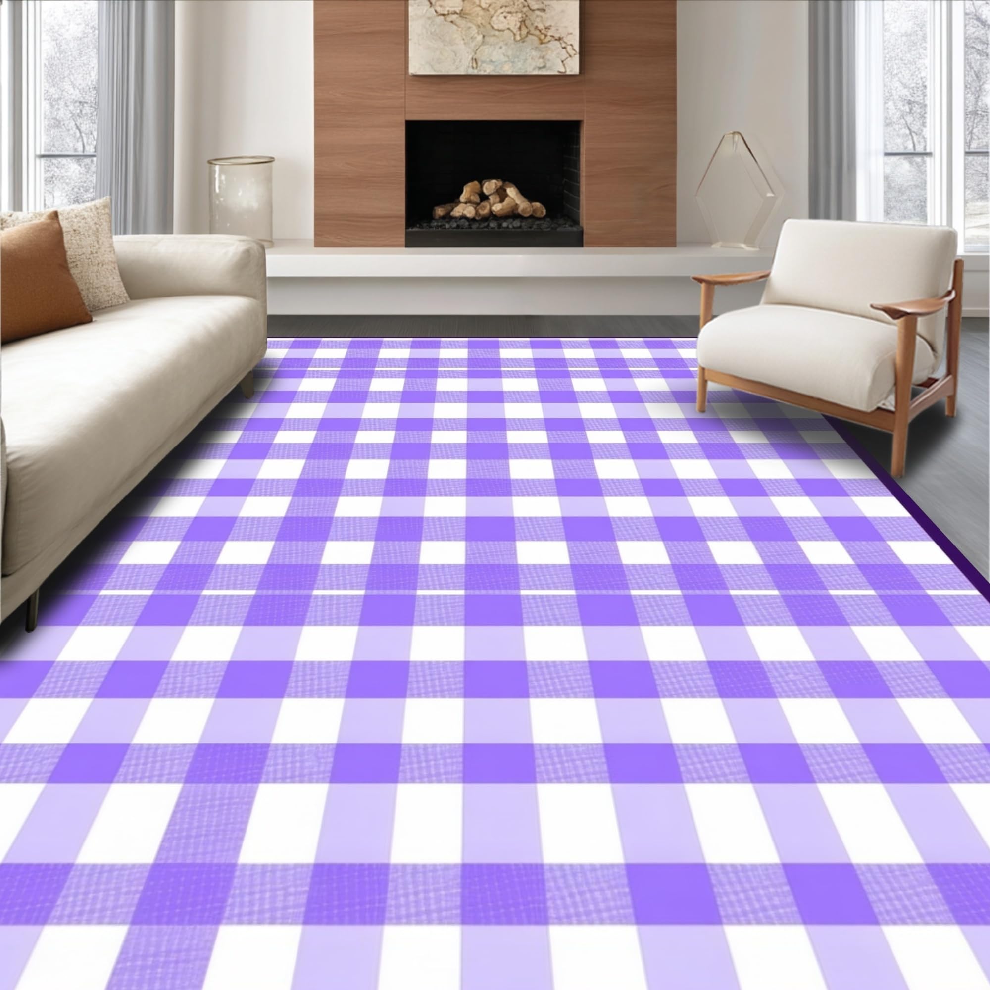 Ultra Soft Area Rug, Non Slip, Stain Resistant, Washable Area Rugs for Living Room, Bedroom, Lively Abstract Lattice Color Fusion(Purple) Overview:
