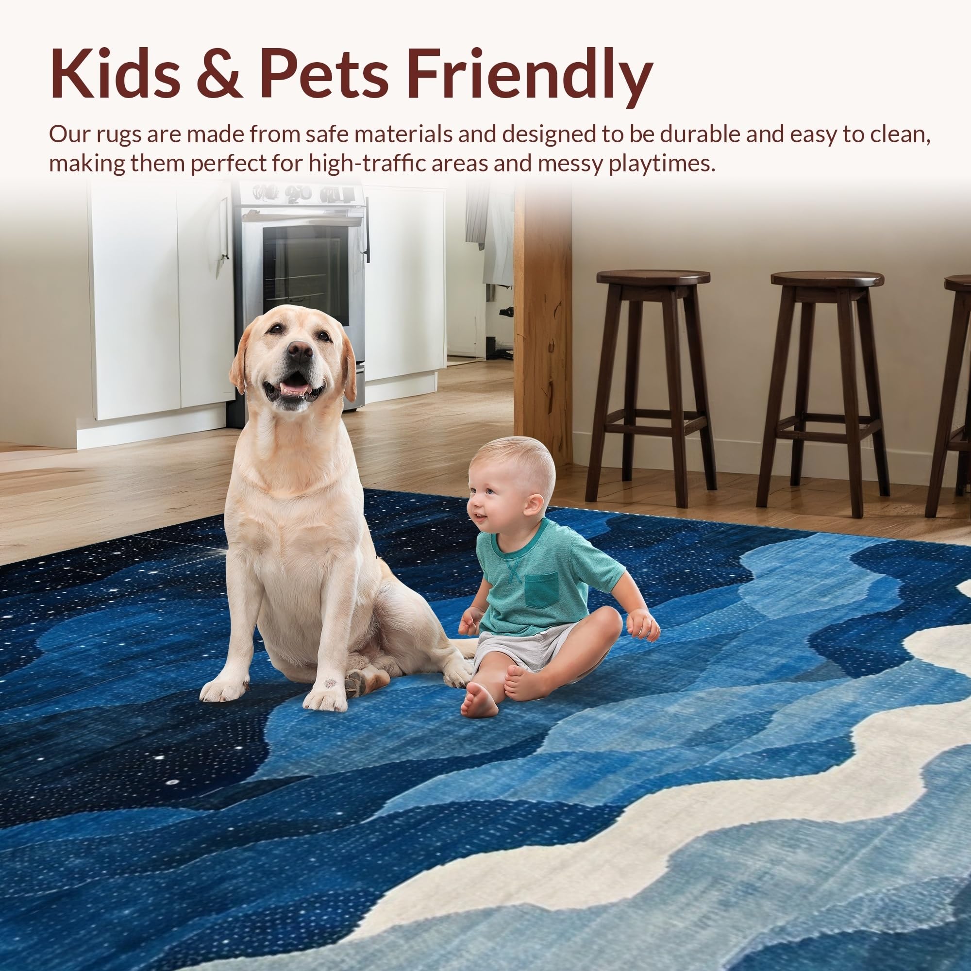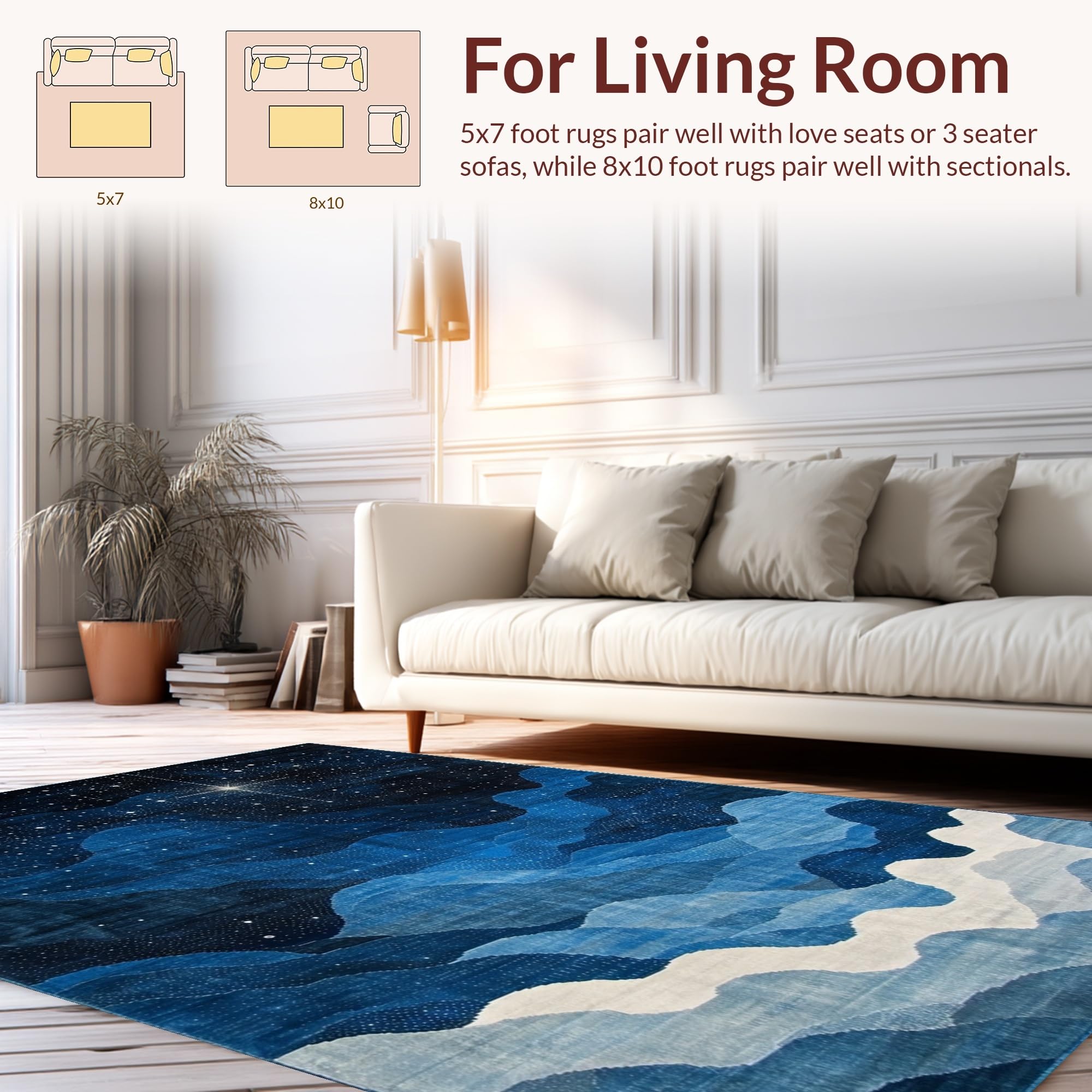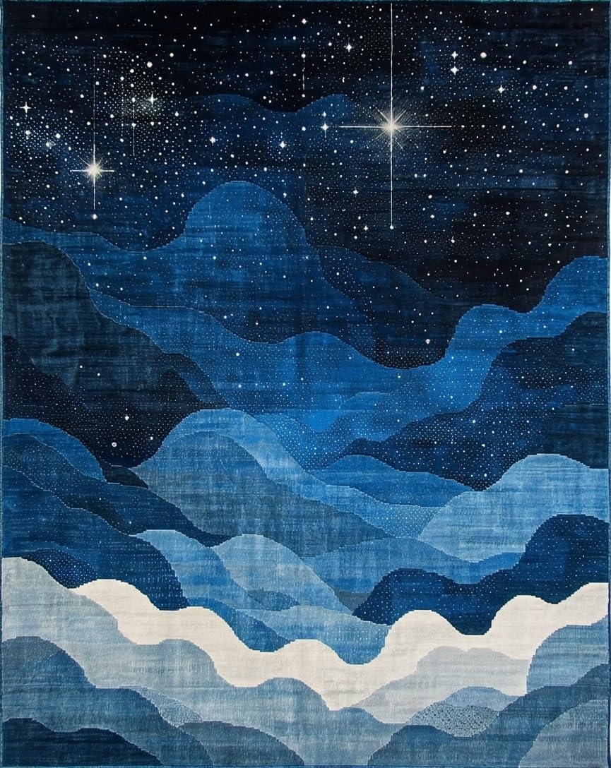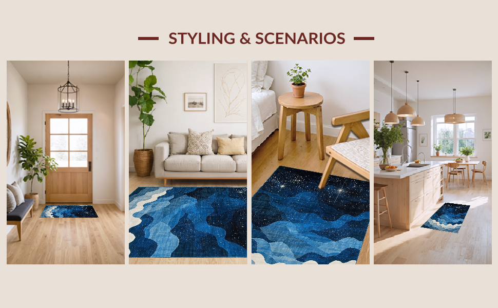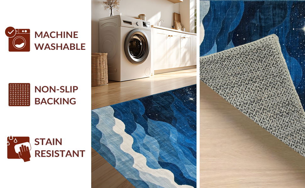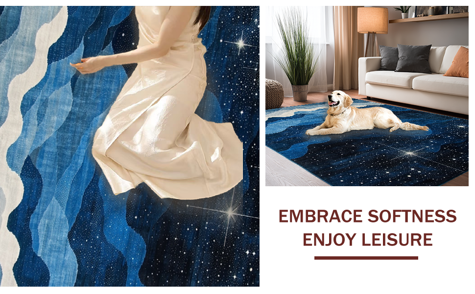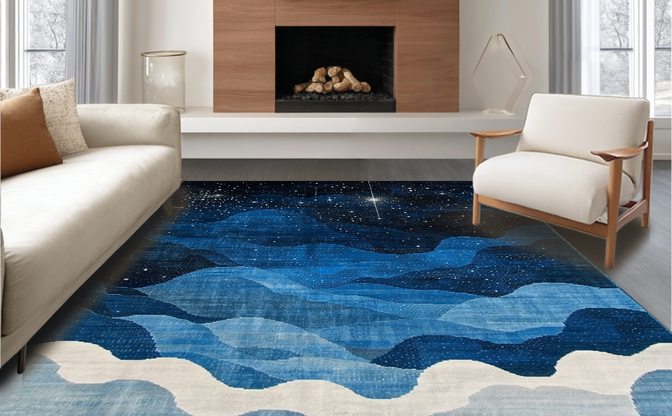 Ultra Soft Area Rug, Non Slip, Stain Resistant, Washable Area Rugs for Living Room, Bedroom, Lively Astronomical Patterned Accent(Blue) Overview: