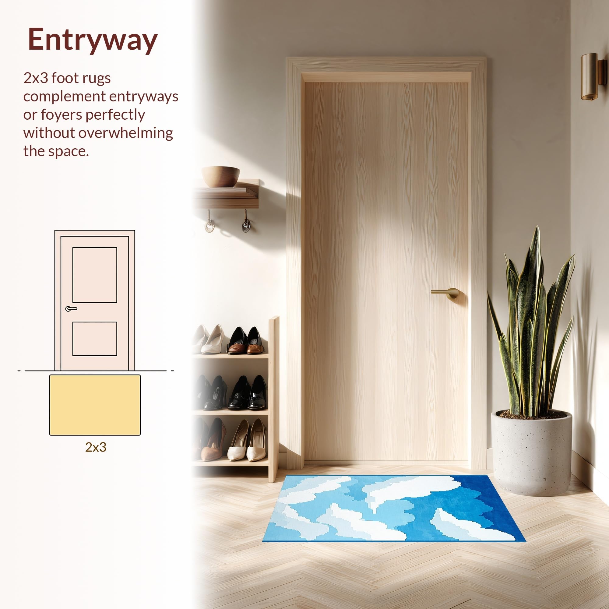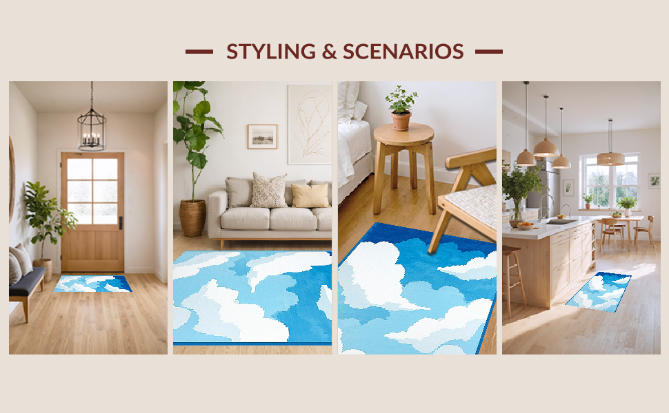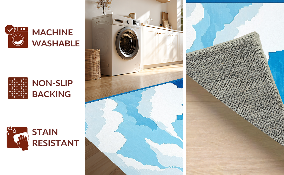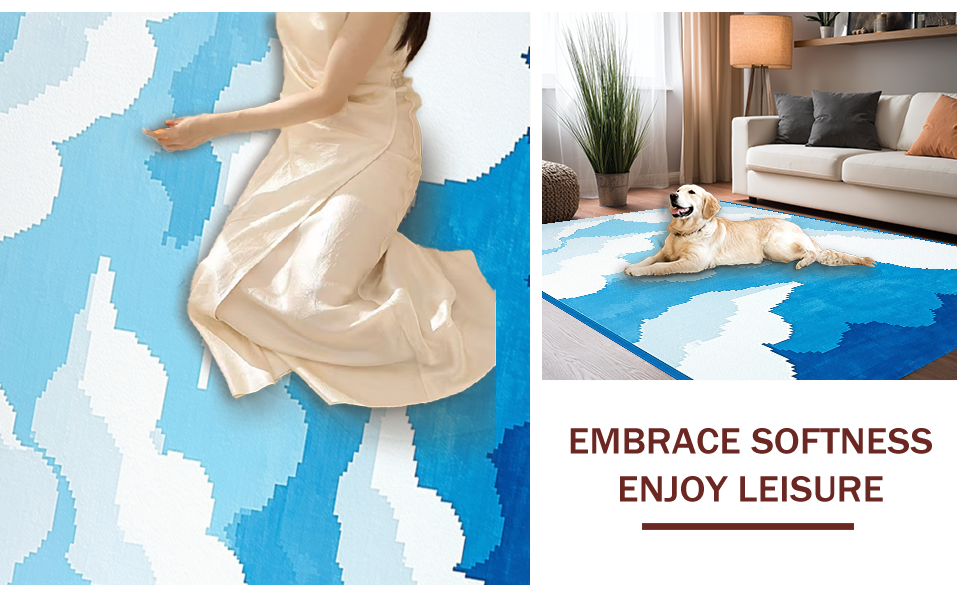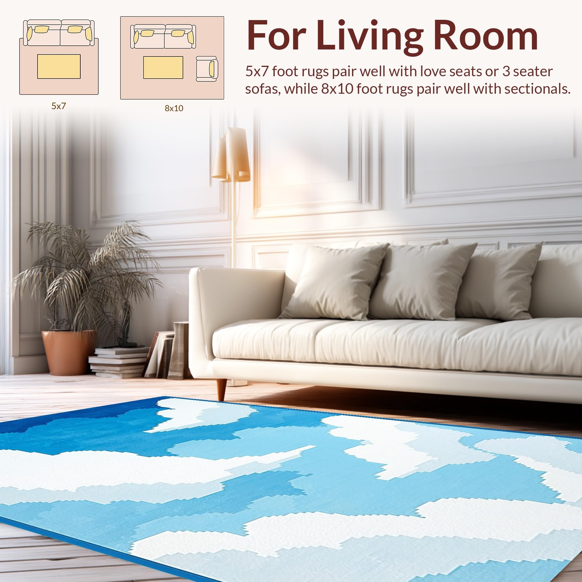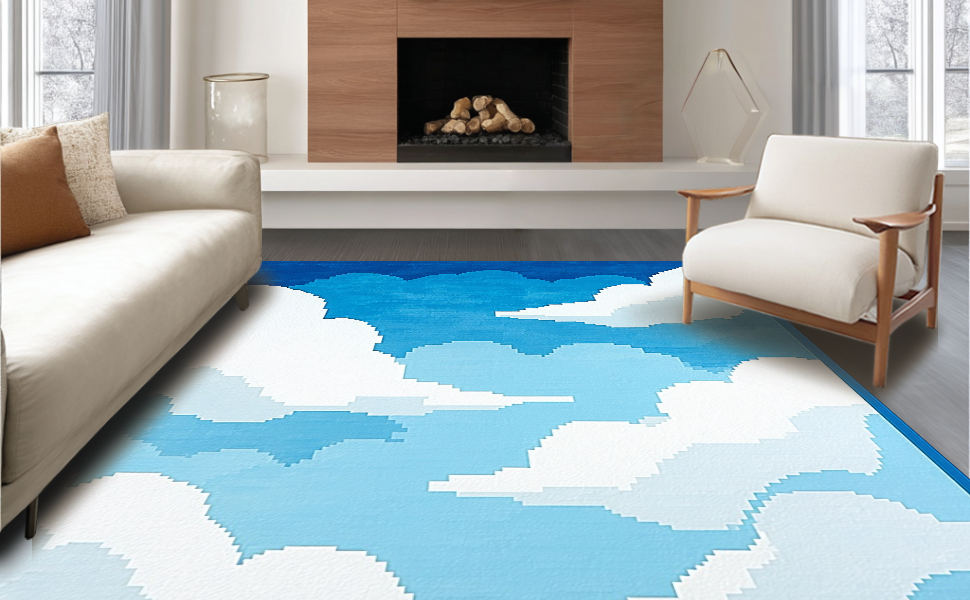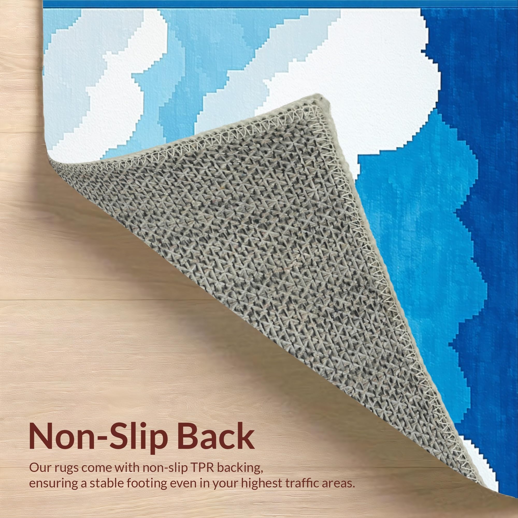 Ultra Soft Area Rug, Non Slip, Stain Resistant, Washable Area Rugs for Living Room, Bedroom, Lively Childlike Cloud Patterns(Blue) Overview: