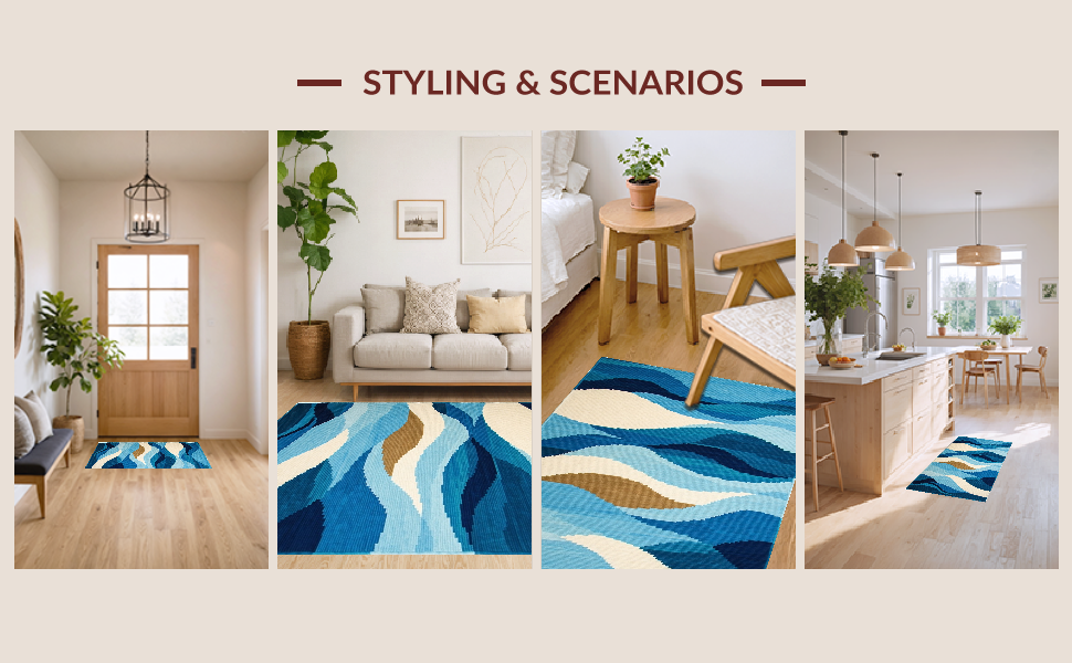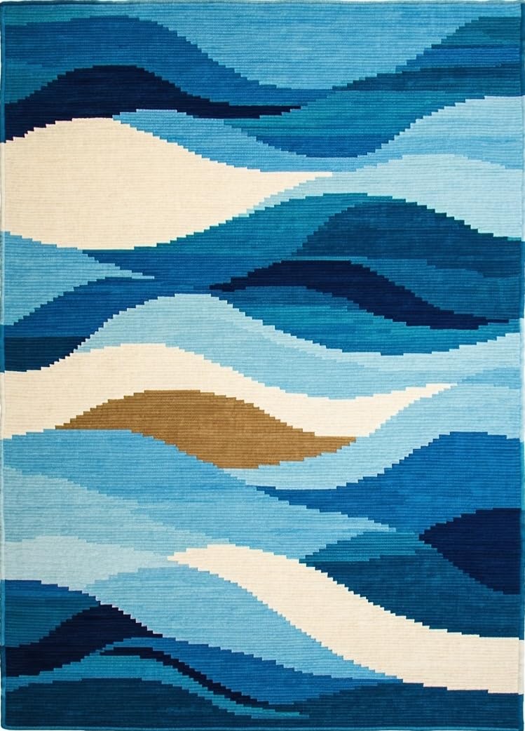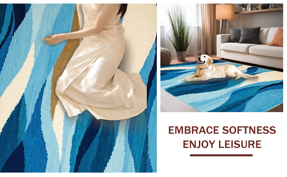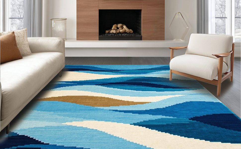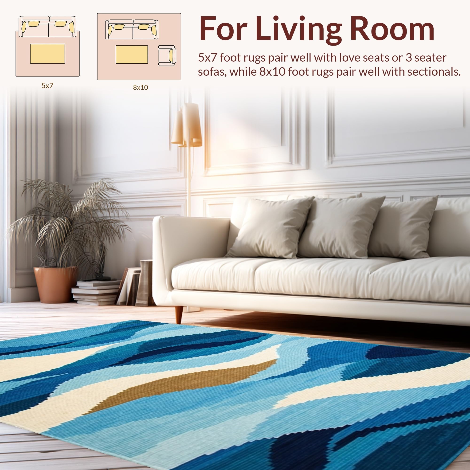 Ultra Soft Area Rug, Non Slip, Stain Resistant, Washable Area Rugs for Living Room, Bedroom, Lively Coastal Splash Visual(Blue) Overview: