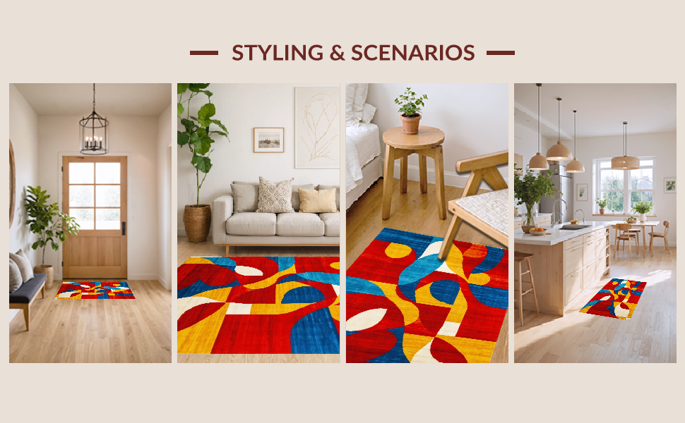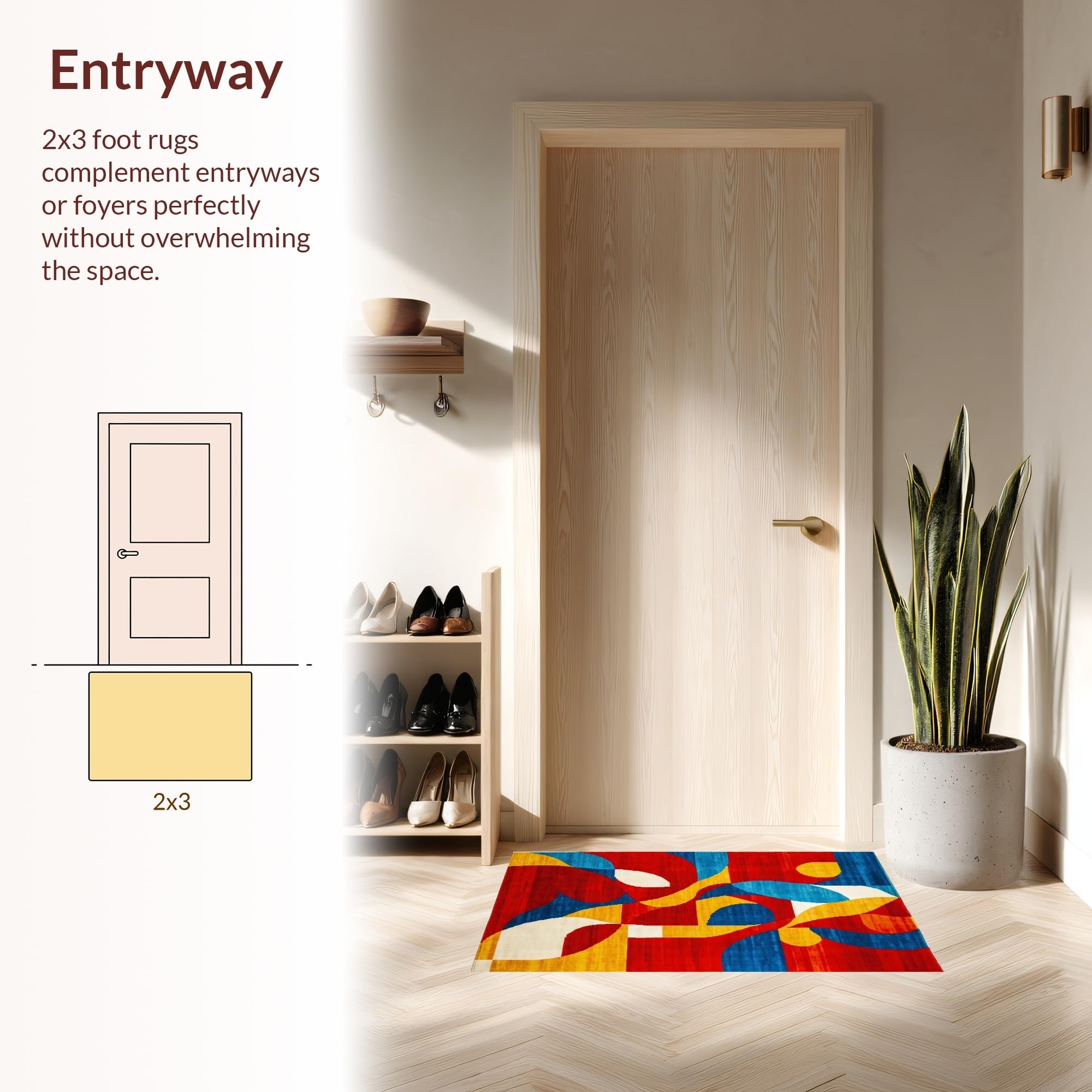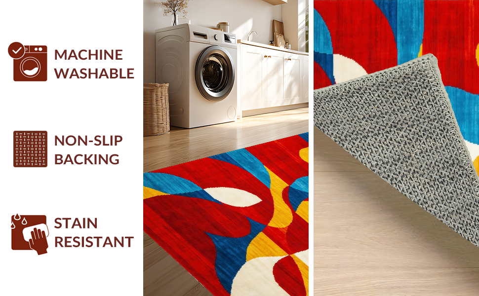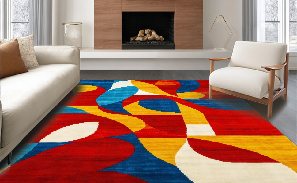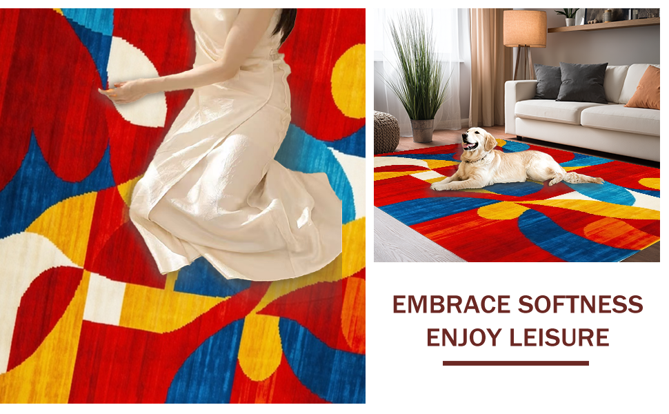 Ultra Soft Area Rug, Non Slip, Stain Resistant, Washable Area Rugs for Living Room, Bedroom, Lively Color Explosion Design(Red) Overview: