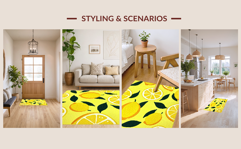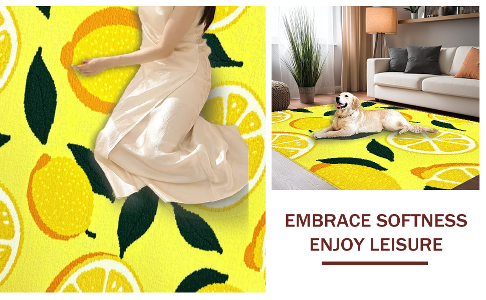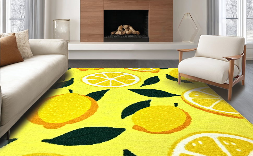 Ultra Soft Area Rug, Non Slip, Stain Resistant, Washable Area Rugs for Living Room, Bedroom, Lively Colorful Organic Shapes(Yellow) Overview: