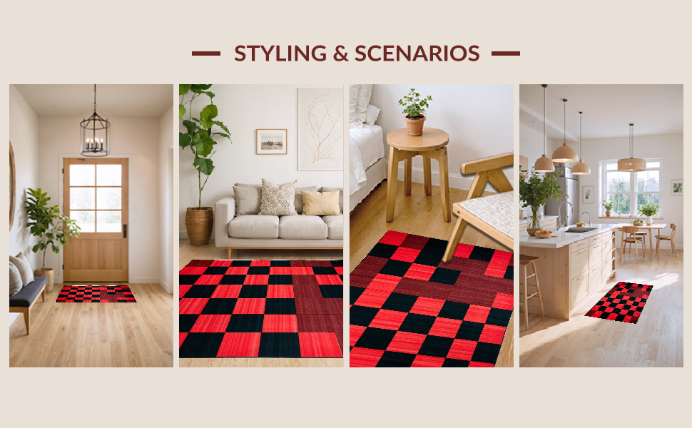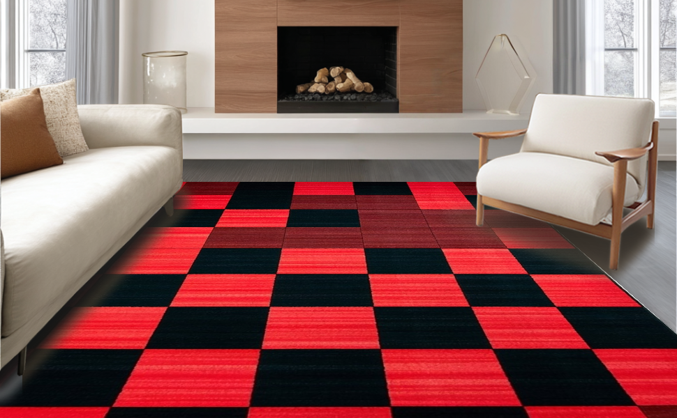 Ultra Soft Area Rug, Non Slip, Stain Resistant, Washable Area Rugs for Living Room, Bedroom, Lively Colorful Tic-Tac-Toe Layout(Red) Overview: