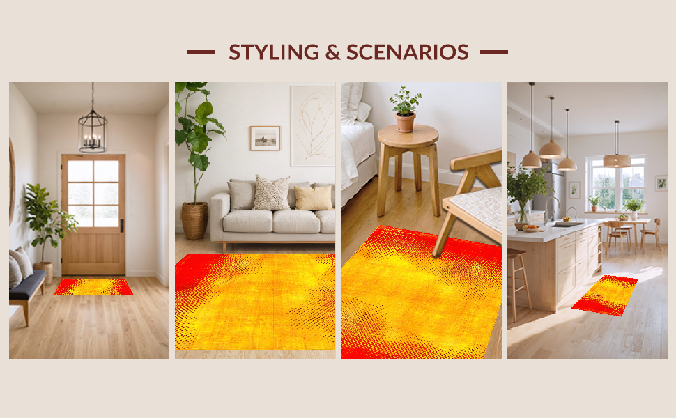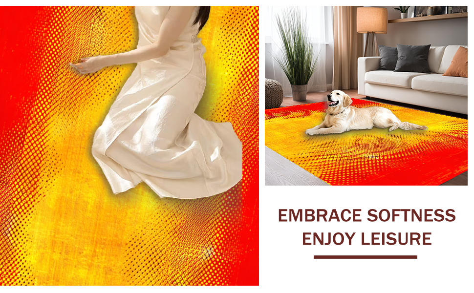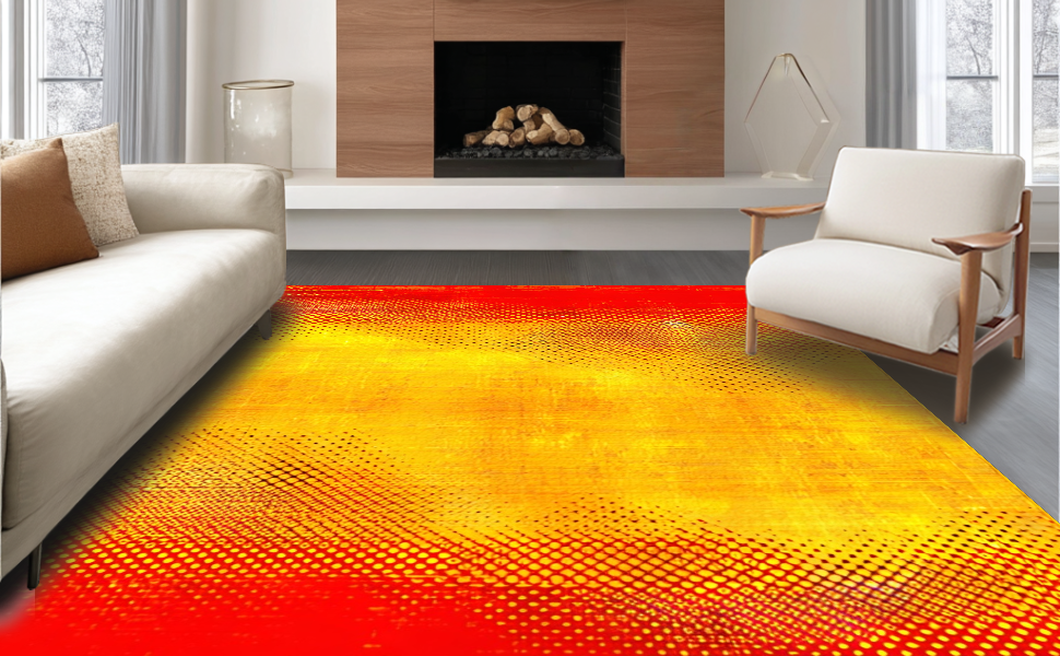 Ultra Soft Area Rug, Non Slip, Stain Resistant, Washable Area Rugs for Living Room, Bedroom, Lively Contemporary Artful Design(Red) Overview:
