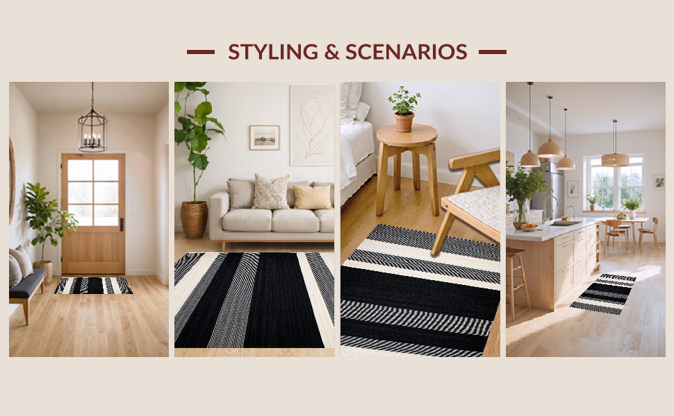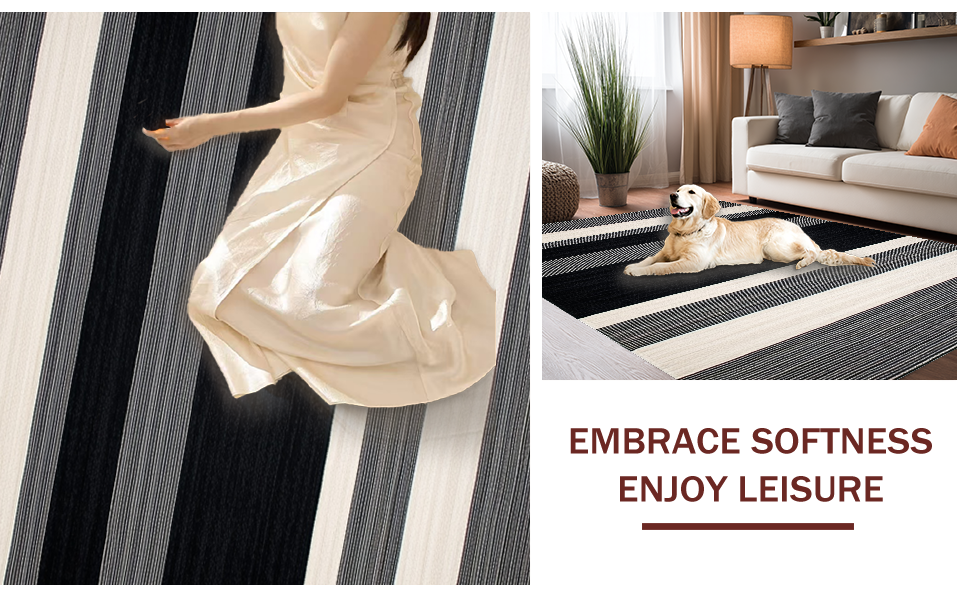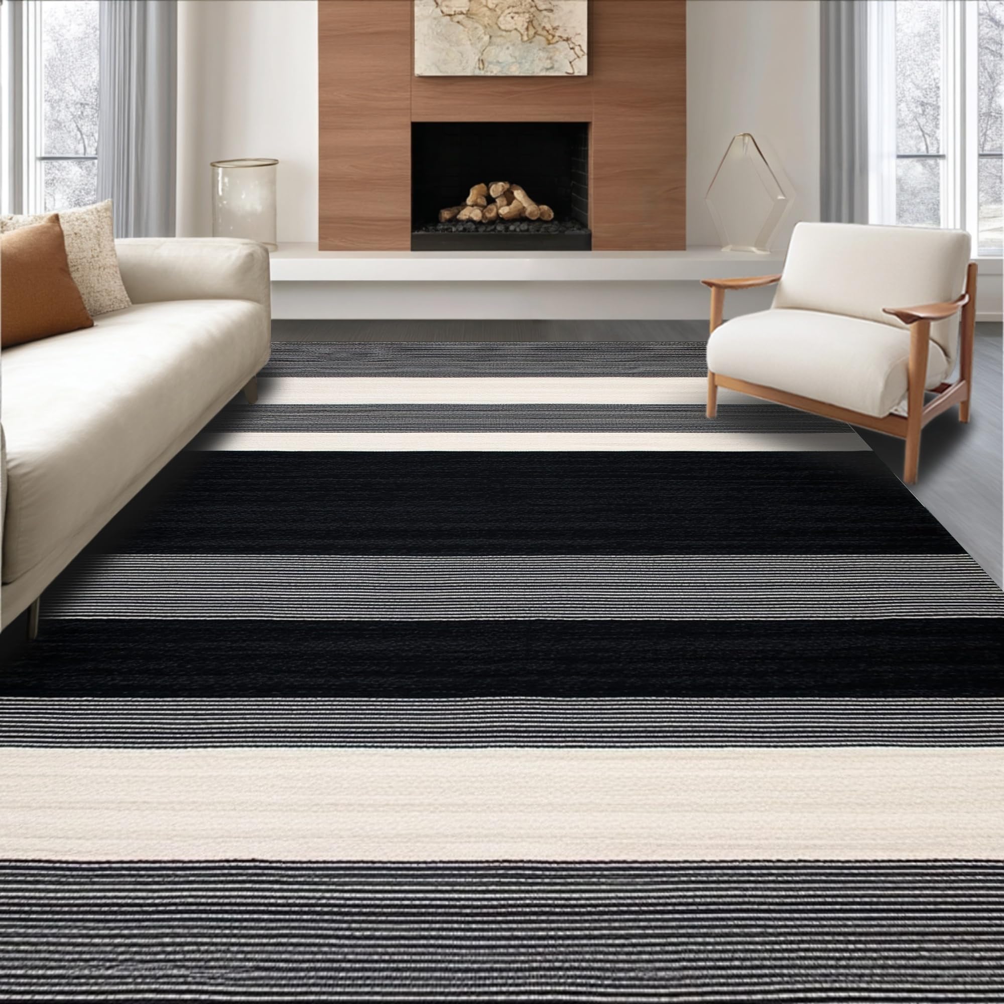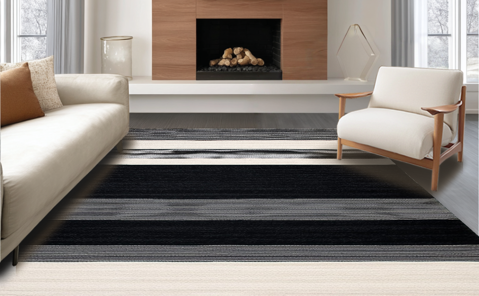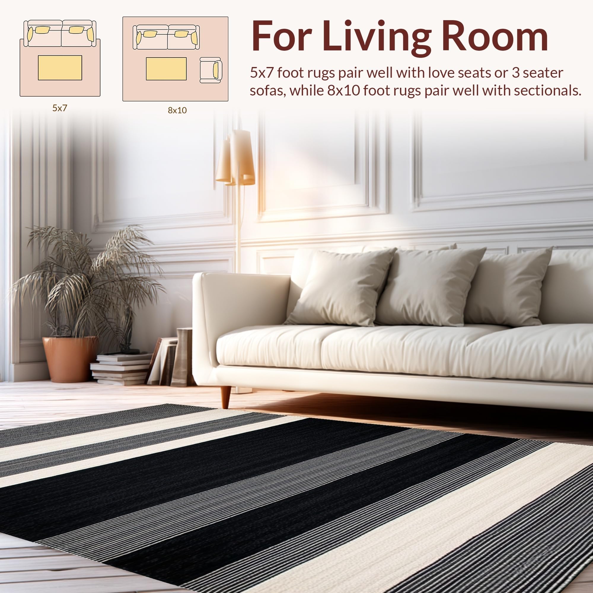 Ultra Soft Area Rug, Non Slip, Stain Resistant, Washable Area Rugs for Living Room, Bedroom, Lively Contemporary Black Beige Fusion(Black) Overview: