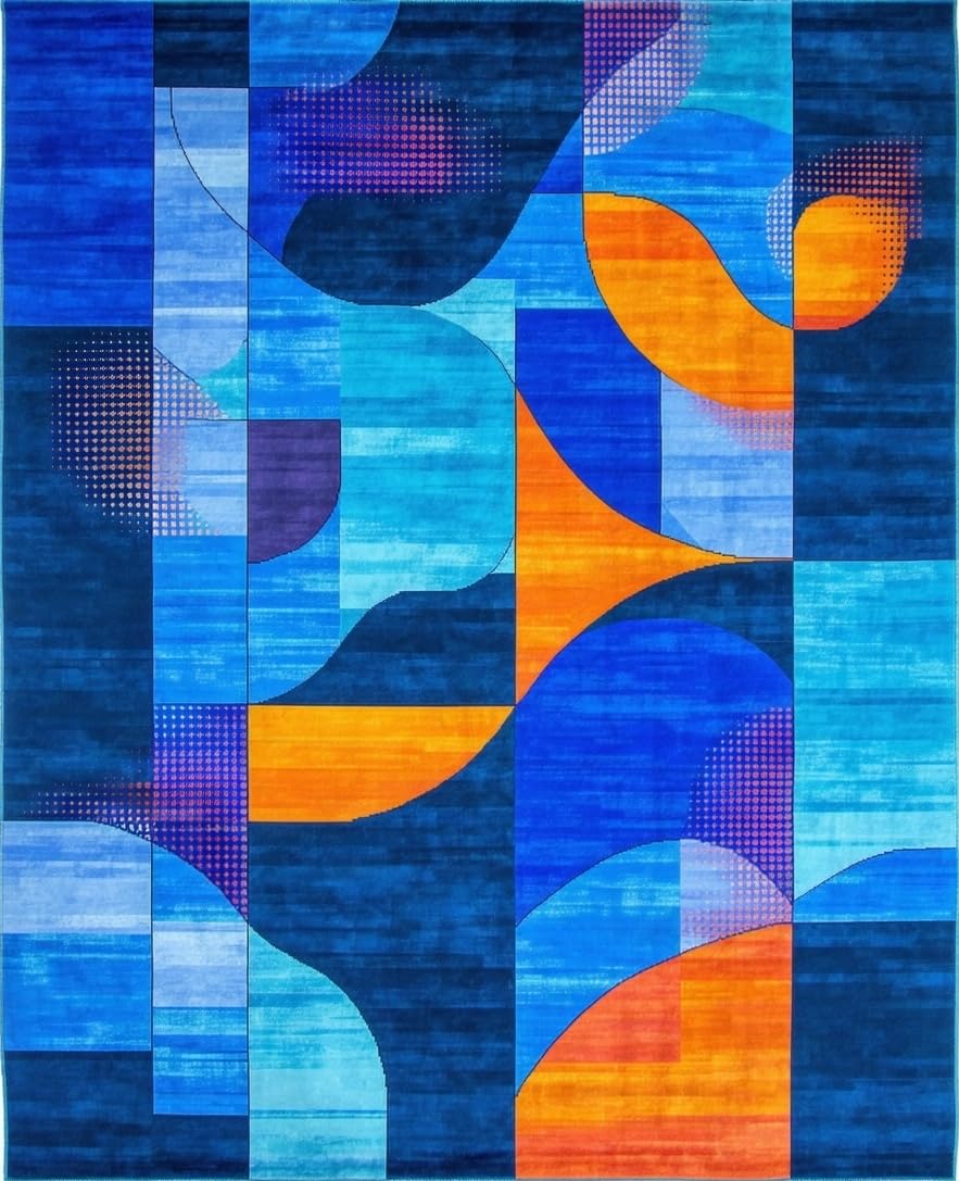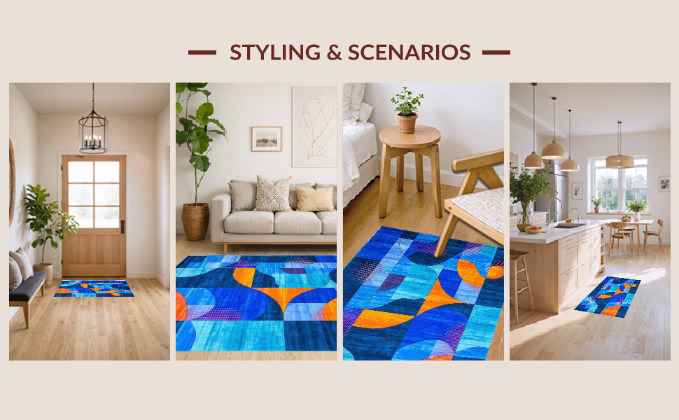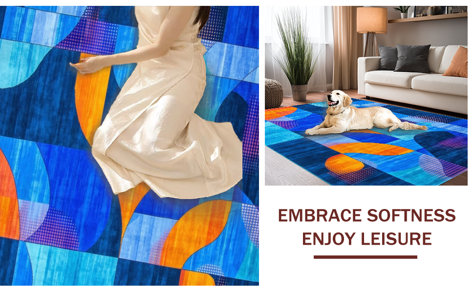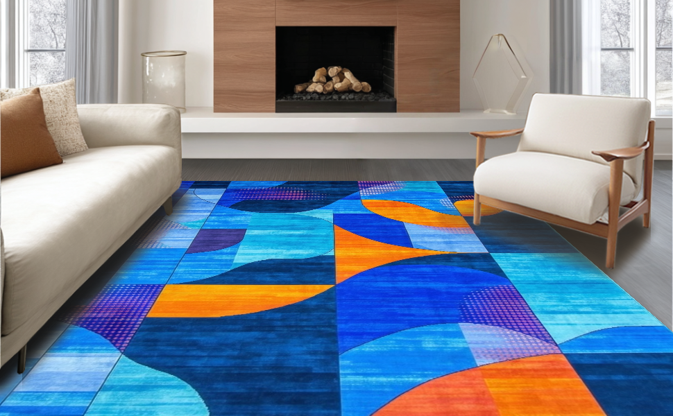 Ultra Soft Area Rug, Non Slip, Stain Resistant, Washable Area Rugs for Living Room, Bedroom, Lively Contemporary Wave Aesthetic(Blue) Overview: