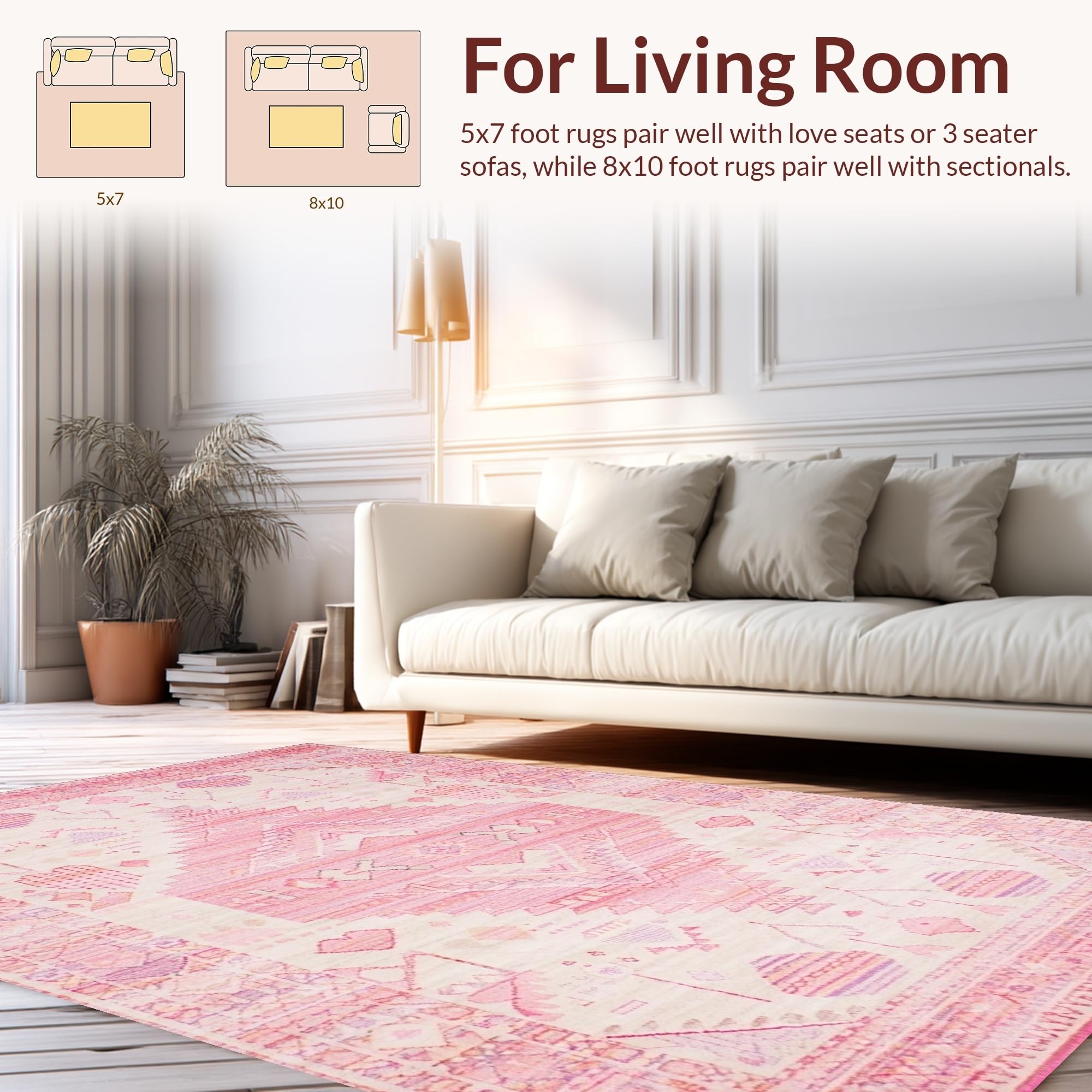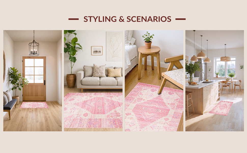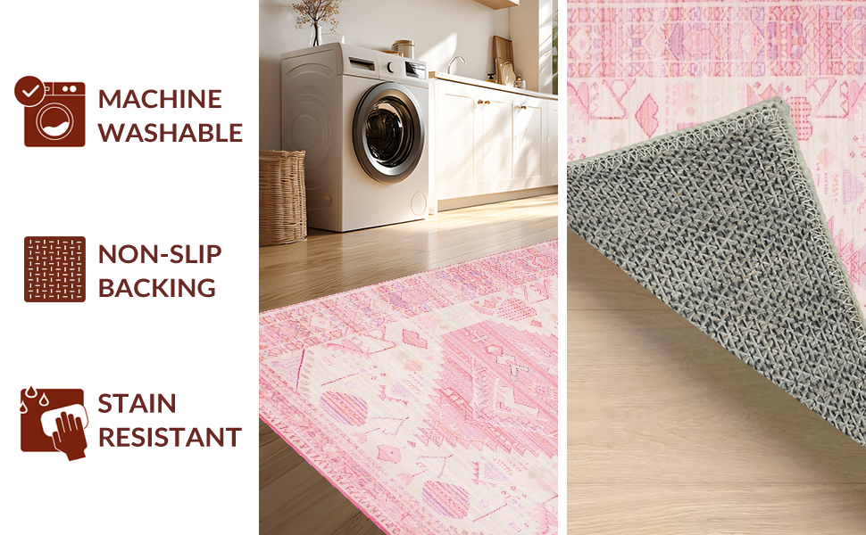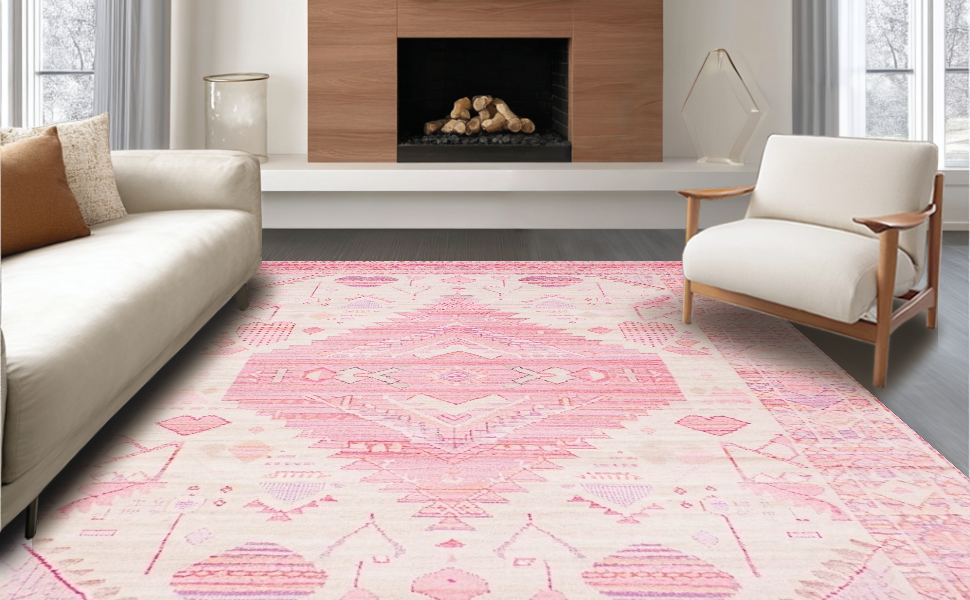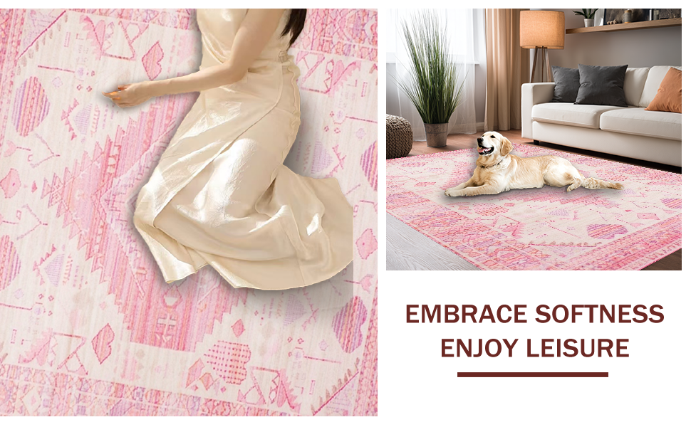 Ultra Soft Area Rug, Non Slip, Stain Resistant, Washable Area Rugs for Living Room, Bedroom, Lively Cozy Microfiber Accents(Pink) Overview: