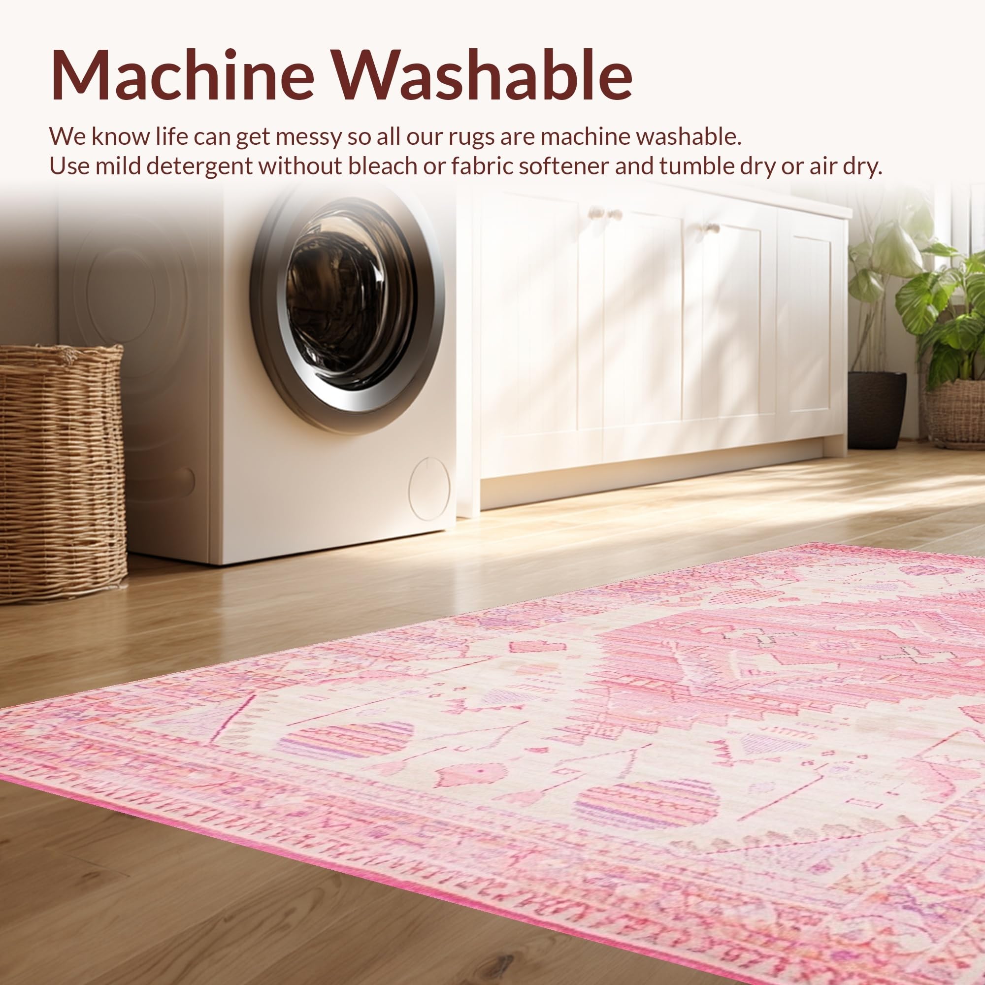 - Machine Washable: Our rugs can be easily thrown in the wash machine.