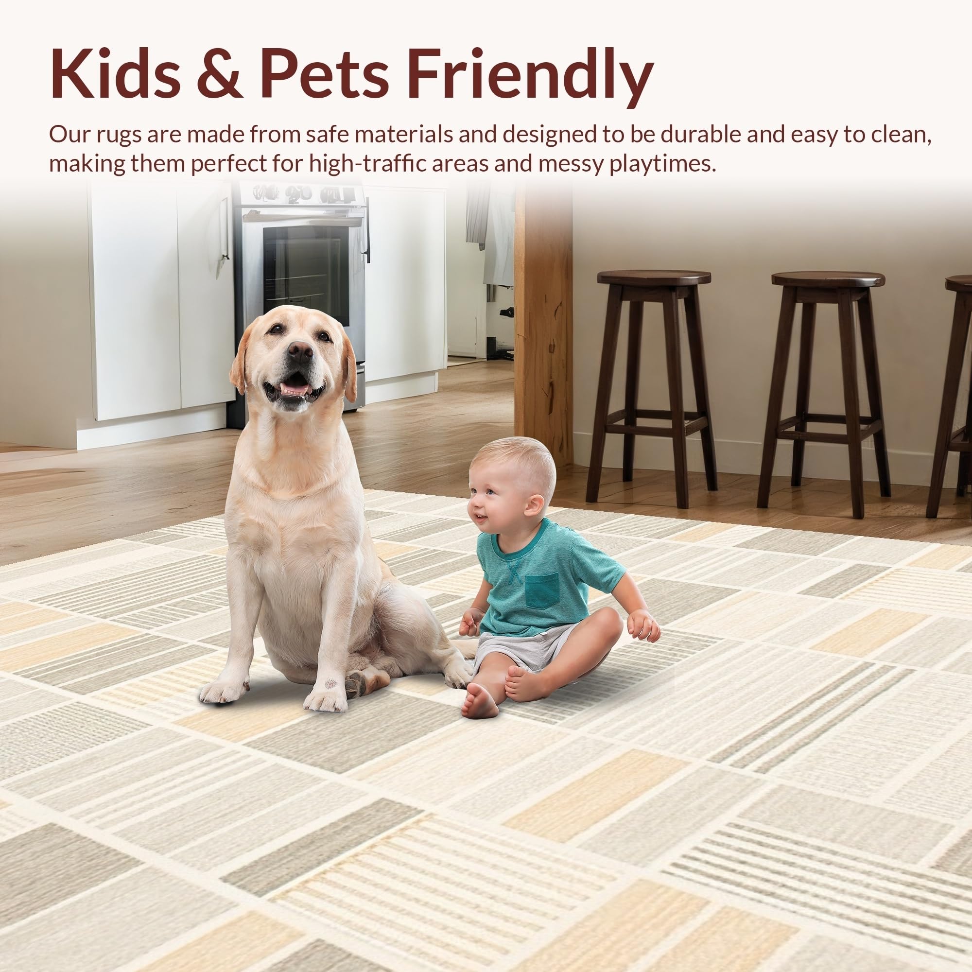 Ultra Soft Area Rug, Non Slip, Stain Resistant, Washable Area Rugs for Living Room, Bedroom, Lively Cream and Beige Contrast(Beige) Overview: