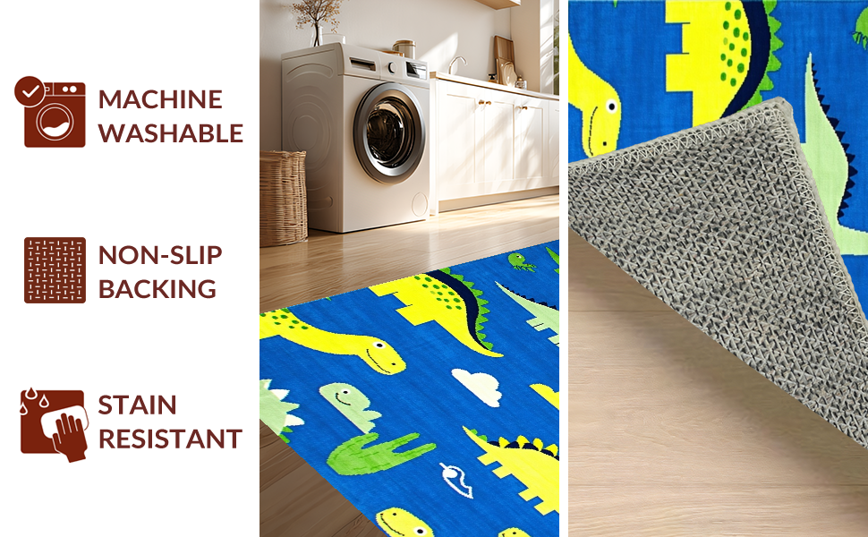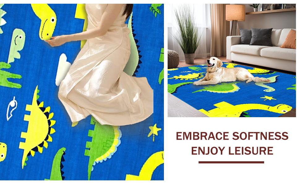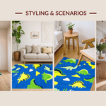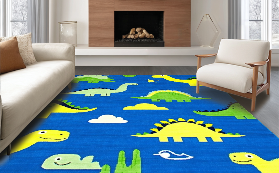 Ultra Soft Area Rug, Non Slip, Stain Resistant, Washable Area Rugs for Living Room, Bedroom, Lively Dino Print Decor(Blue) Overview: