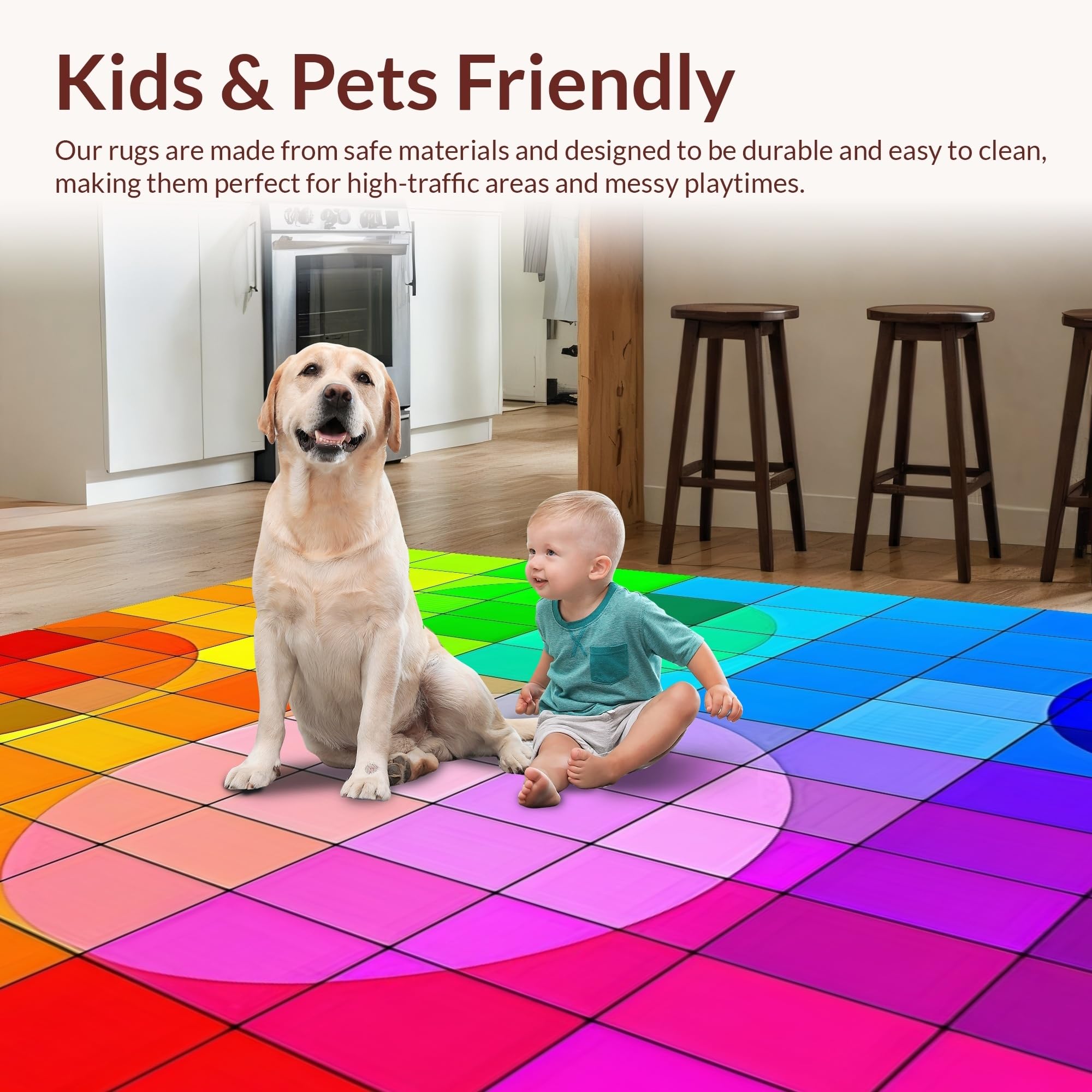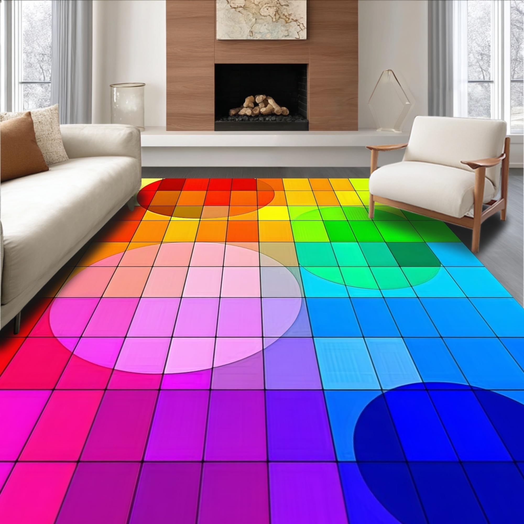 Ultra Soft Area Rug, Non Slip, Stain Resistant, Washable Area Rugs for Living Room, Bedroom, Lively Dynamic Circle Aesthetic(Red) Overview: