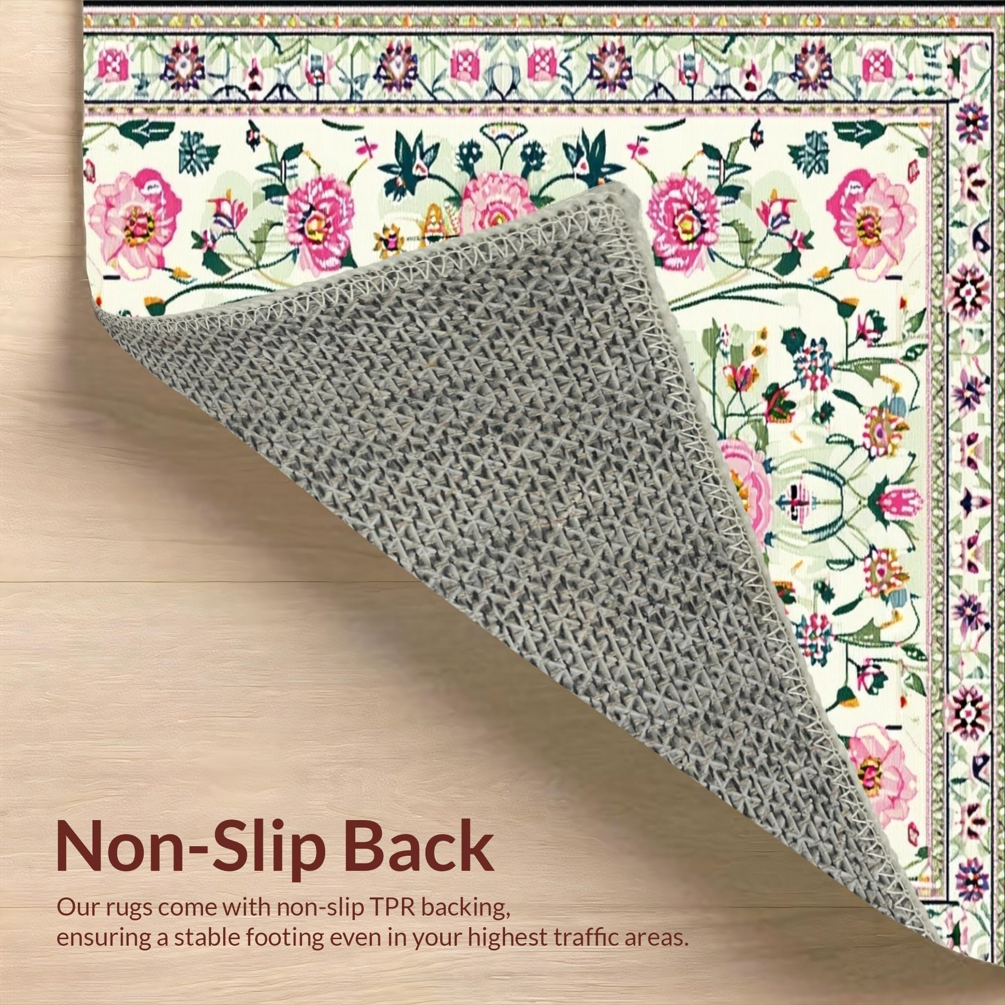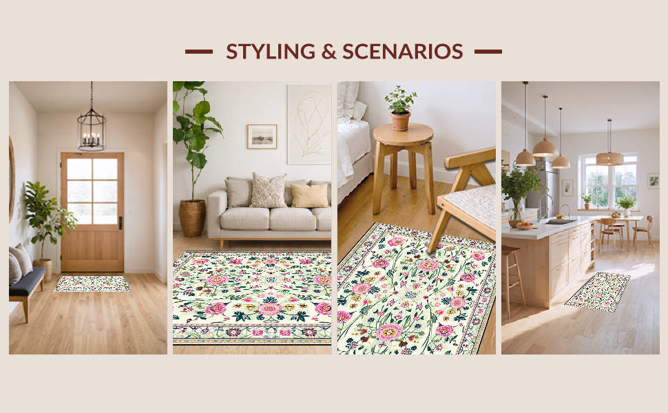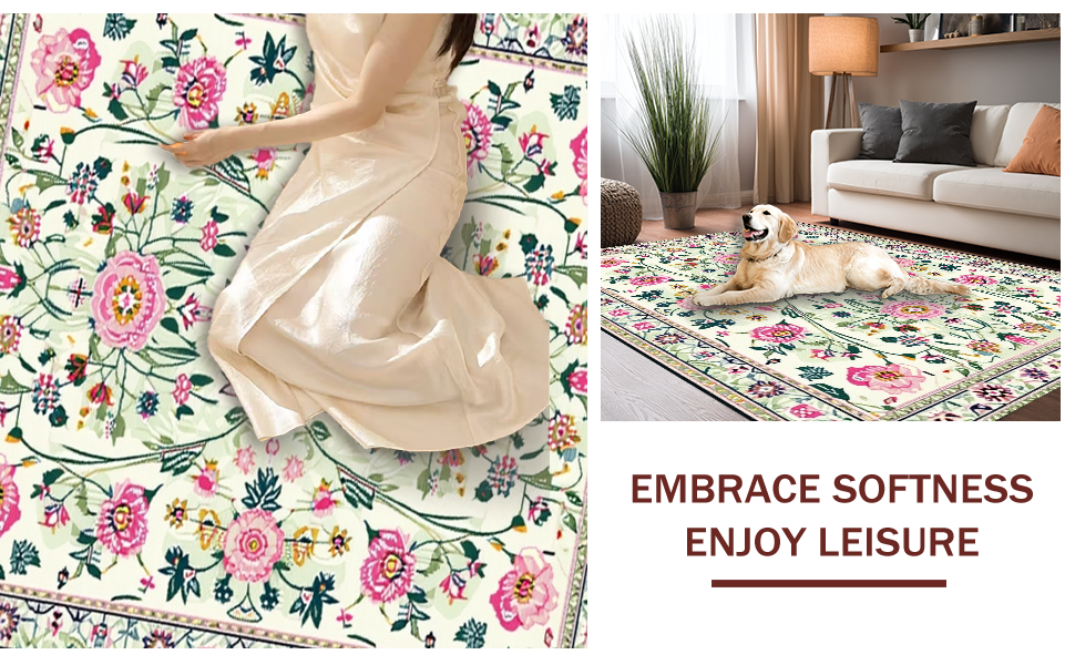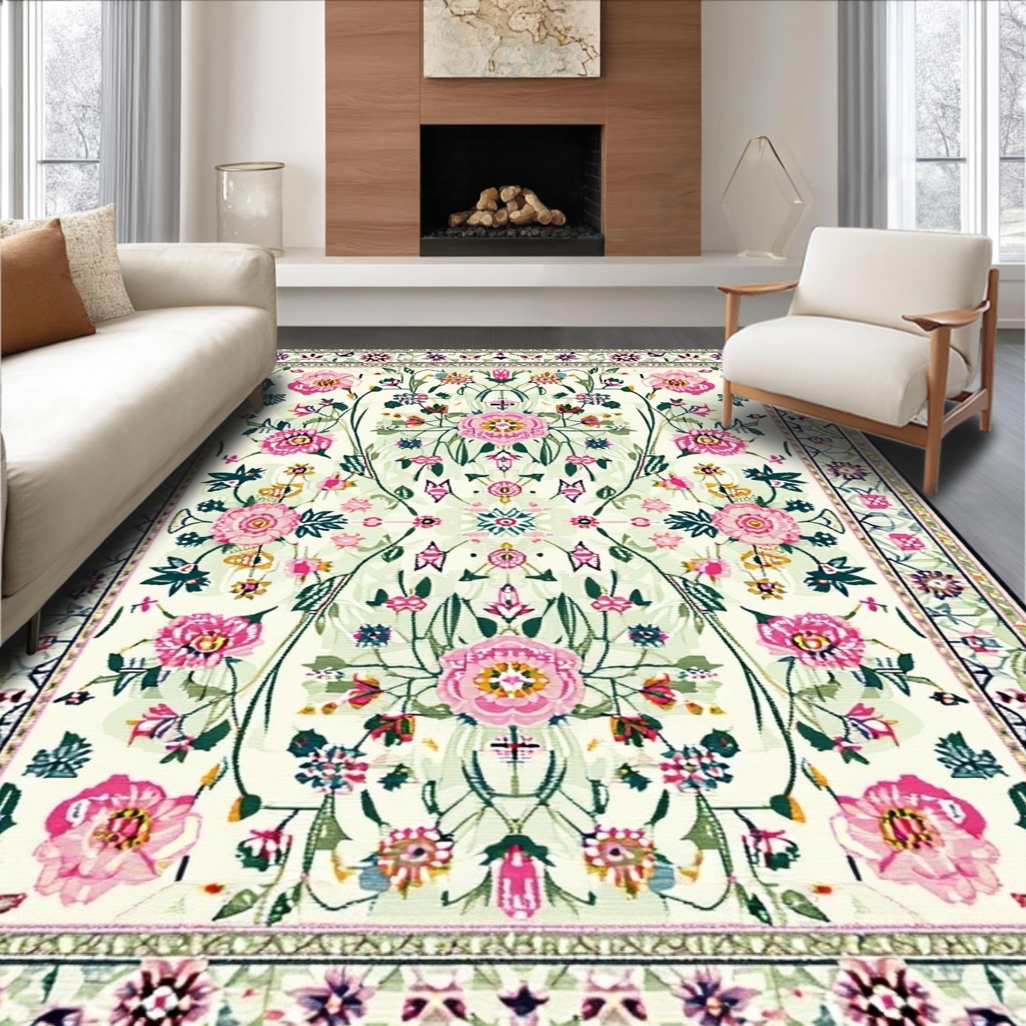 Ultra Soft Area Rug, Non Slip, Stain Resistant, Washable Area Rugs for Living Room, Bedroom, Lively Earth Tone Floral Accents(Ivory) Overview:
