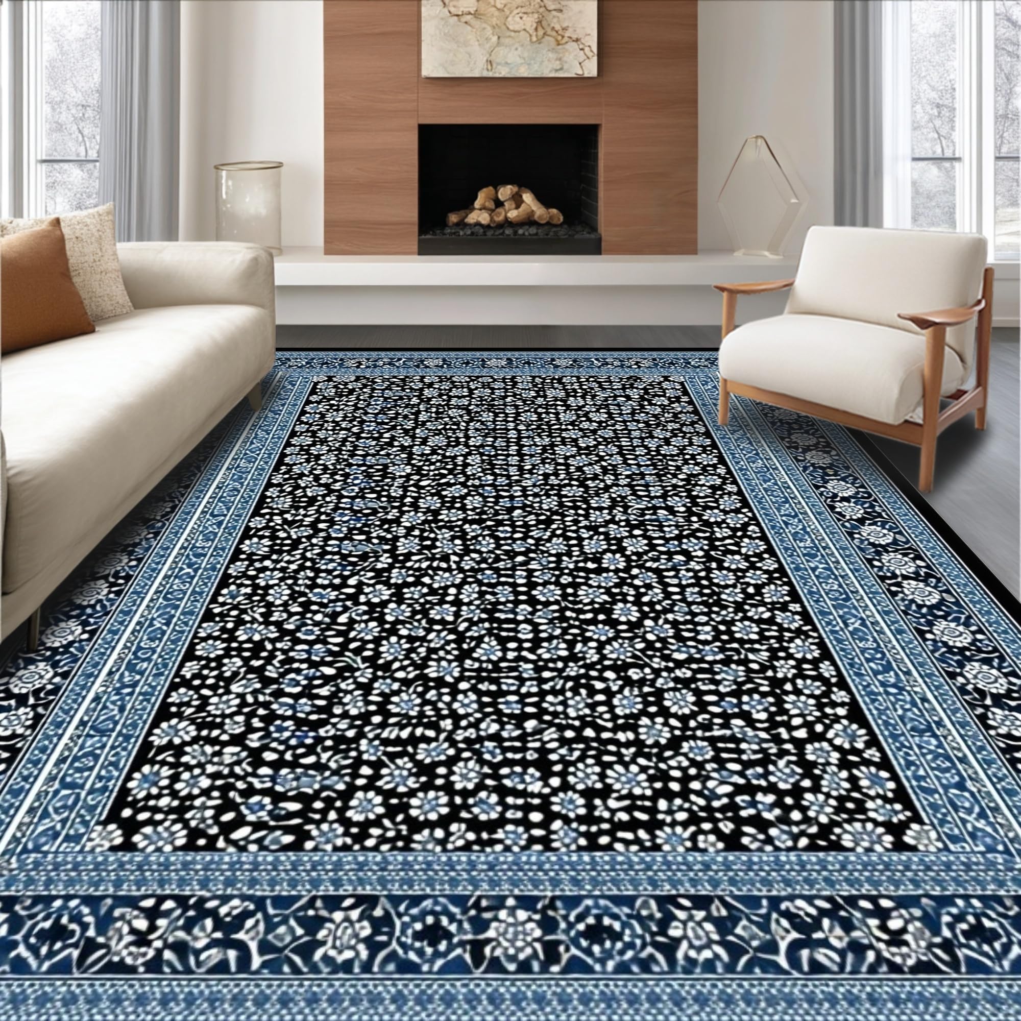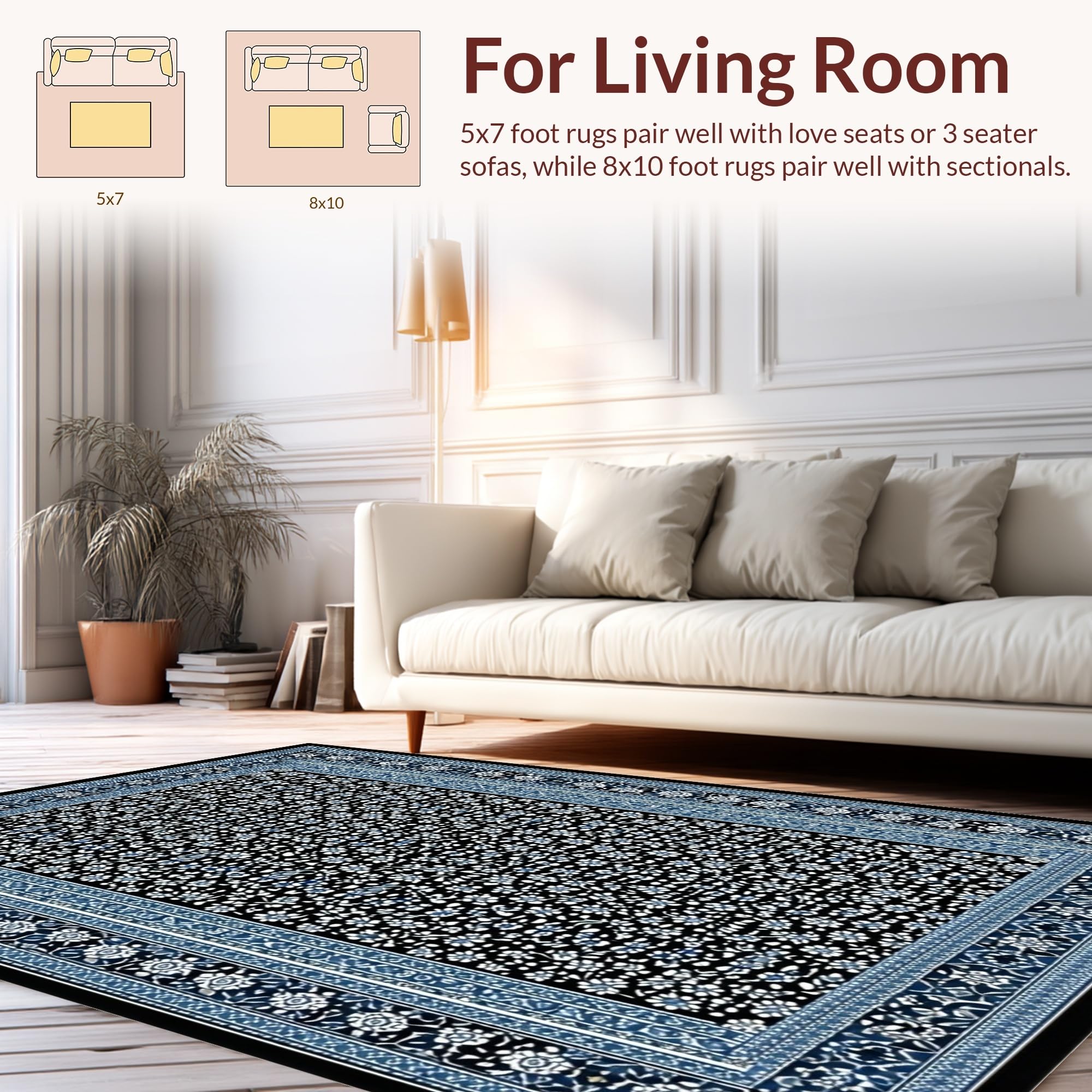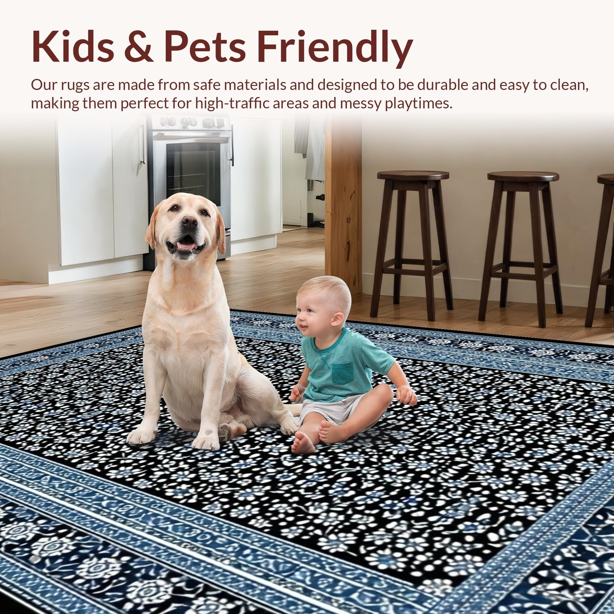 Ultra Soft Area Rug, Non Slip, Stain Resistant, Washable Area Rugs for Living Room, Bedroom, Lively Earth Tone Patterned Piece(Black) Overview: