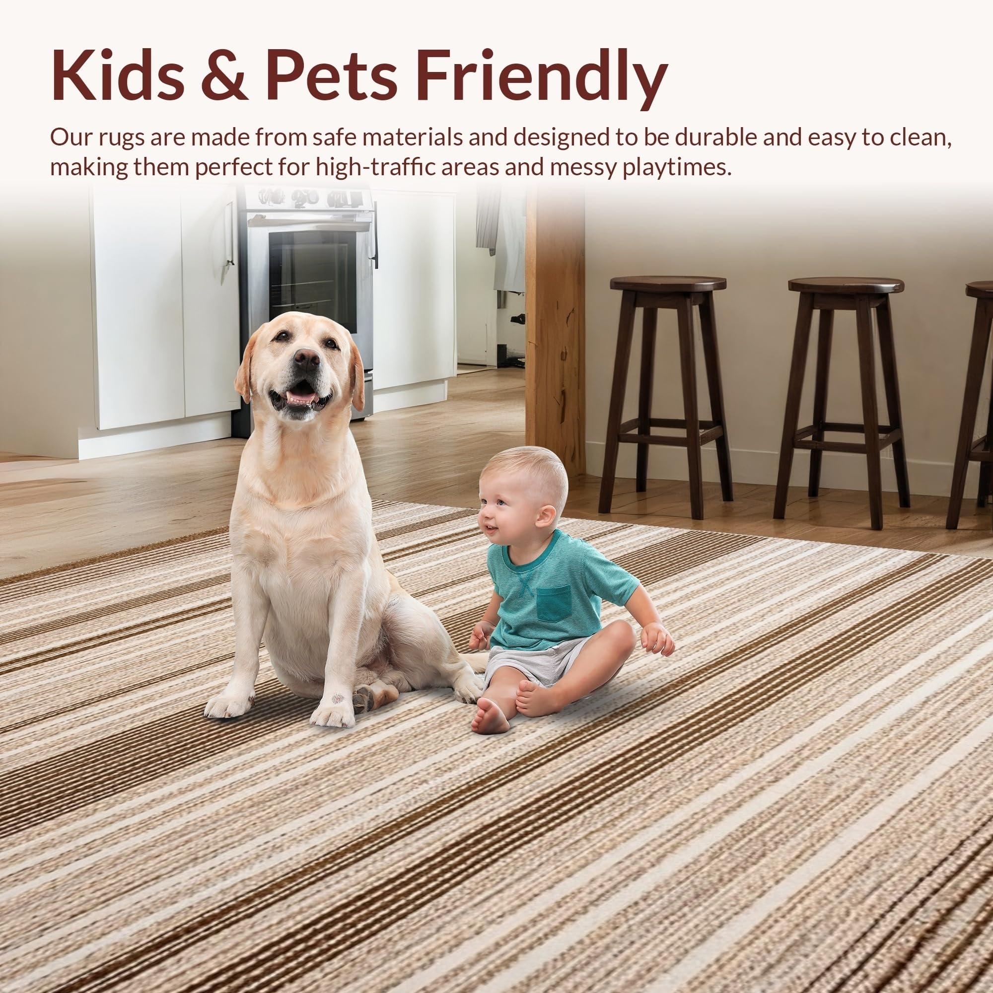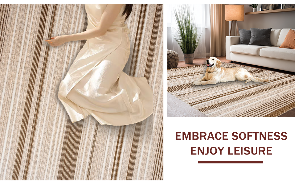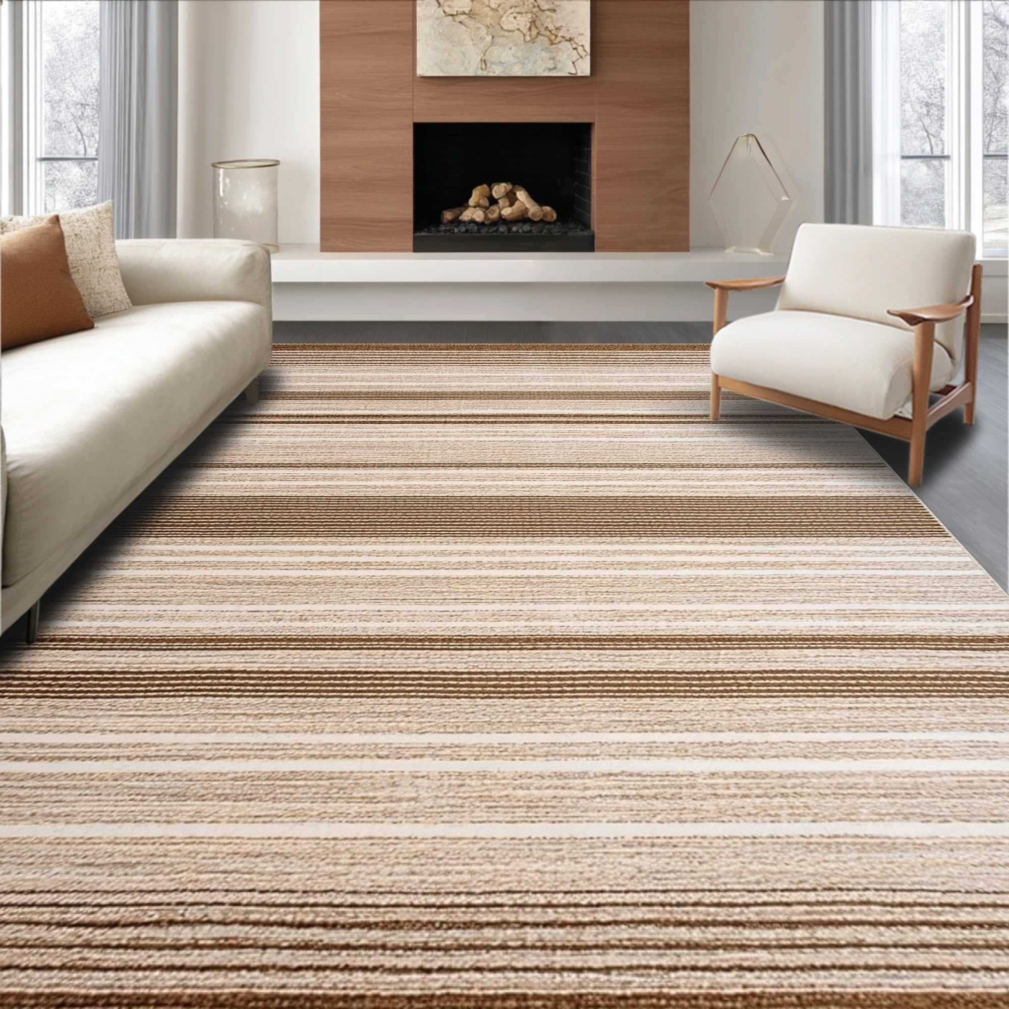 Ultra Soft Area Rug, Non Slip, Stain Resistant, Washable Area Rugs for Living Room, Bedroom, Lively Earth Tones with Layers(Beige) Overview: