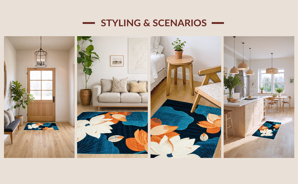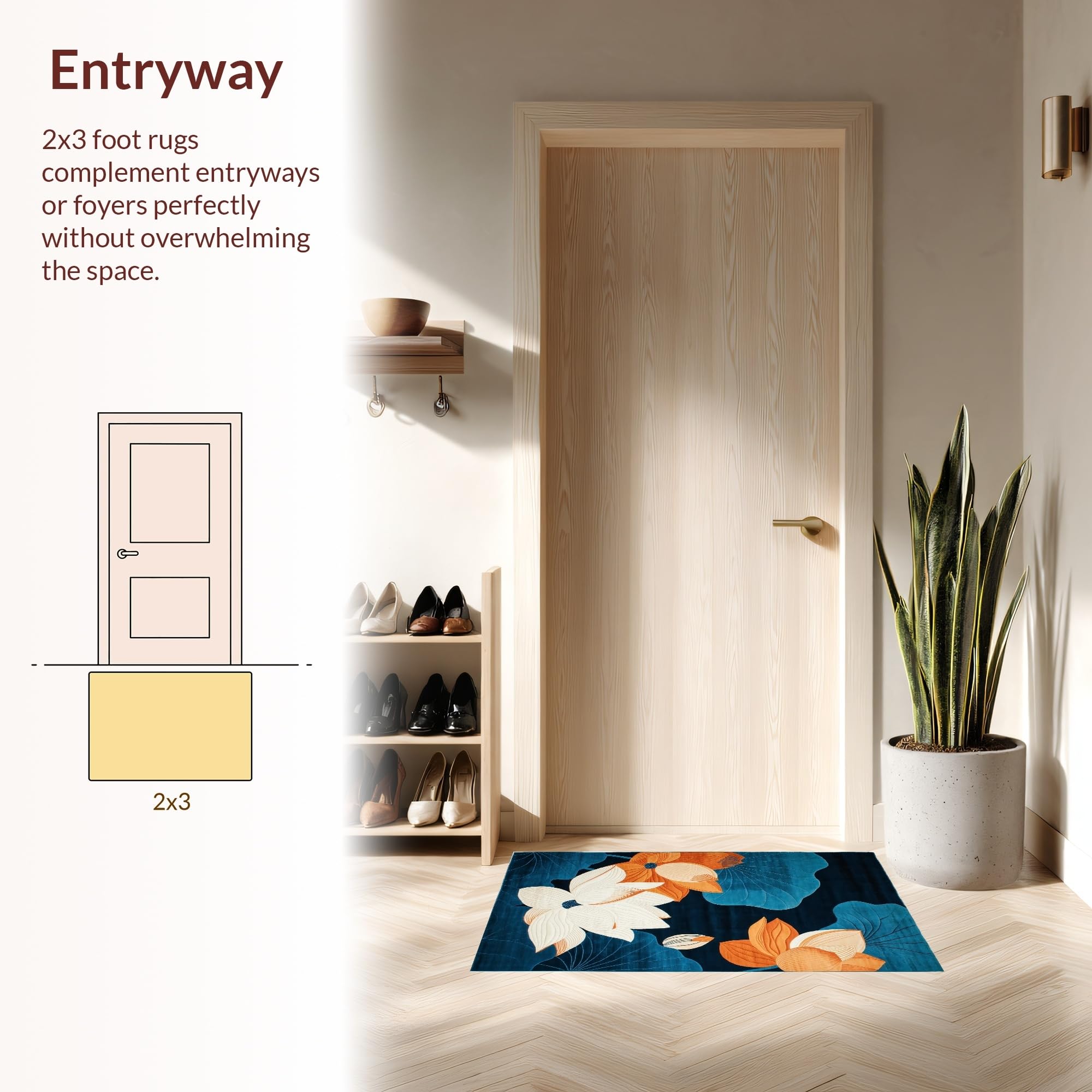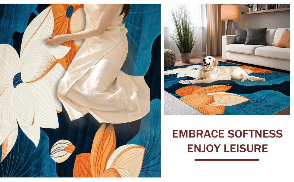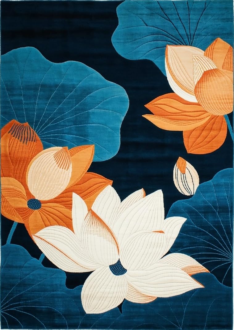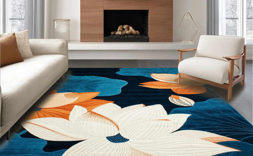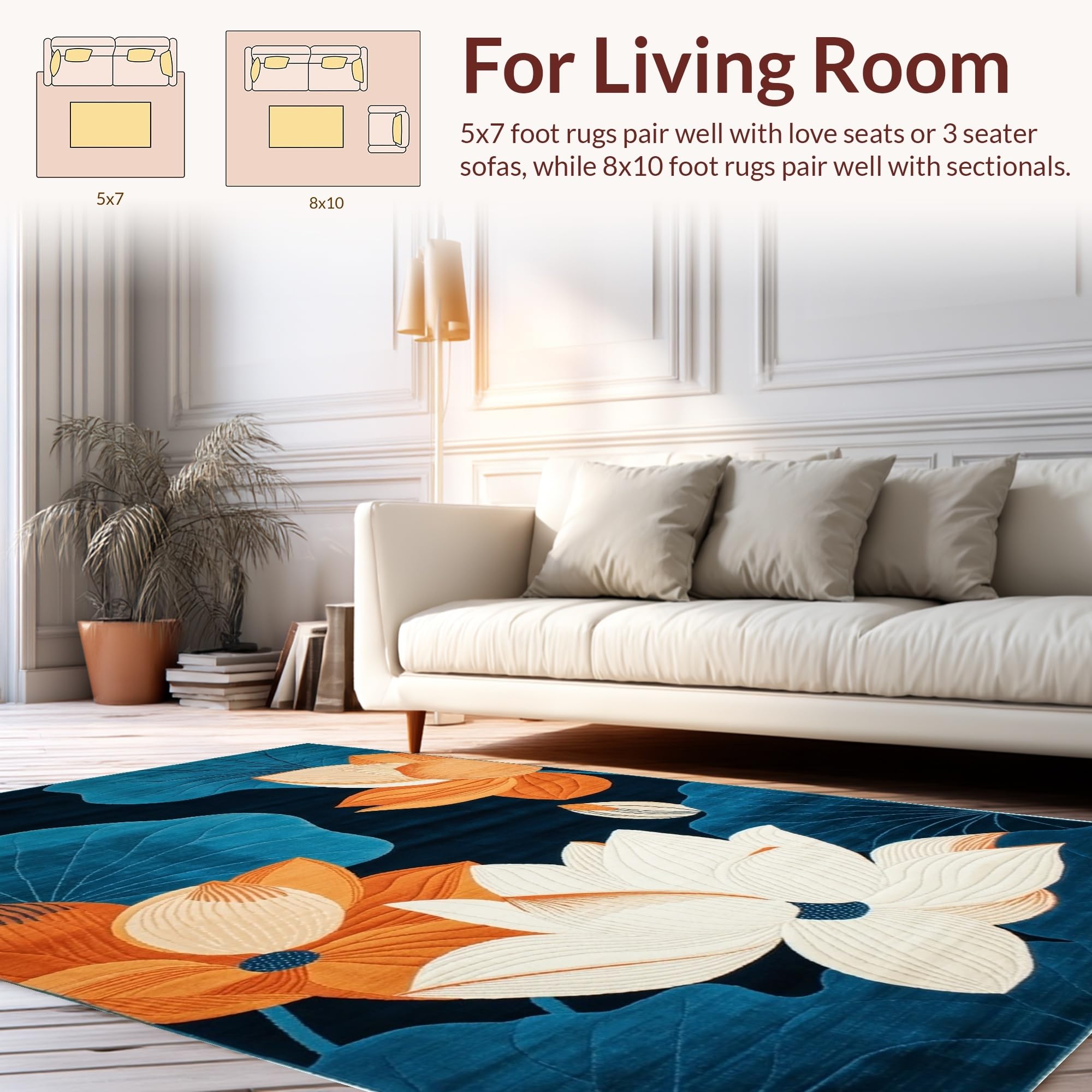 Ultra Soft Area Rug, Non Slip, Stain Resistant, Washable Area Rugs for Living Room, Bedroom, Lively Exotic Floral Aesthetic(Blue) Overview: