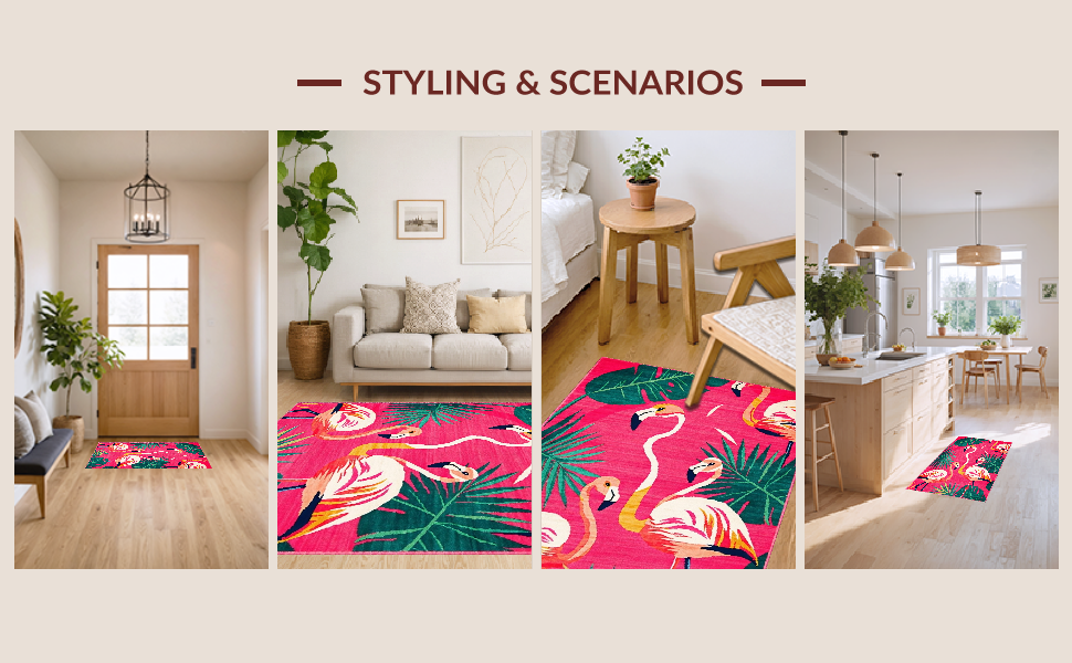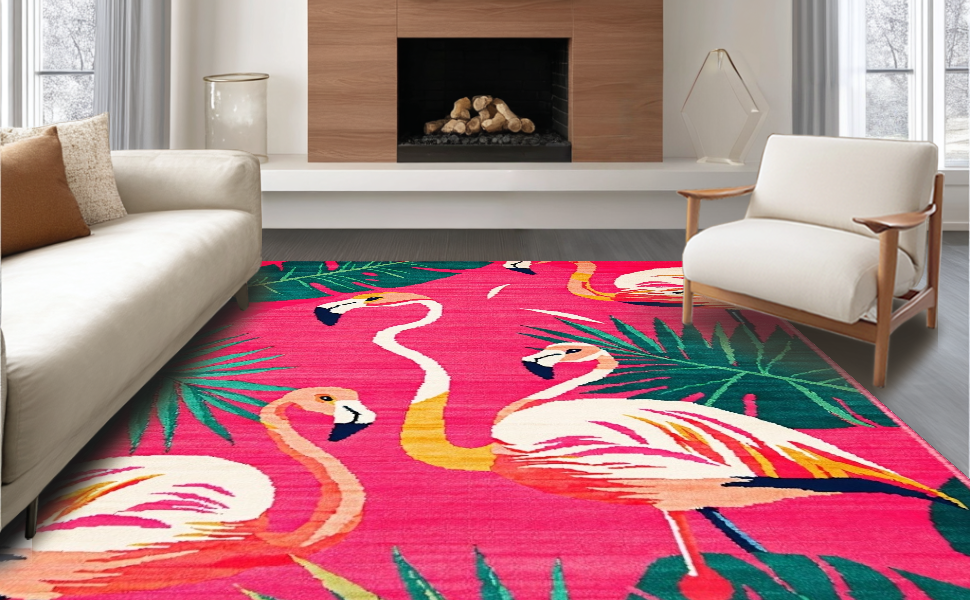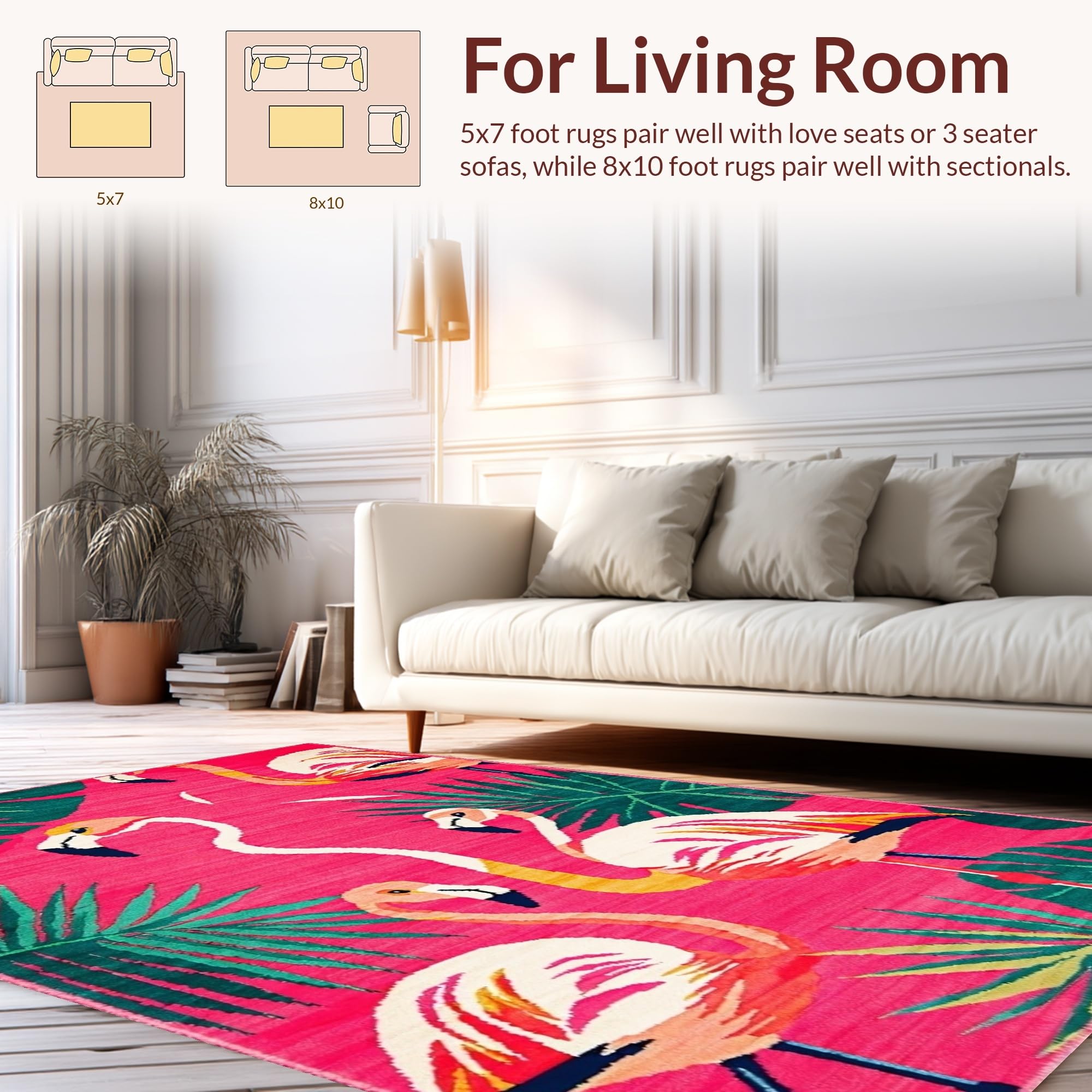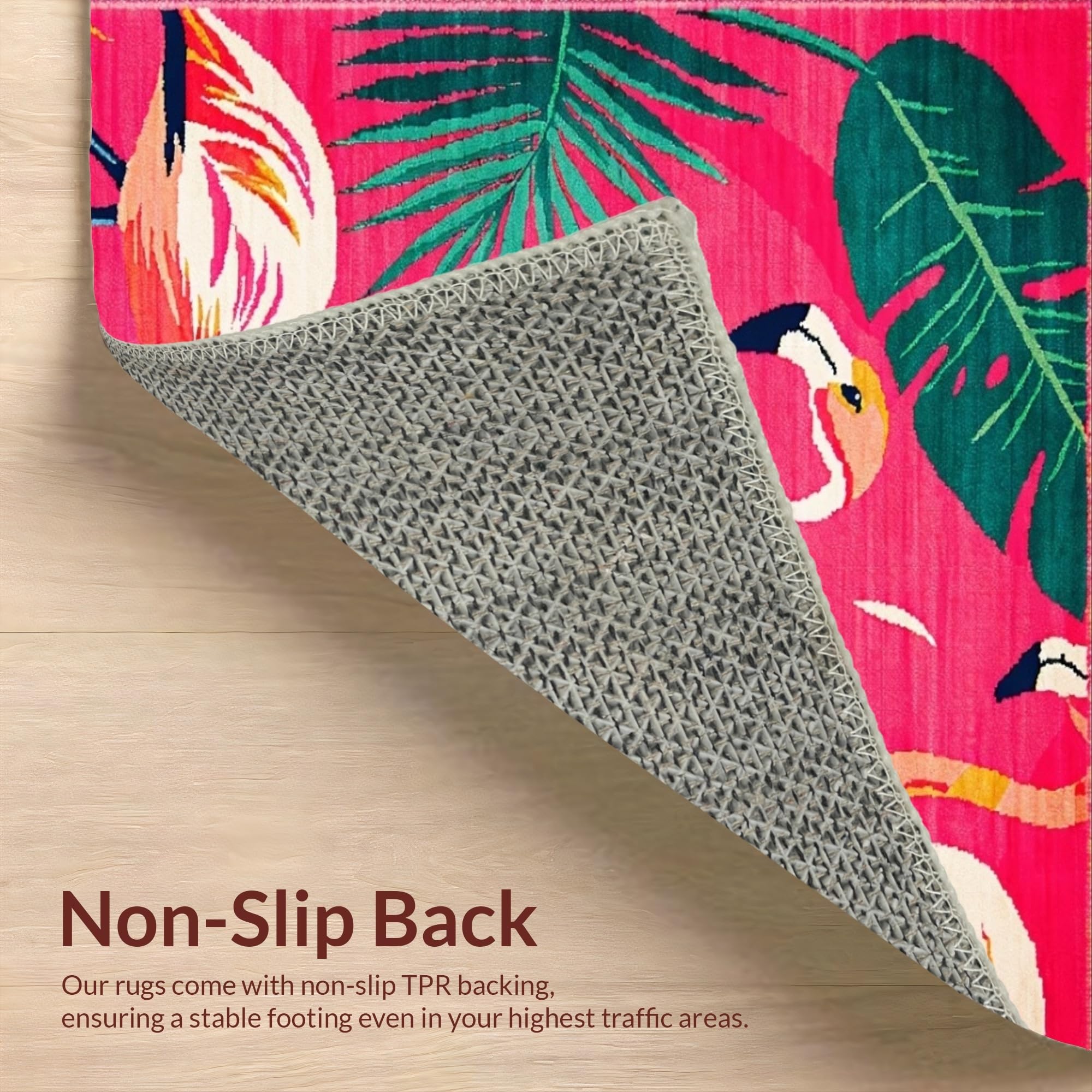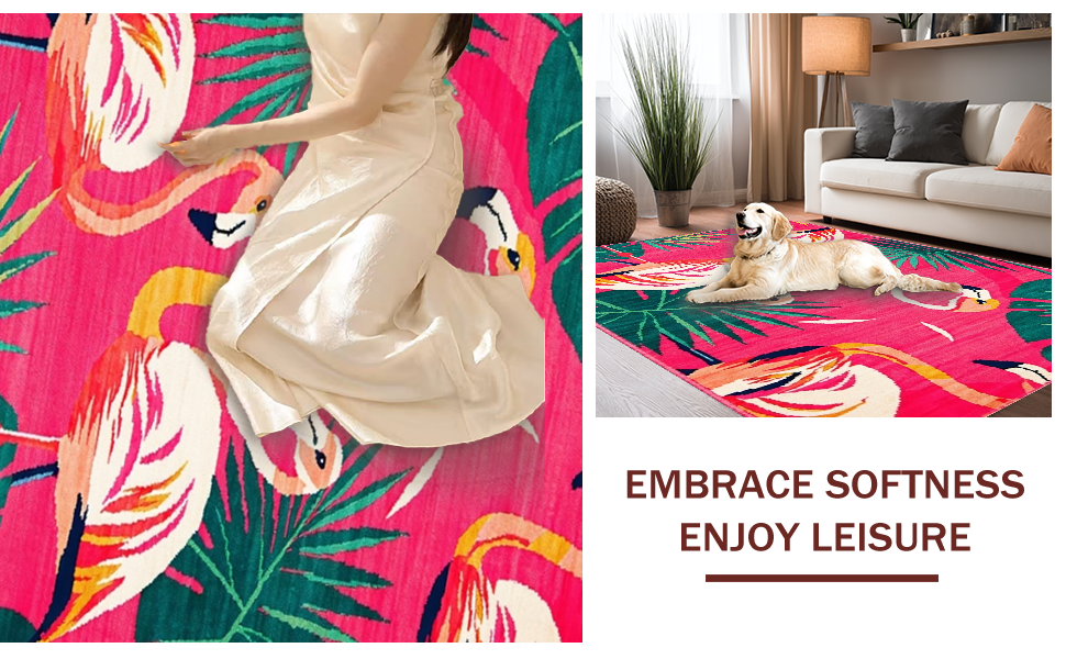 Ultra Soft Area Rug, Non Slip, Stain Resistant, Washable Area Rugs for Living Room, Bedroom, Lively Floral Duo Decorative Design(Pink) Overview:
