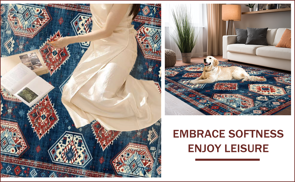 Ultra Soft Area Rug, Non Slip, Stain Resistant, Washable Area Rugs for Living Room, Bedroom, Lively Geometric Contemporary Flair(Blue) Overview:
