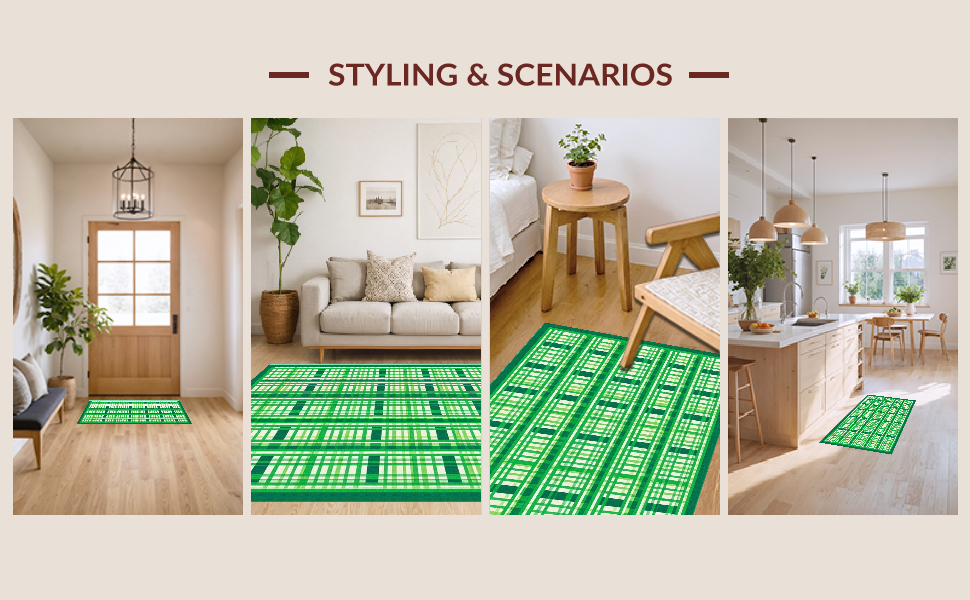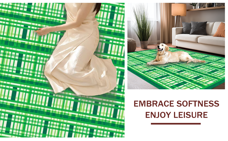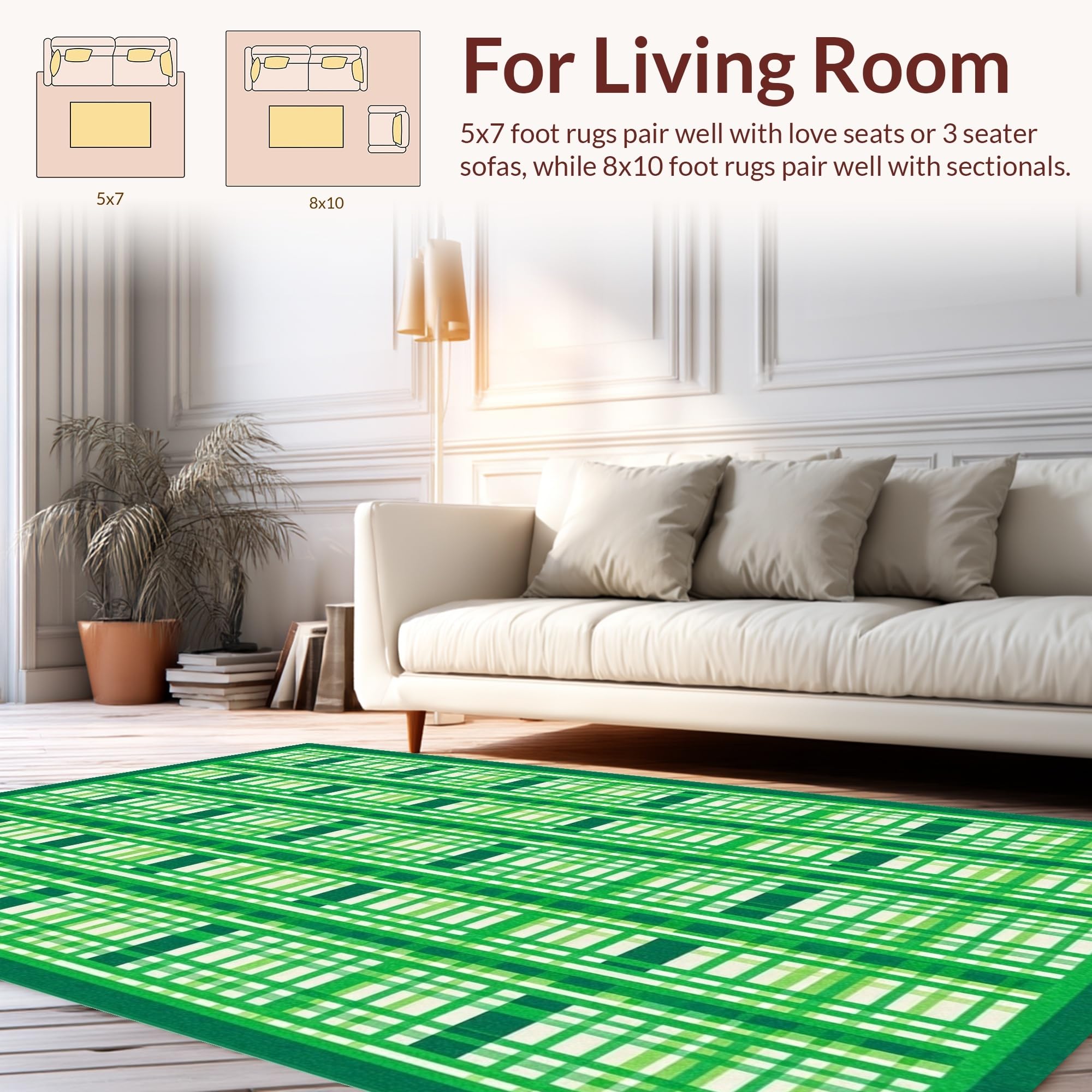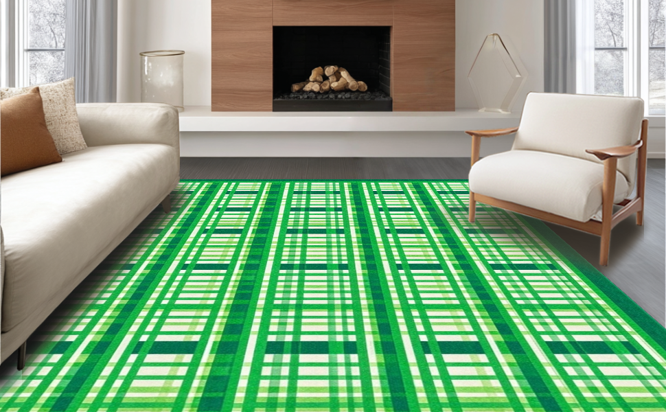 Ultra Soft Area Rug, Non Slip, Stain Resistant, Washable Area Rugs for Living Room, Bedroom, Lively Geometric Green Tiled Artistry(Green) Overview: