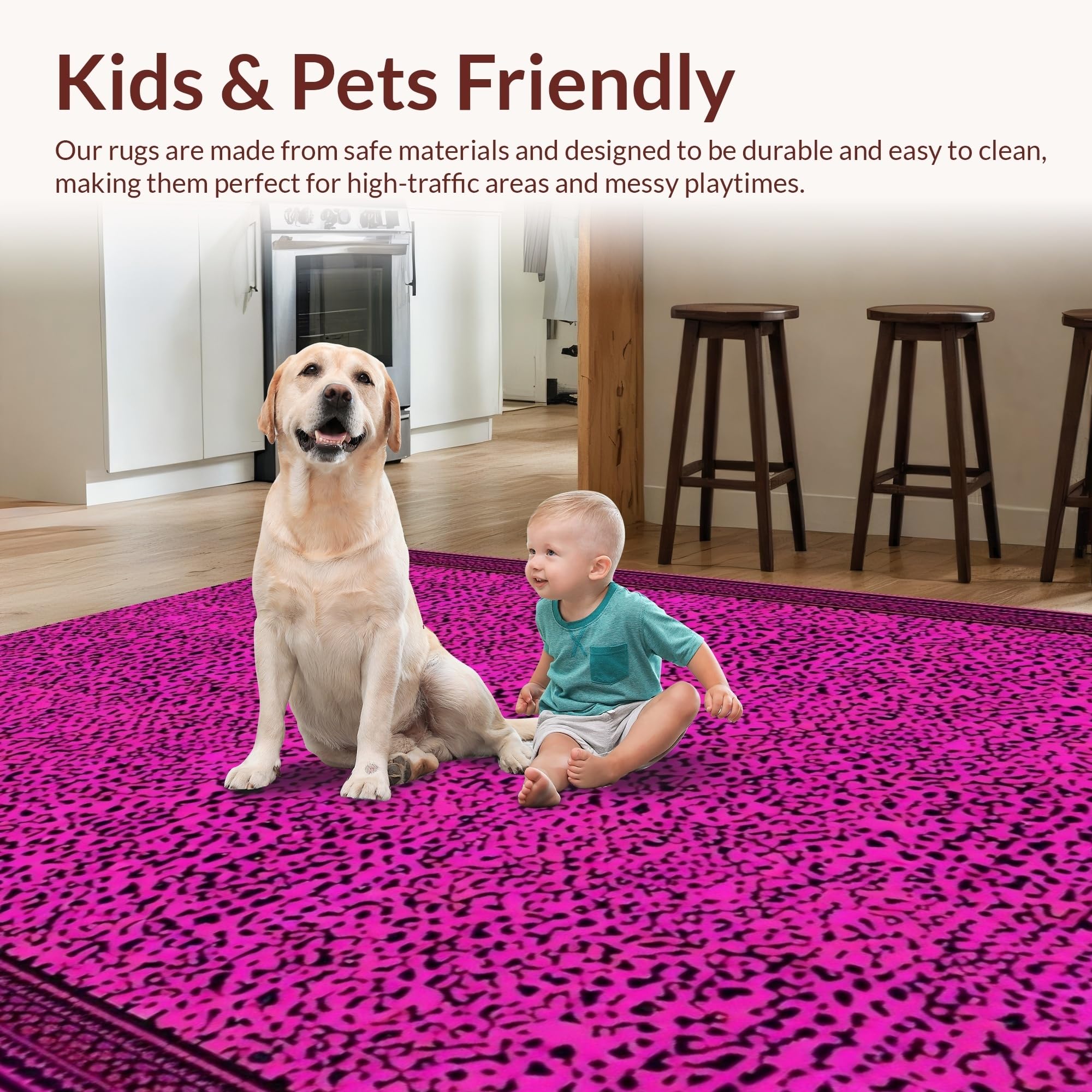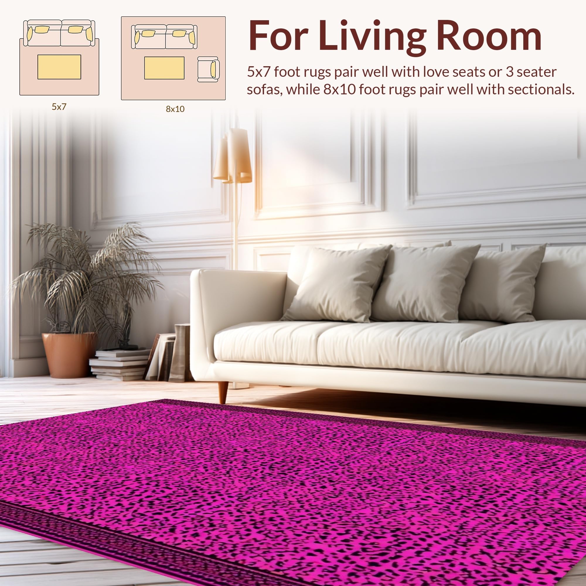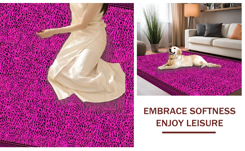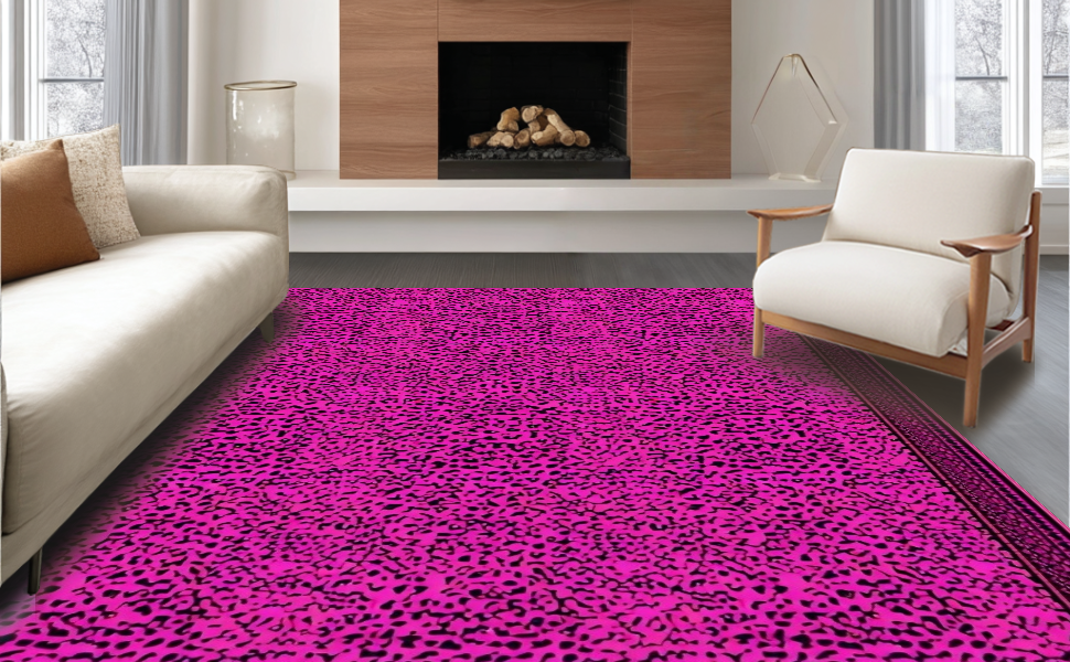 Ultra Soft Area Rug, Non Slip, Stain Resistant, Washable Area Rugs for Living Room, Bedroom, Lively Graphic Leopard Print(Pink) Overview: