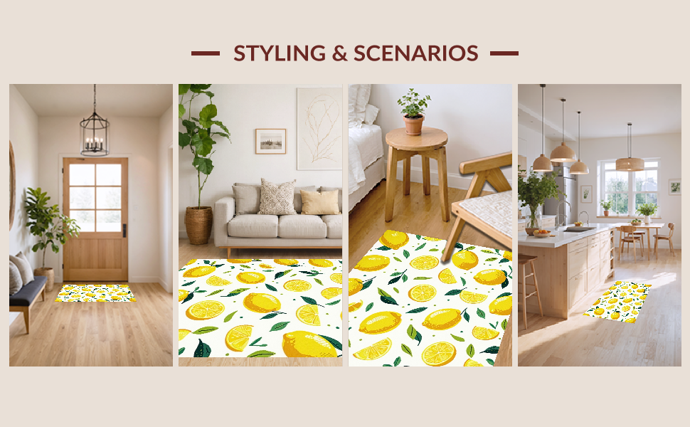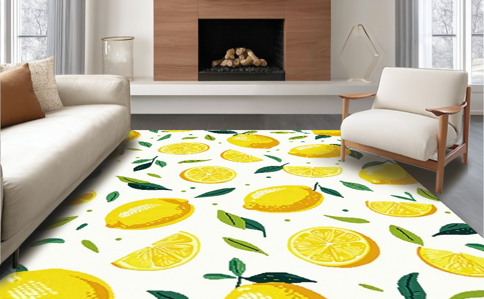 Ultra Soft Area Rug, Non Slip, Stain Resistant, Washable Area Rugs for Living Room, Bedroom, Lively Green Botanical Design(Yellow) Overview: