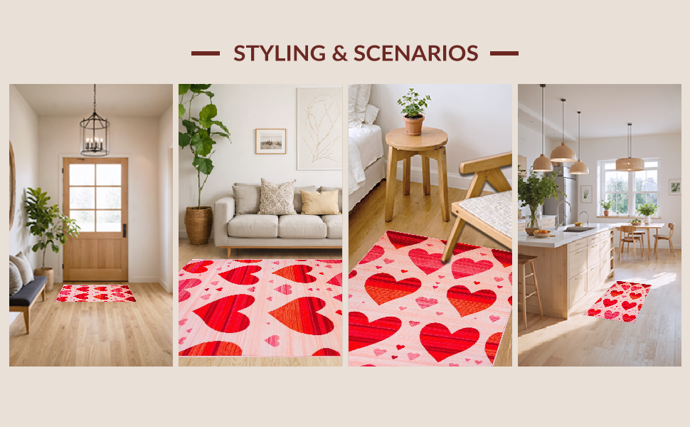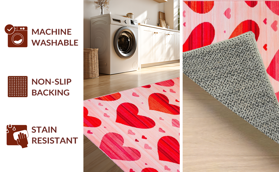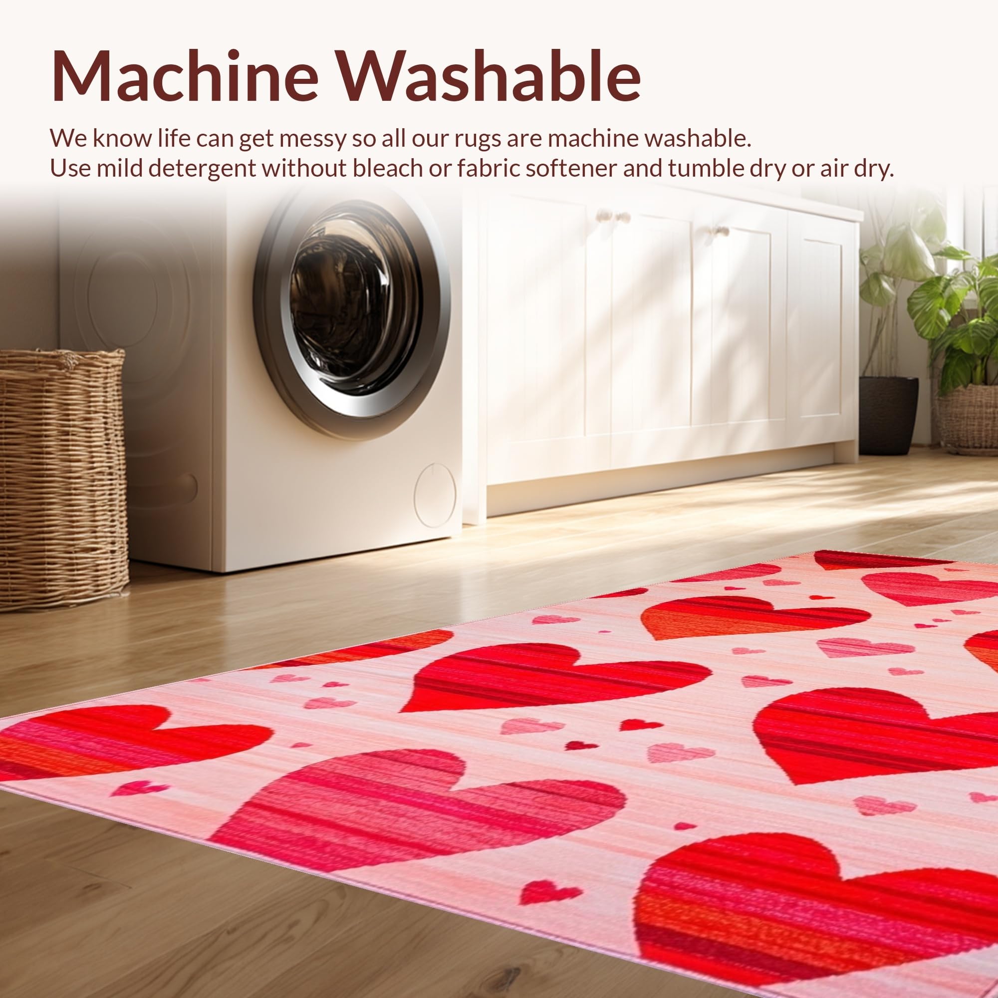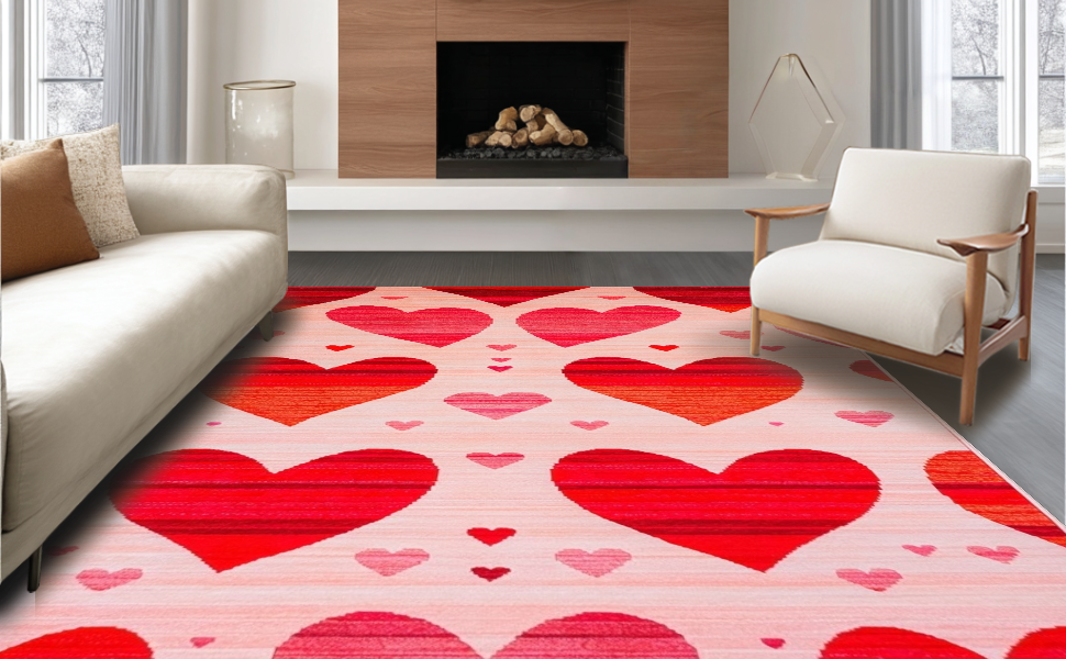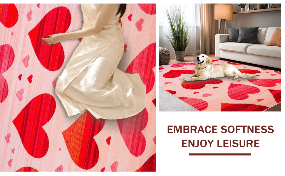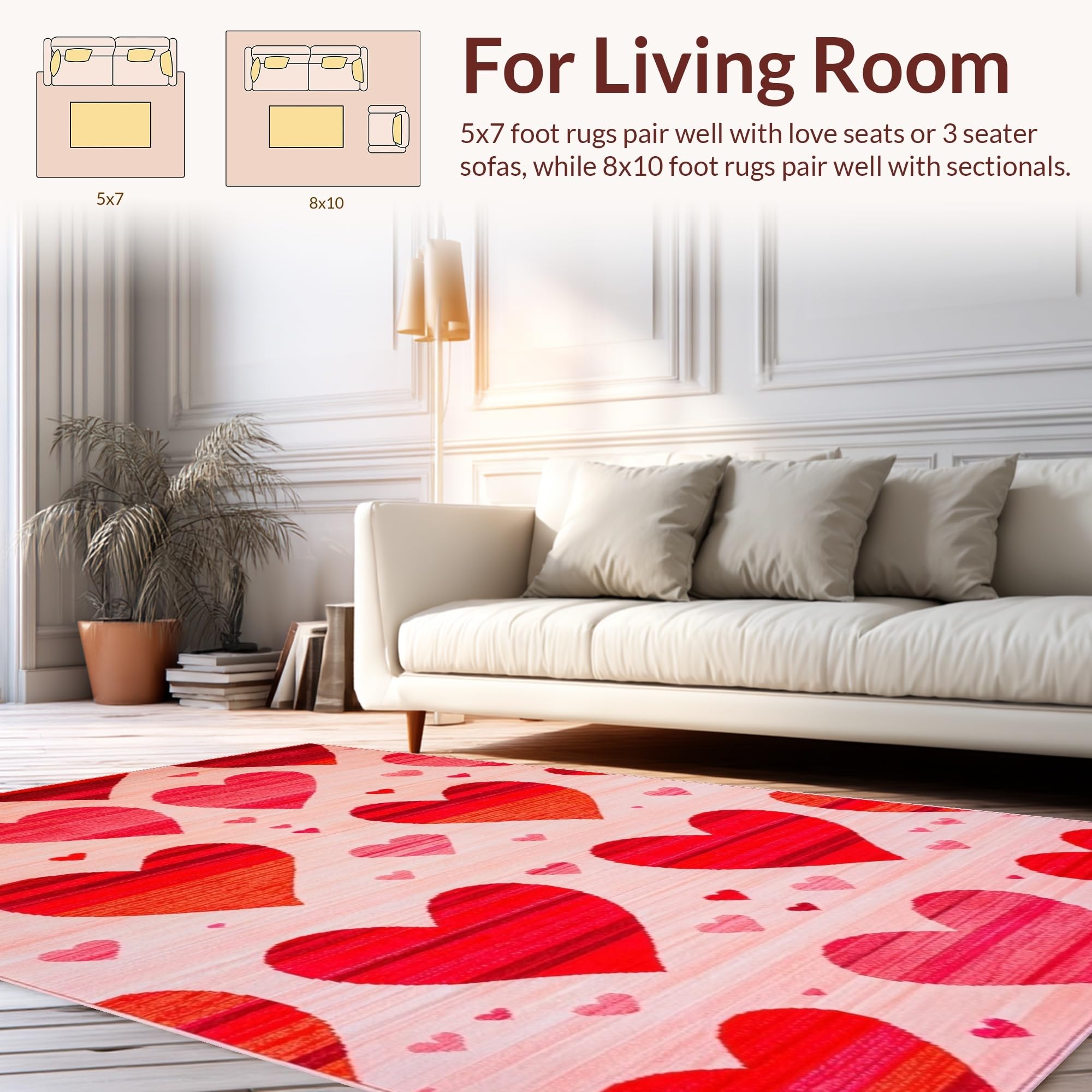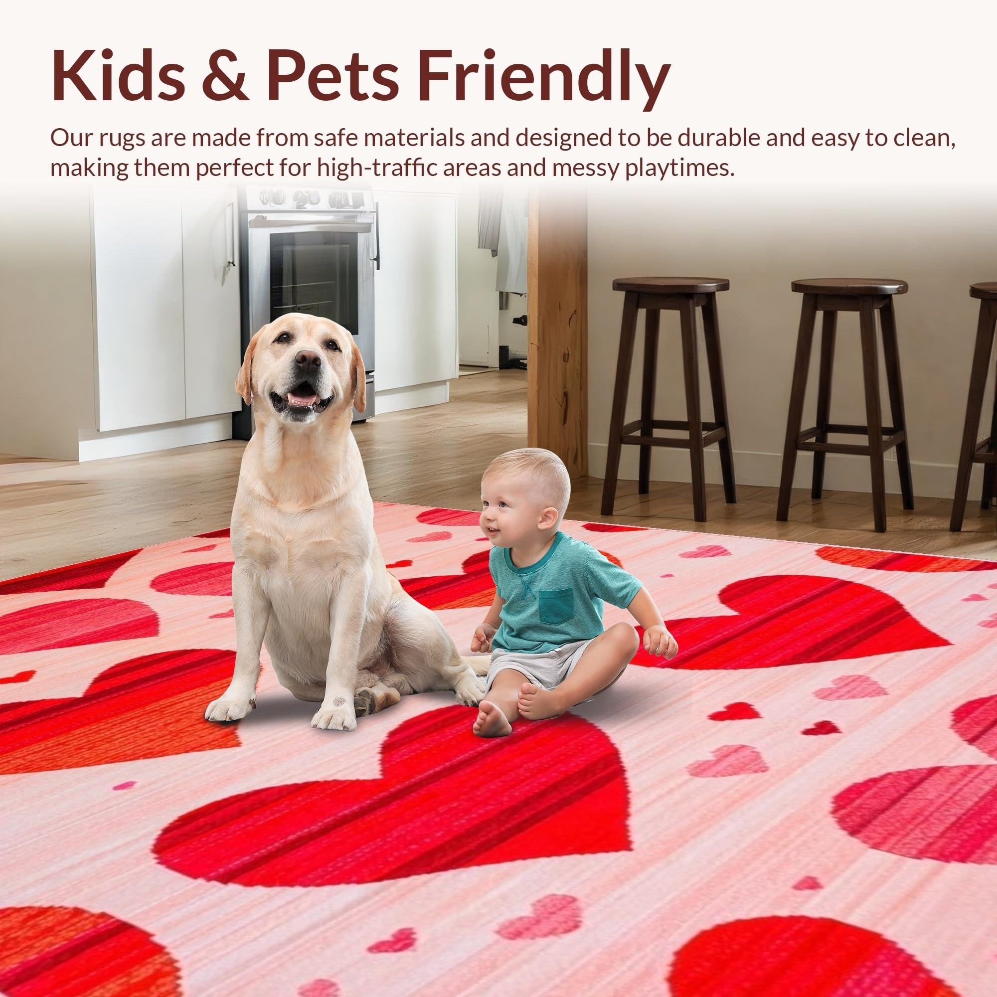 Ultra Soft Area Rug, Non Slip, Stain Resistant, Washable Area Rugs for Living Room, Bedroom, Lively Heartfelt Rustic Appeal(Red) Overview: