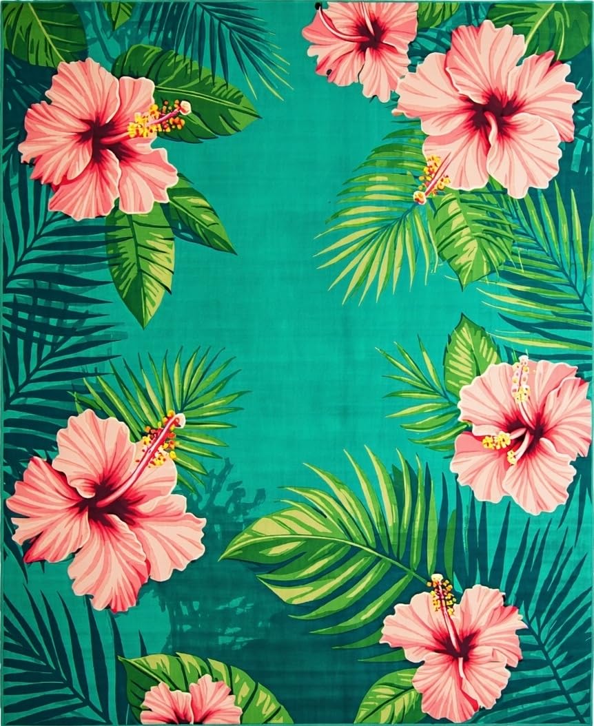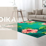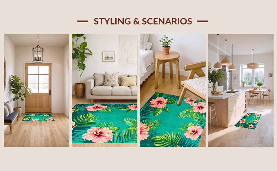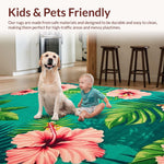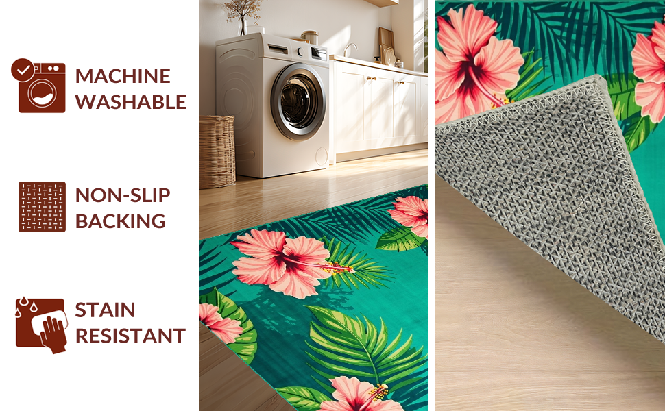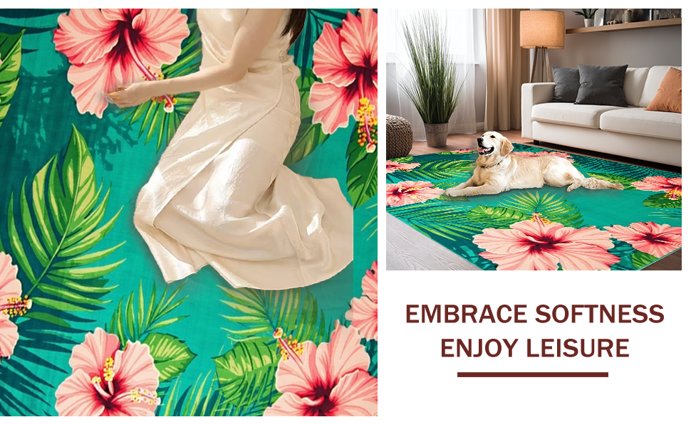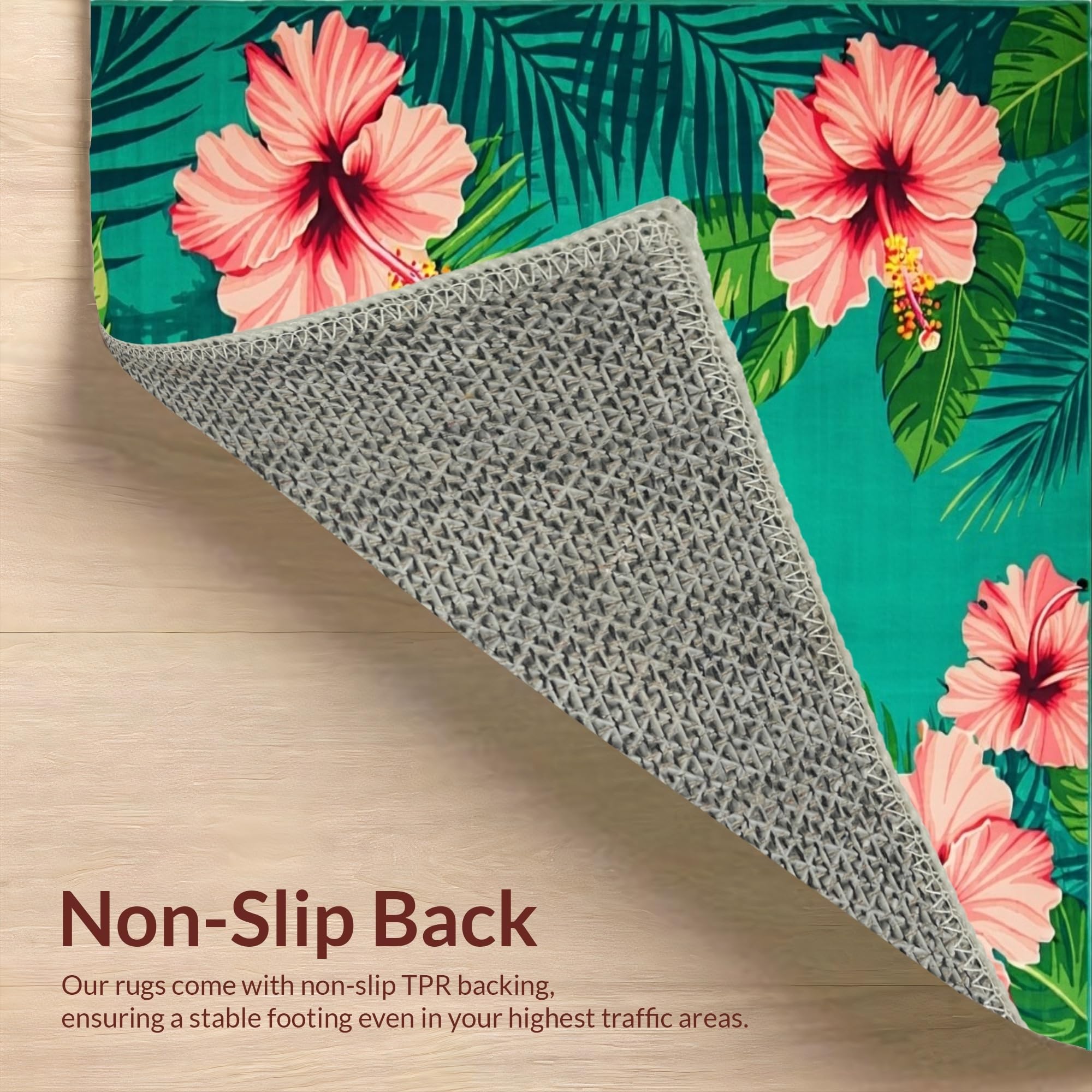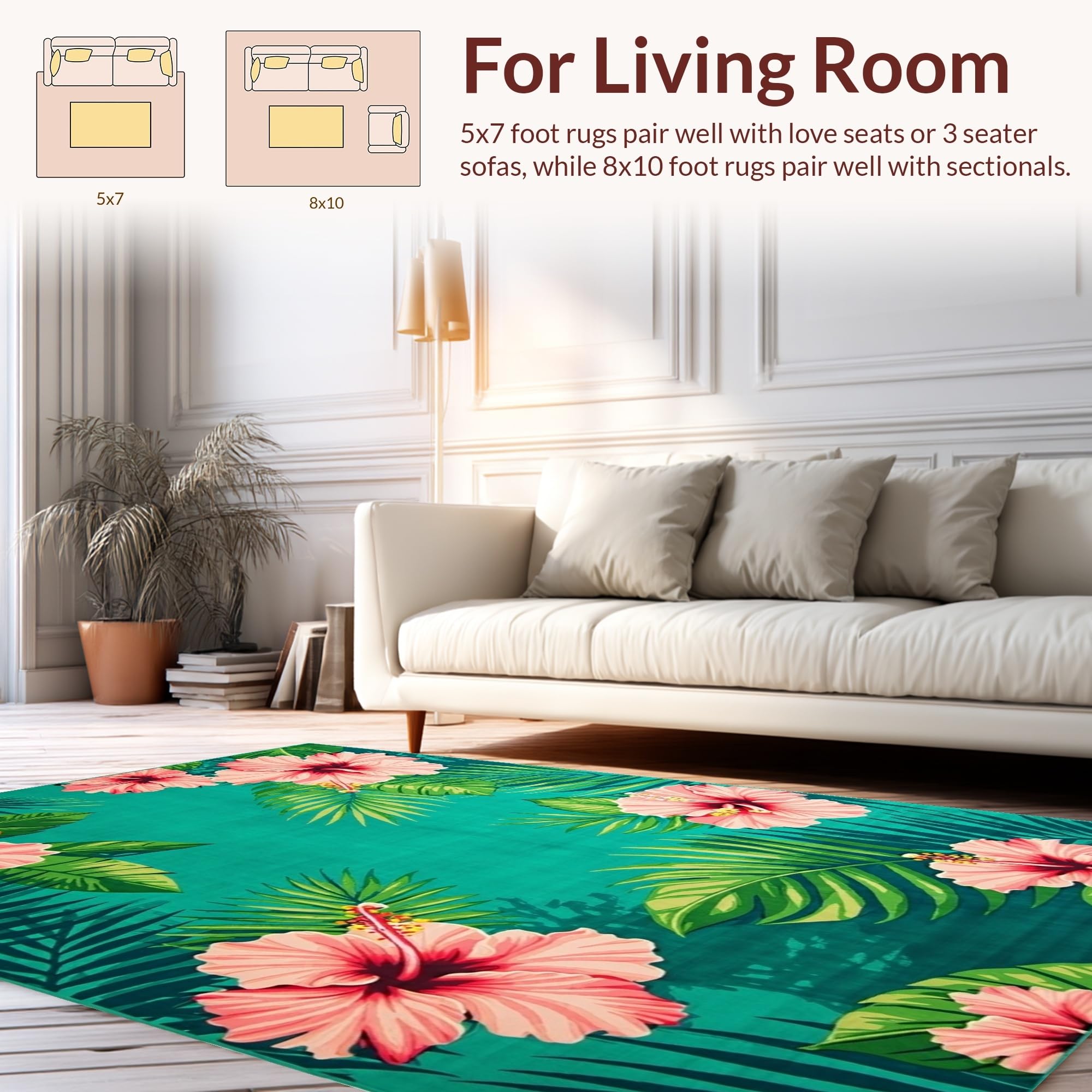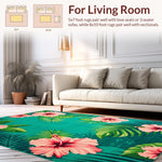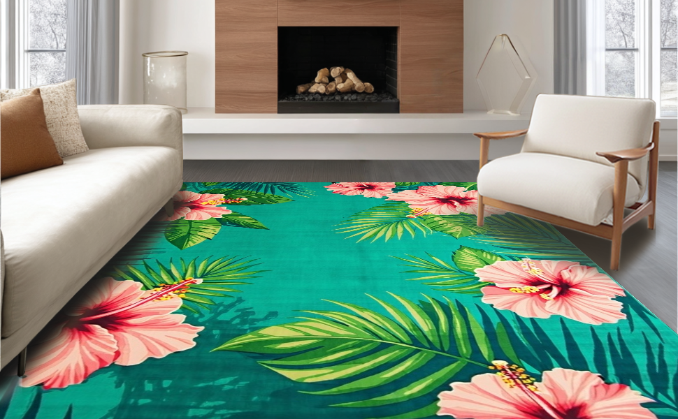 Ultra Soft Area Rug, Non Slip, Stain Resistant, Washable Area Rugs for Living Room, Bedroom, Lively Hibiscus and Fern Fusion(Green) Overview: