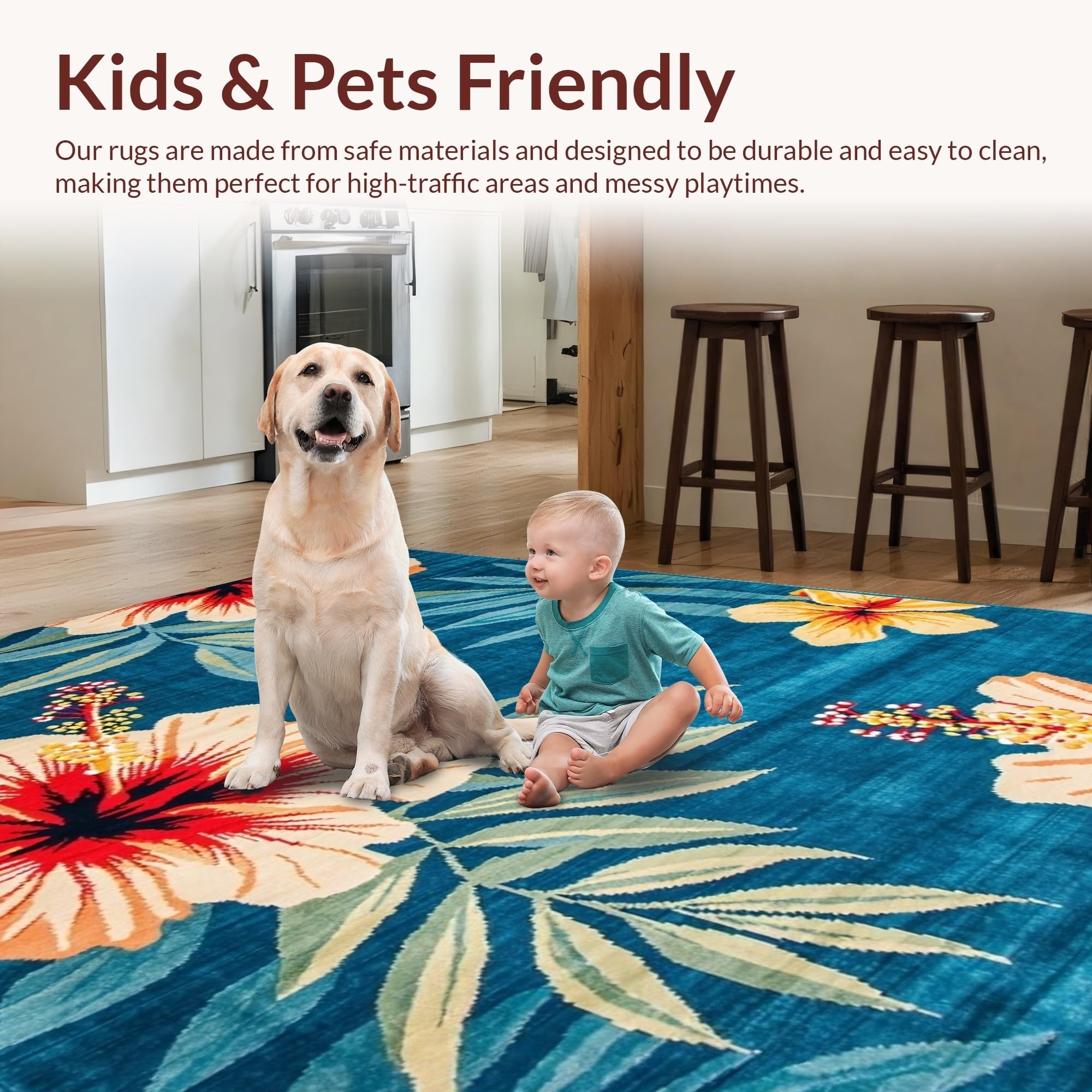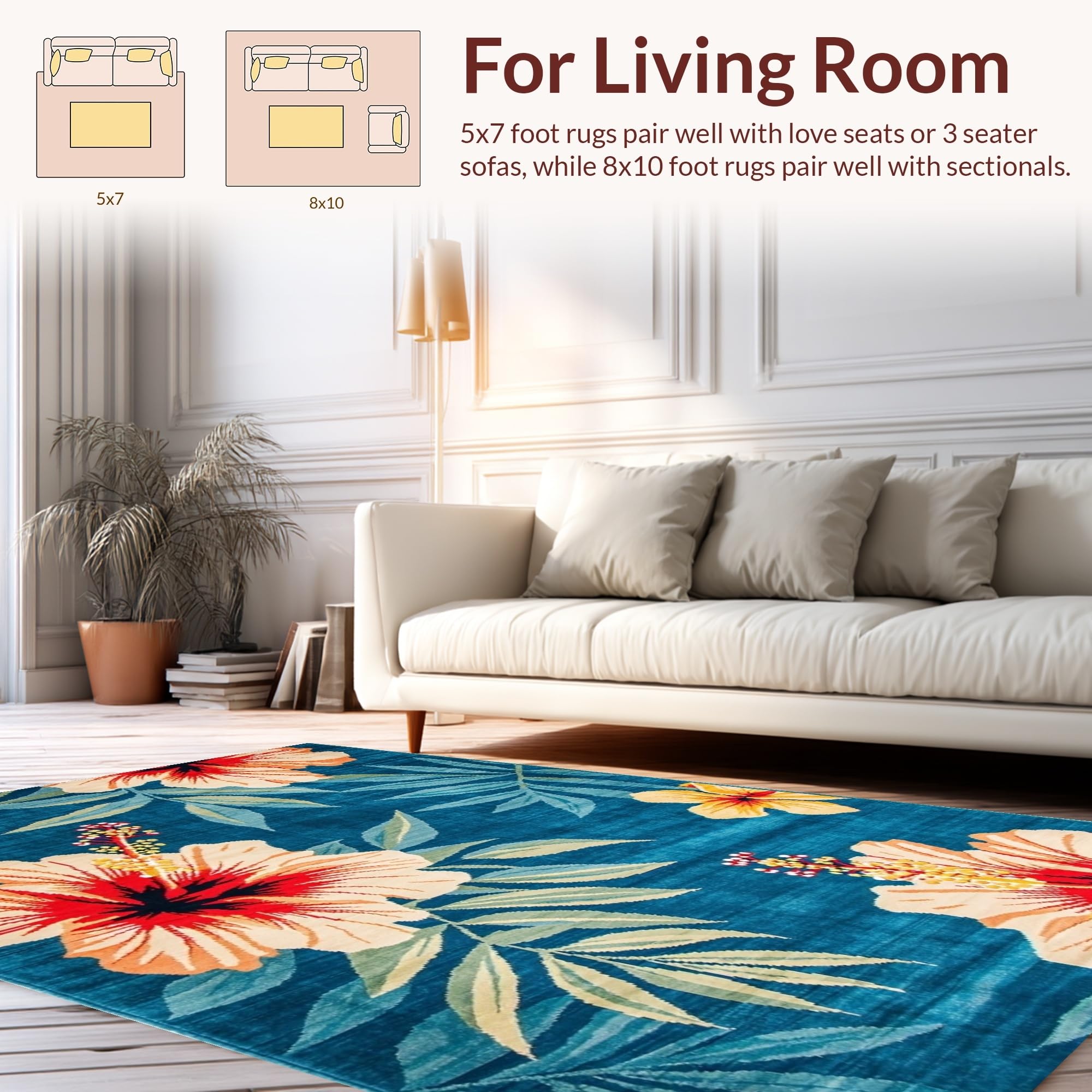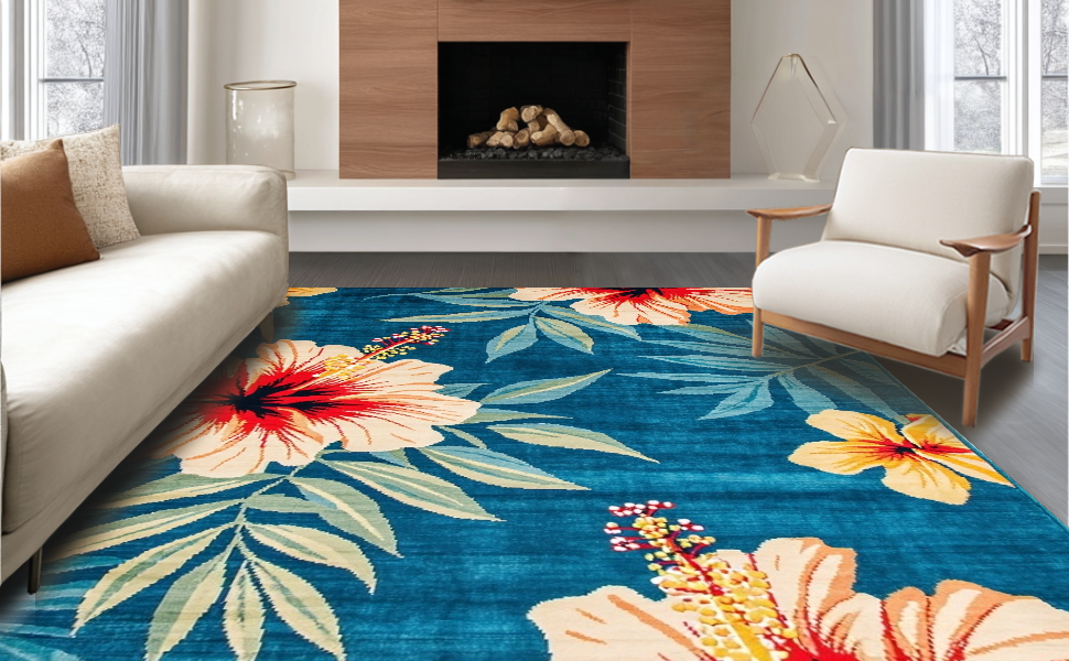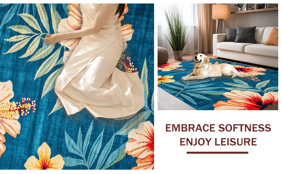 Ultra Soft Area Rug, Non Slip, Stain Resistant, Washable Area Rugs for Living Room, Bedroom, Lively High-Low Pile Design(Blue) Overview: